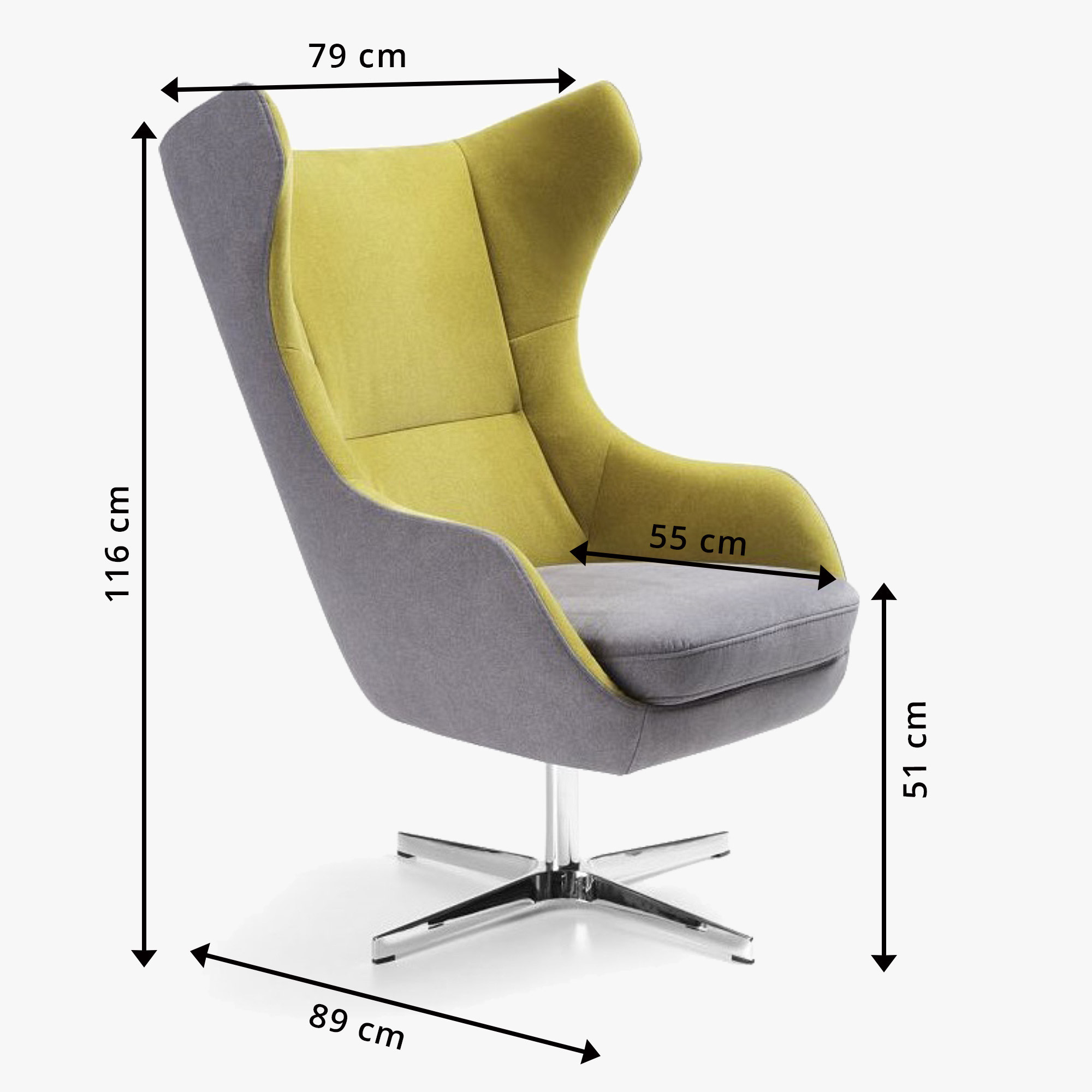 Otočné kreslo ZING predstavuje elegantné spojenie moderného dizajnu, pohodlia a praktického využitia v každodennom interiéri. Vďaka svojmu výrazne tvarovanému operadlu s bočnými „uškami“ pôsobí veľmi útulne a zároveň poskytuje príjemnú oporu pri sedení. Kreslo je usadené na chromovanej otočnej podnoži N09, ktorá mu dodáva ľahký, moderný vzhľad a zároveň zabezpečuje stabilitu. Konštrukcia sedáka je tvorené preglejkou a vysoko elastickou penou, operadlo je vyrobené z peny na ráme zo sklolaminátu, čo prispieva k vysokému komfortu i dlhej životnosti. Výška sedenia je 51 cm, celkové rozmery kresla sú približne 79 × 89 × 116 cm.