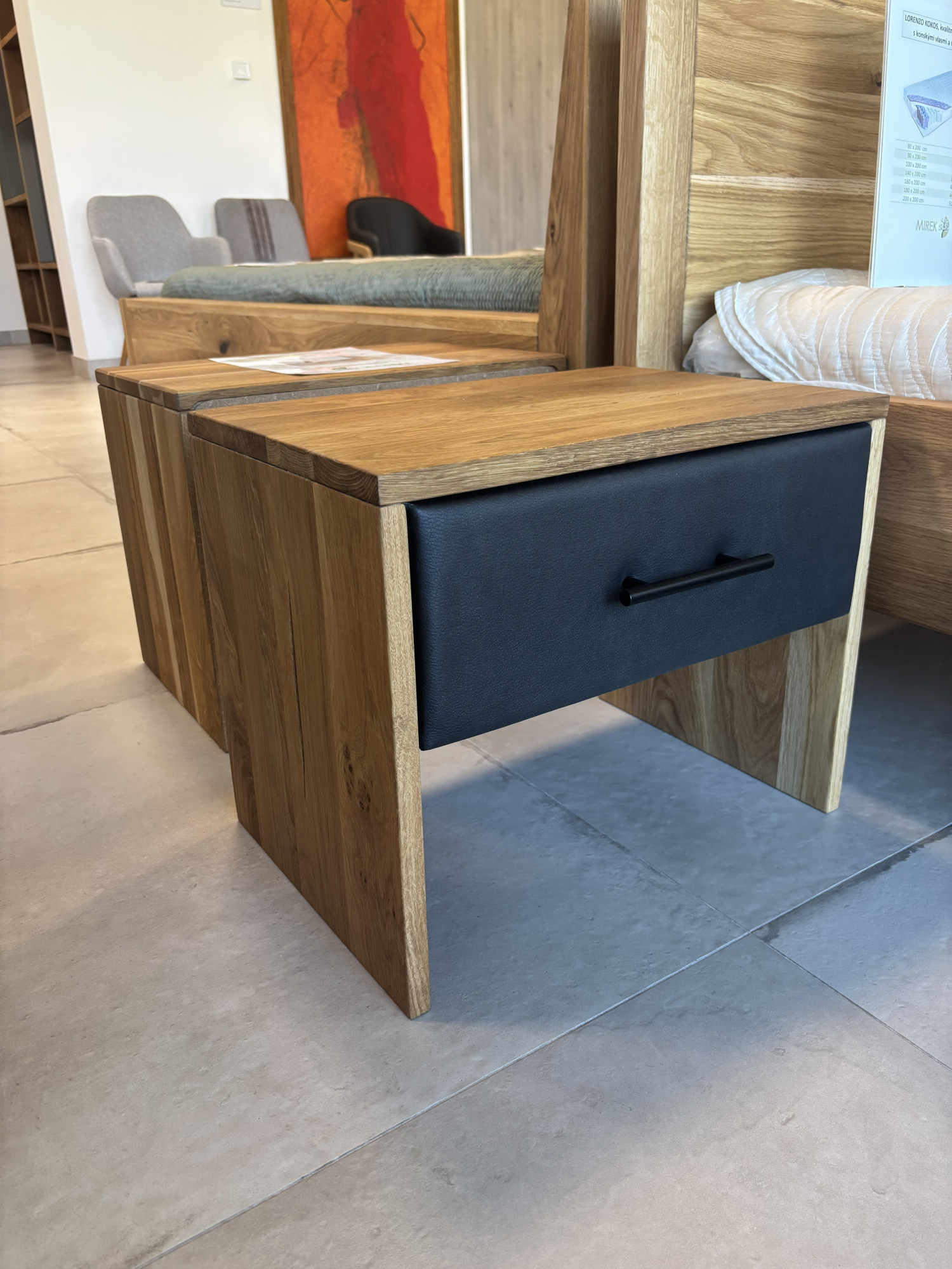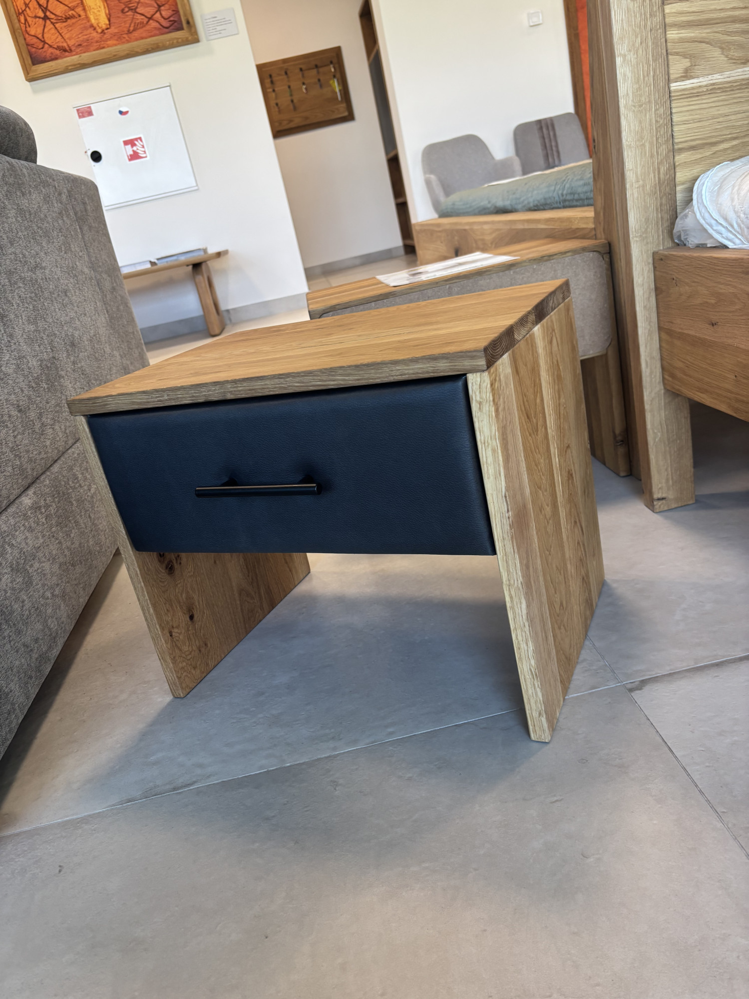 * Na obrázku outlet dubový nočný stolík z masívu v odtieni prírodného oleja