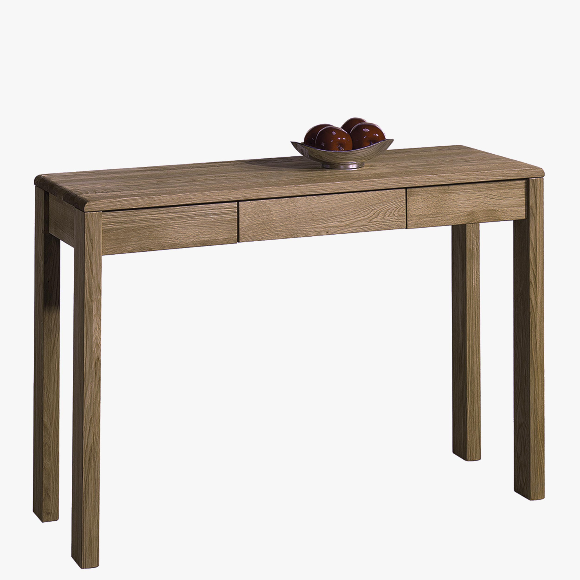 Luxusný PC stolík vyrobený z masívu divokého duba bude šikovným pomocníkom s nádherným dizajnom a prvotriednym spracovaním. Elegantný pracovný stolík má ideálne rozmery pre umiestnenie notebooku alebopočítača. Pracovná plocha o rozmere 119 x 45 cm nezaberie v interiéri príliš veľa miesta, nebude vám nikde prekážať, ale zároveň poskytne dostatok priestoru pre vašu prácu na počítači. Svoje využitie určite nájde tiež ako odkladací stolík v predsieni alebo ako toaletný stolík v spálni. Stačí ho doplniť o zrkadlo alebo menšie zrkadielko a vaša žena bude nadšená!