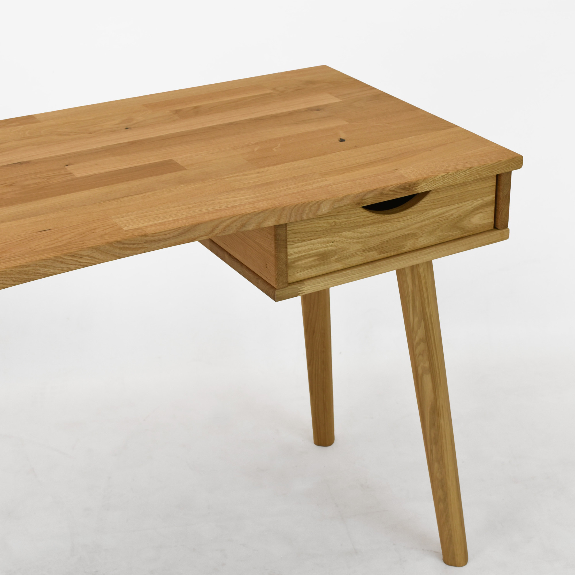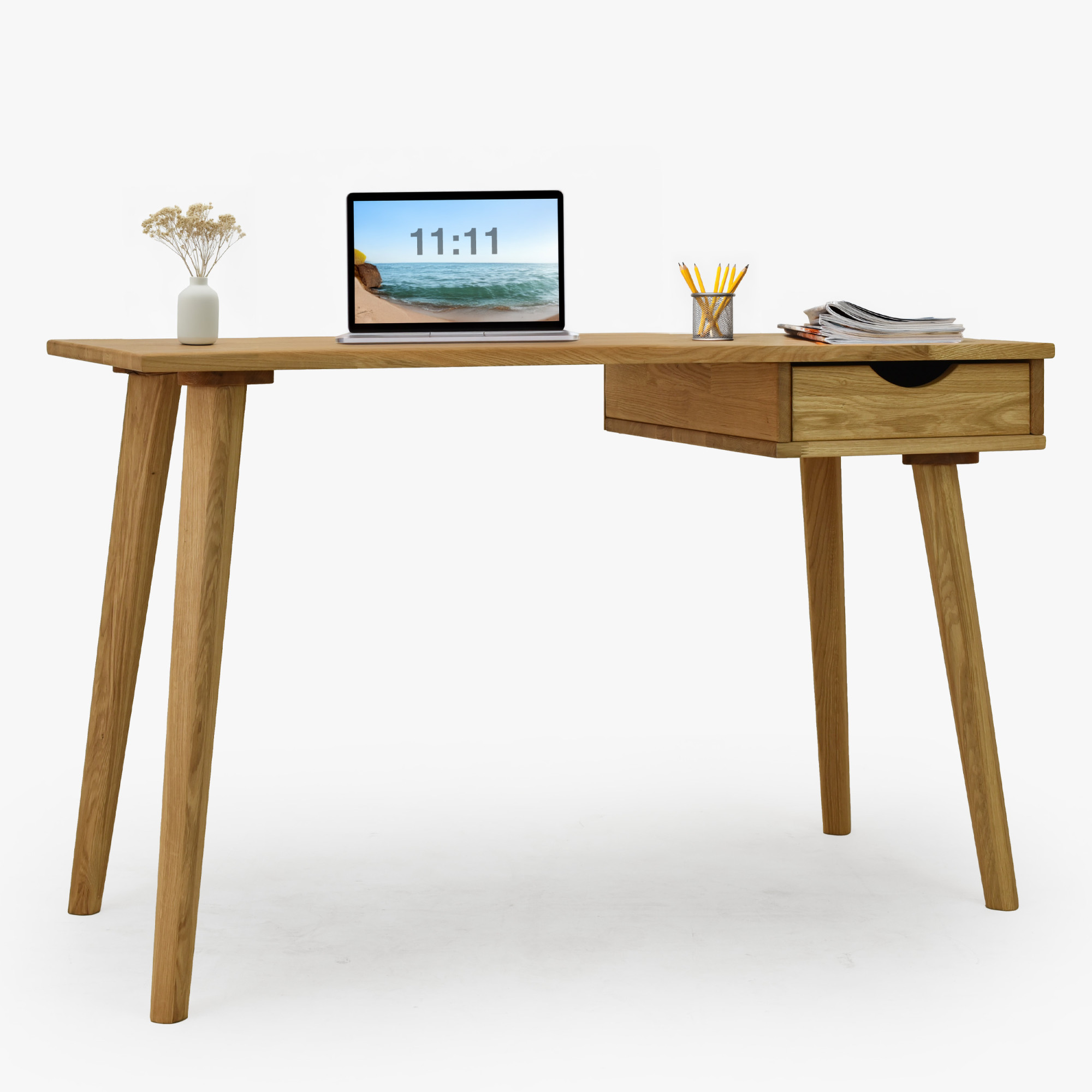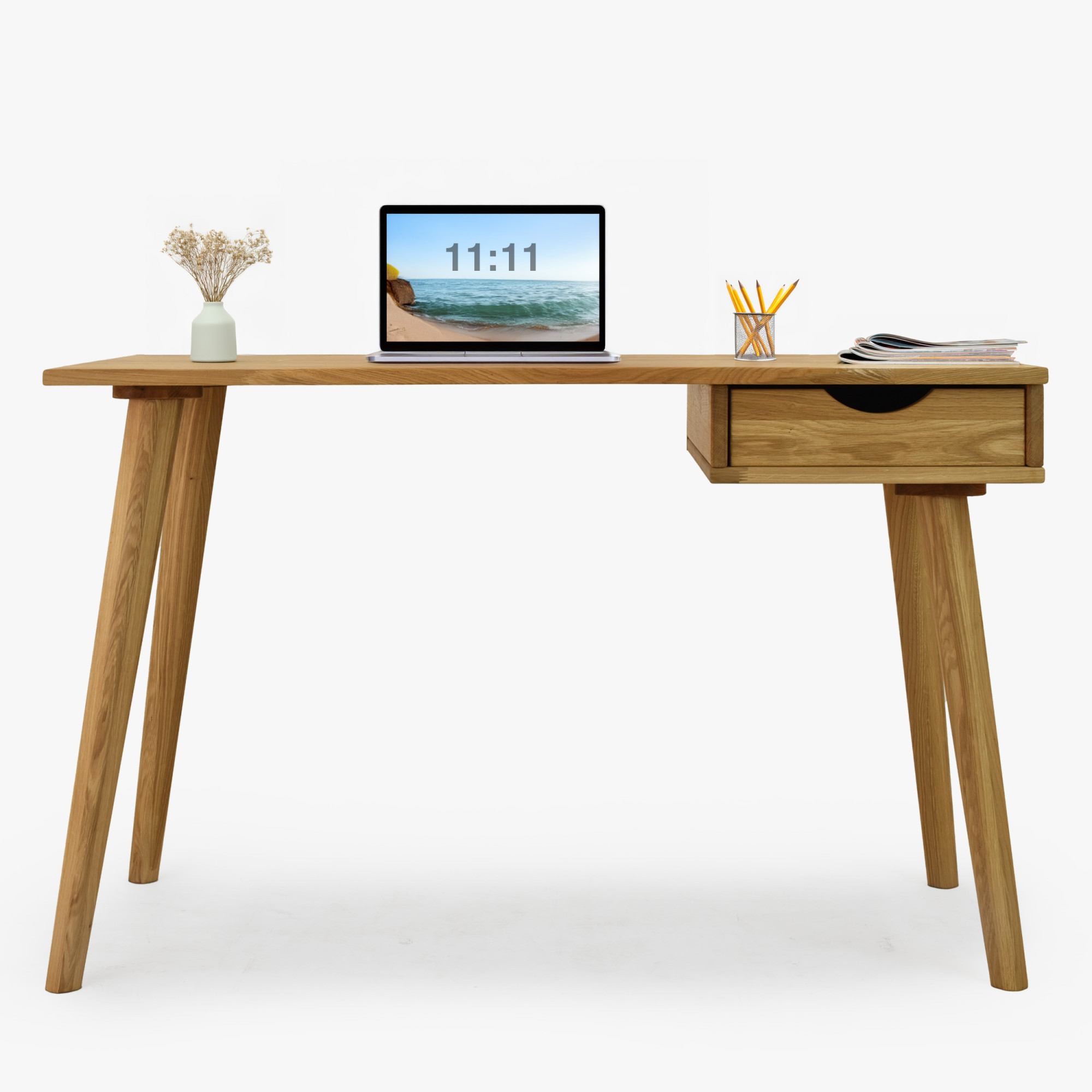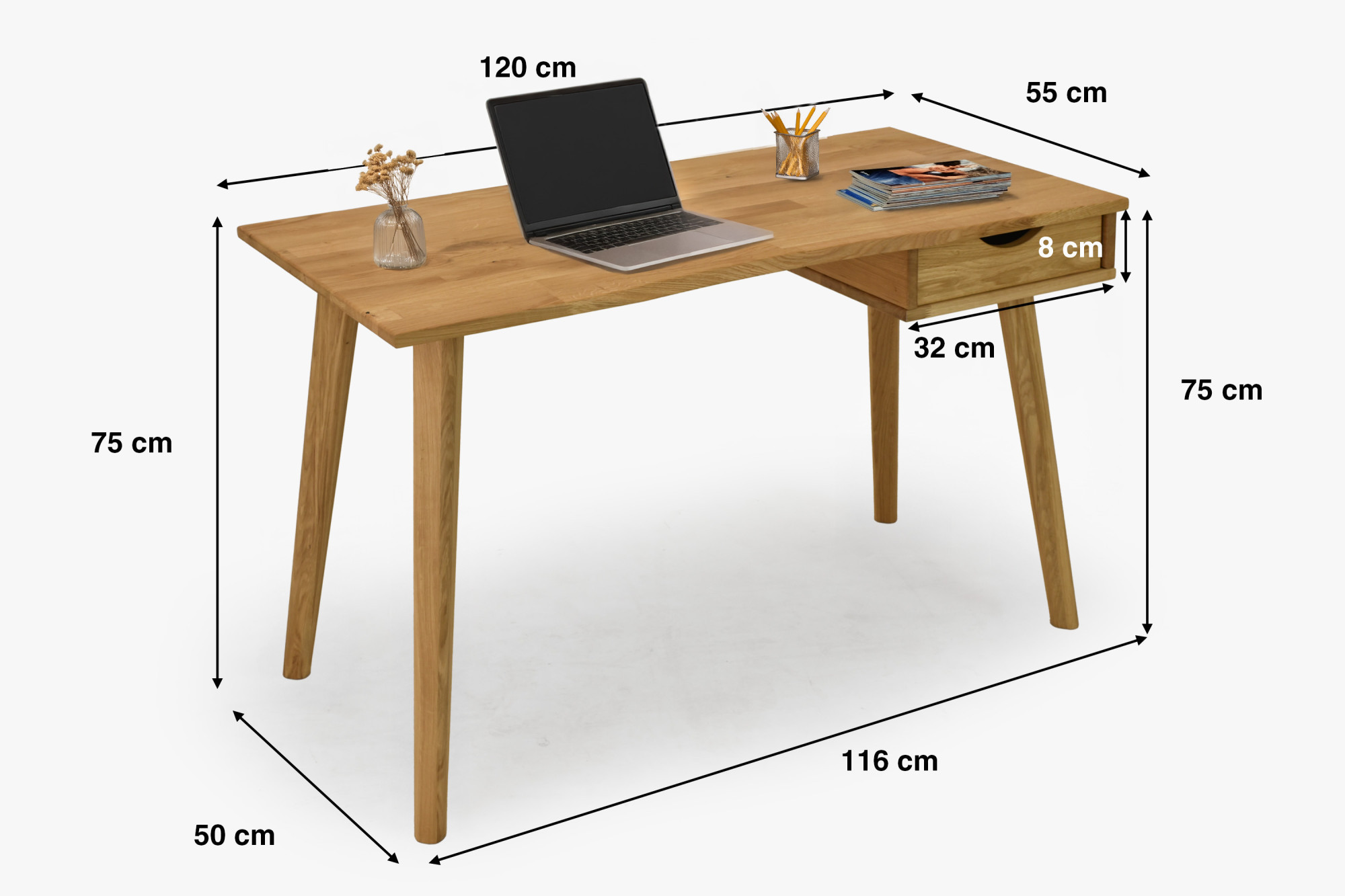 Elegantný dubový pracovný stôl Juraj predstavuje ideálnu voľbu pre všetkých, ktorí hľadajú spojenie funkčnosti, moderného dizajnu a kvality prírodného dreva. Tento stôl je vyrobený z masívneho dubového dreva v prírodnom odtieni dub natural, ktoré je povrchovo ošetrené kvalitným olejom, ktorý zabezpečuje dlhú životnosť, odolnosť proti opotrebovaniu a ľahkú údržbu. Vďaka svojmu minimalistickému vzhľadu sa skvele hodí do moderných domácností, pracovných kútikov aj domácich kancelárií. Praktická zásuvka umiestnená na pravej strane poskytuje dostatok priestoru na ukladanie dokumentov, písacích potrieb alebo drobných doplnkov, ktoré chcete mať vždy po ruke.