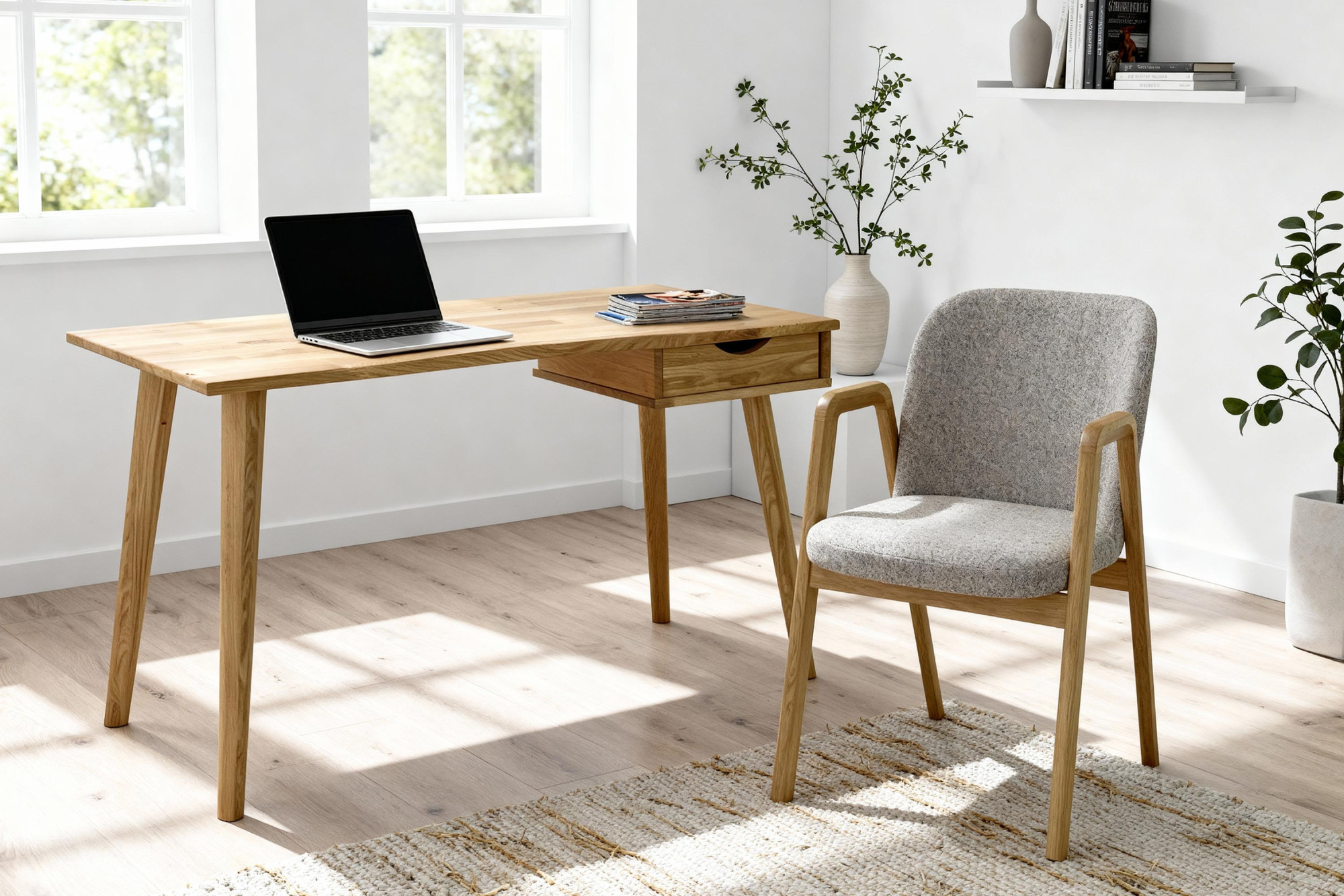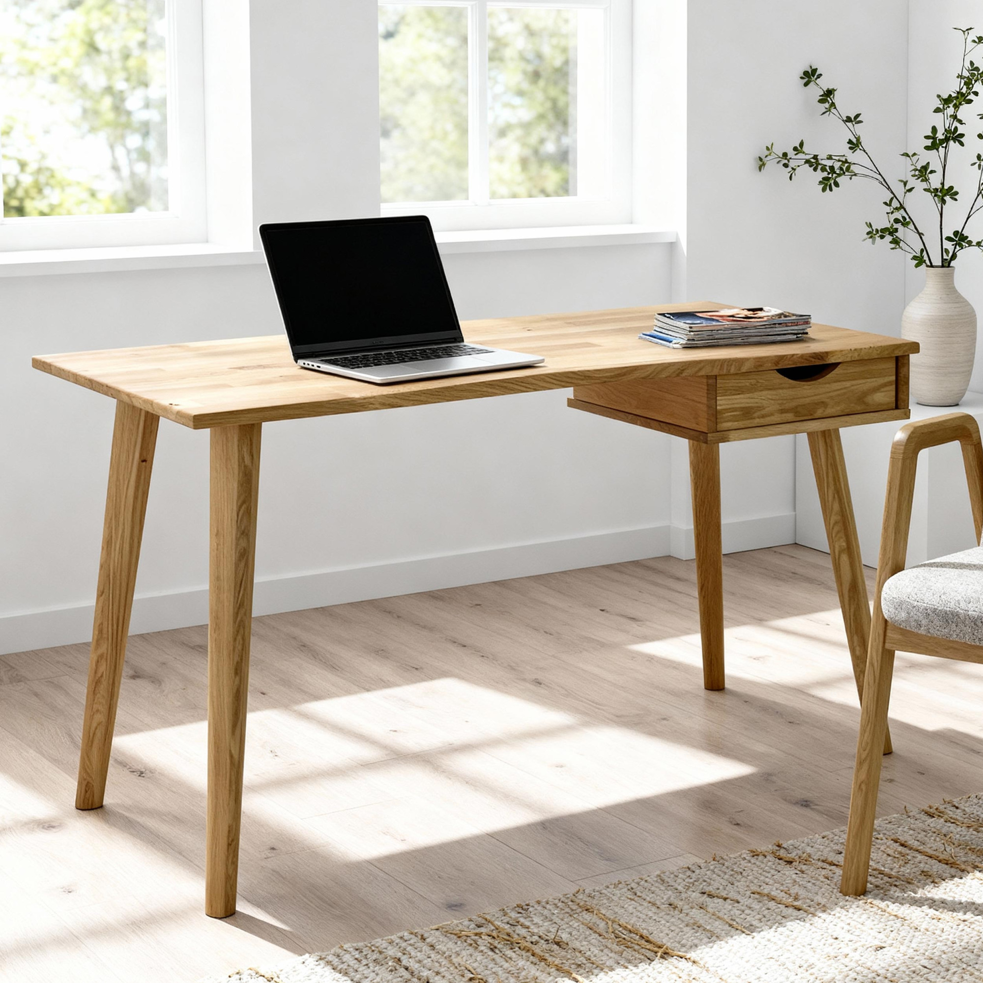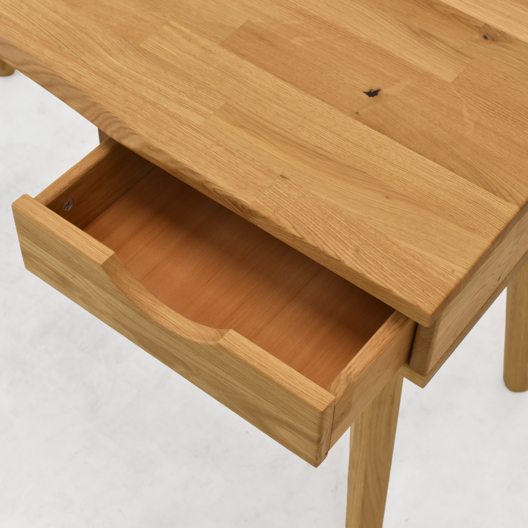 Elegantný dubový pracovný stôl Juraj predstavuje ideálnu voľbu pre všetkých, ktorí hľadajú spojenie funkčnosti, moderného dizajnu a kvality prírodného dreva. Tento stôl je vyrobený z masívneho dubového dreva v prírodnom odtieni dub natural, ktoré je povrchovo ošetrené kvalitným olejom, ktorý zabezpečuje dlhú životnosť, odolnosť proti opotrebovaniu a ľahkú údržbu. Vďaka svojmu minimalistickému vzhľadu sa skvele hodí do moderných domácností, pracovných kútikov aj domácich kancelárií. Praktická zásuvka umiestnená na pravej strane poskytuje dostatok priestoru na ukladanie dokumentov, písacích potrieb alebo drobných doplnkov, ktoré chcete mať vždy po ruke.