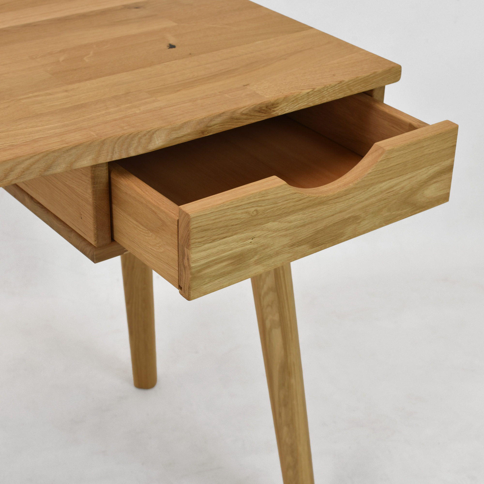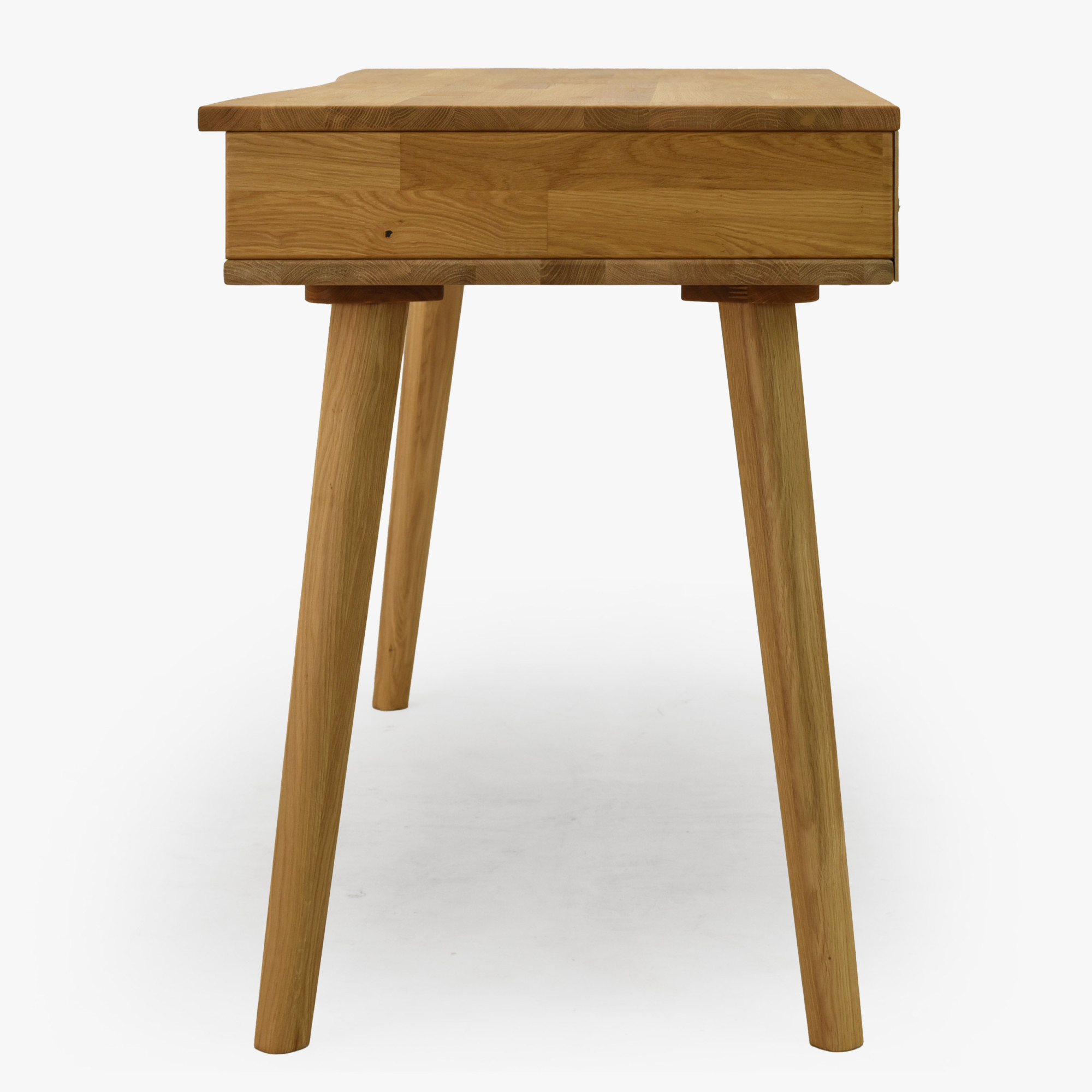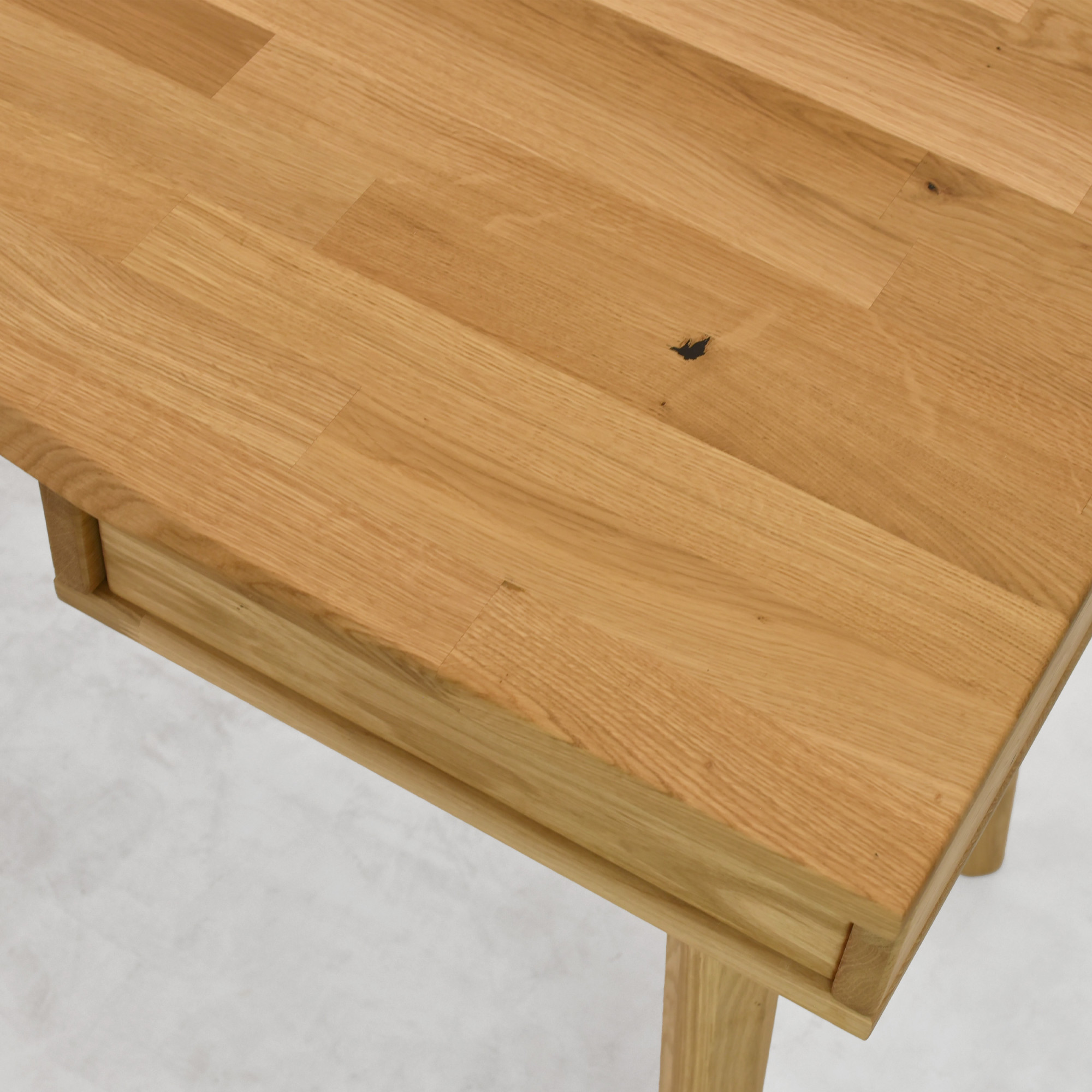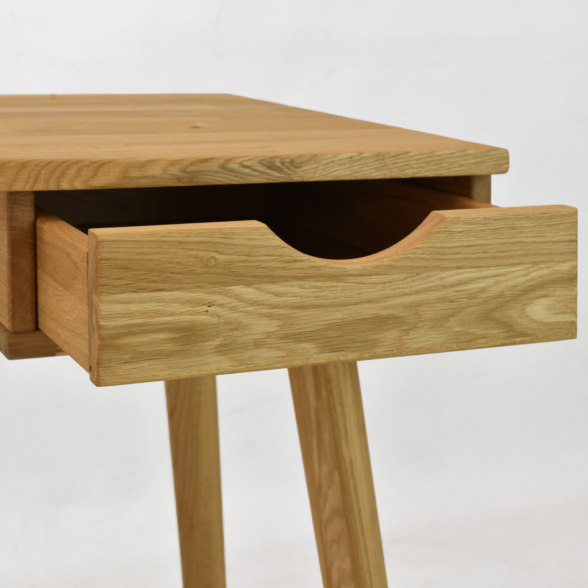 Elegantný dubový pracovný stôl Juraj predstavuje ideálnu voľbu pre všetkých, ktorí hľadajú spojenie funkčnosti, moderného dizajnu a kvality prírodného dreva. Tento stôl je vyrobený z masívneho dubového dreva v prírodnom odtieni dub natural, ktoré je povrchovo ošetrené kvalitným olejom, ktorý zabezpečuje dlhú životnosť, odolnosť proti opotrebovaniu a ľahkú údržbu. Vďaka svojmu minimalistickému vzhľadu sa skvele hodí do moderných domácností, pracovných kútikov aj domácich kancelárií. Praktická zásuvka umiestnená na pravej strane poskytuje dostatok priestoru na ukladanie dokumentov, písacích potrieb alebo drobných doplnkov, ktoré chcete mať vždy po ruke.