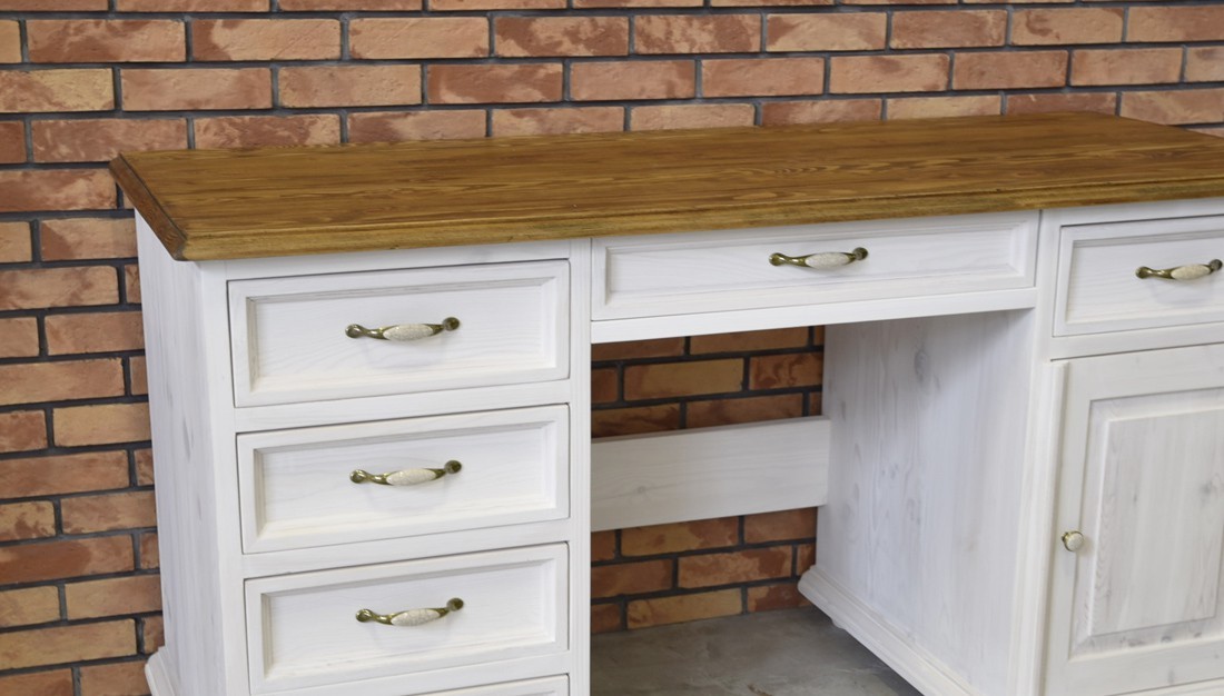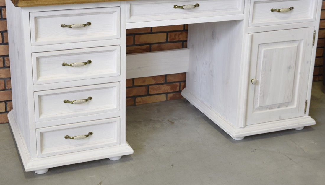 Masívne drevo borovice je dostatočne pružný a pevný materiál, ktorý spoznáte okamžite vďaka jeho jedinečnej kresbe. Písací stôl Provence je k dispozícii v dvoch farebných prevedeniach. Vyberte si buď variantu, kedy je drevo ošetrené bielou ekologickou farbou, alebo variantu patinovaného dreva, kedy sa na biely základ nanáša vosk. Výsledkom je nábytok so starým a ľahko opotrebovaným vzhľadom, ktorý evokuje pôsobenie zubu času. Táto varianta je o 10 % drahšia oproti bielemu prevedeniu.