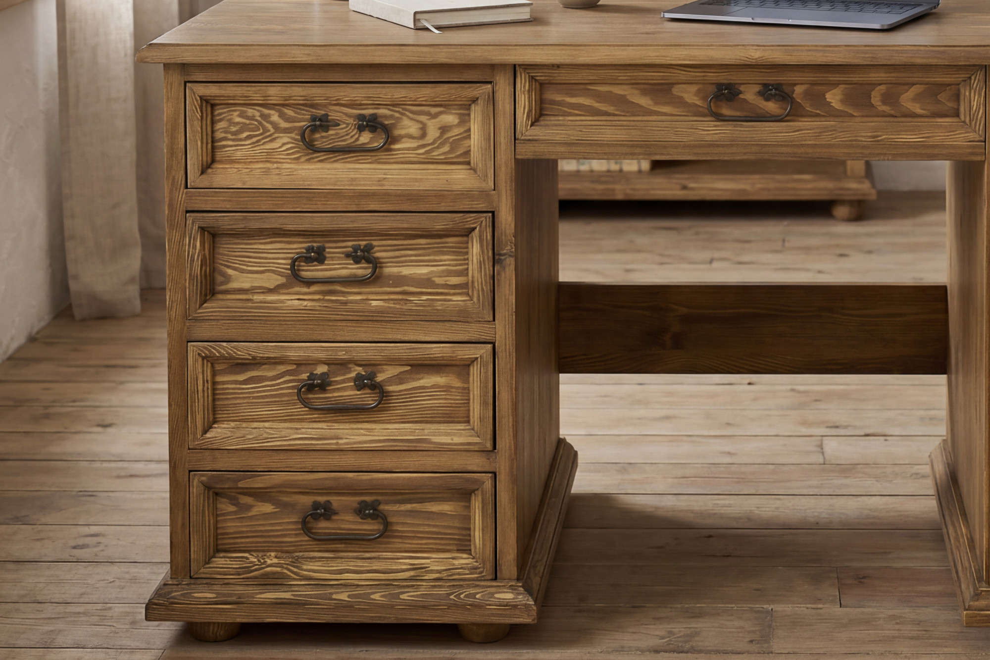 PC stolík vo francúzskom štýle – rustikálny písací stôl z masívnej borovice, séria Venkov