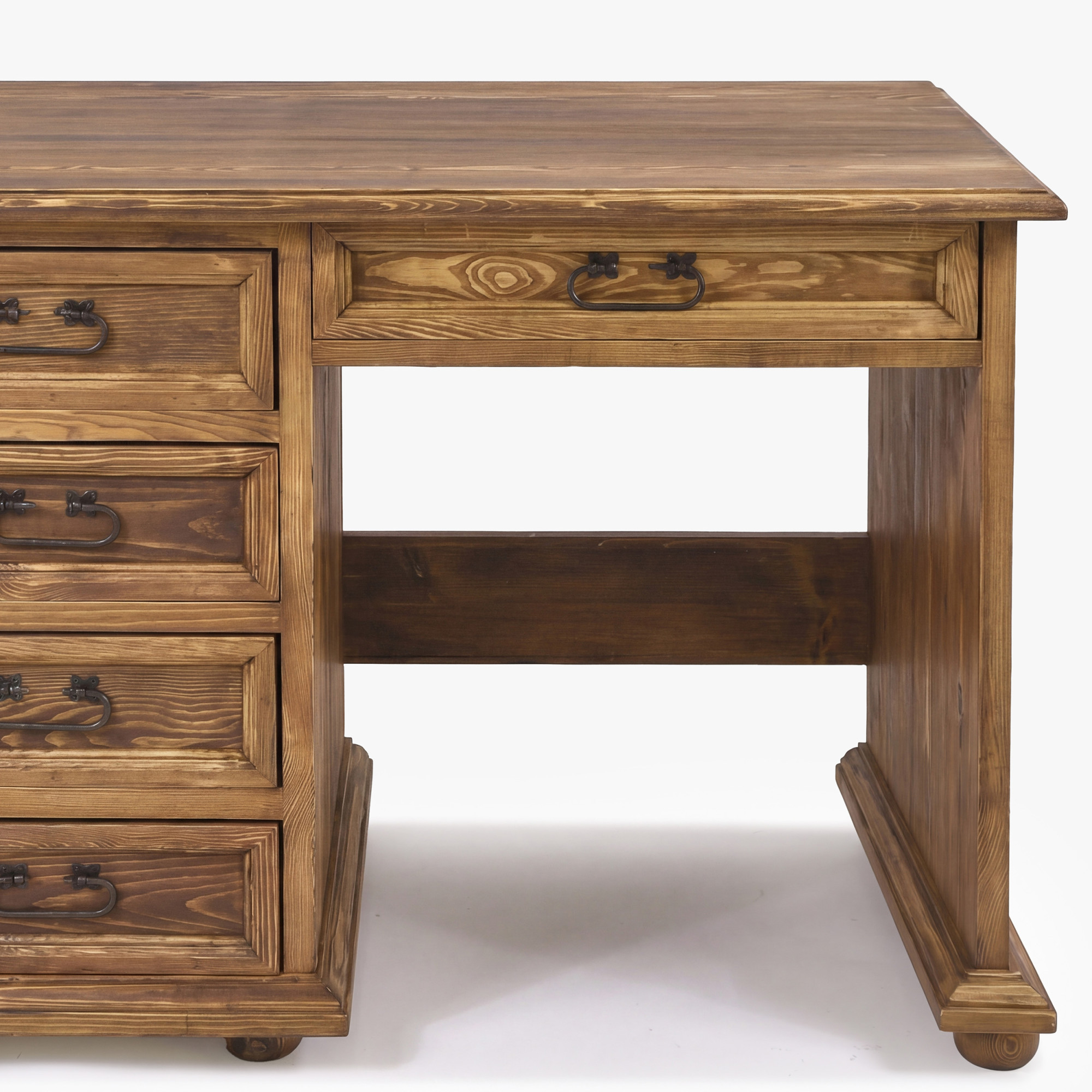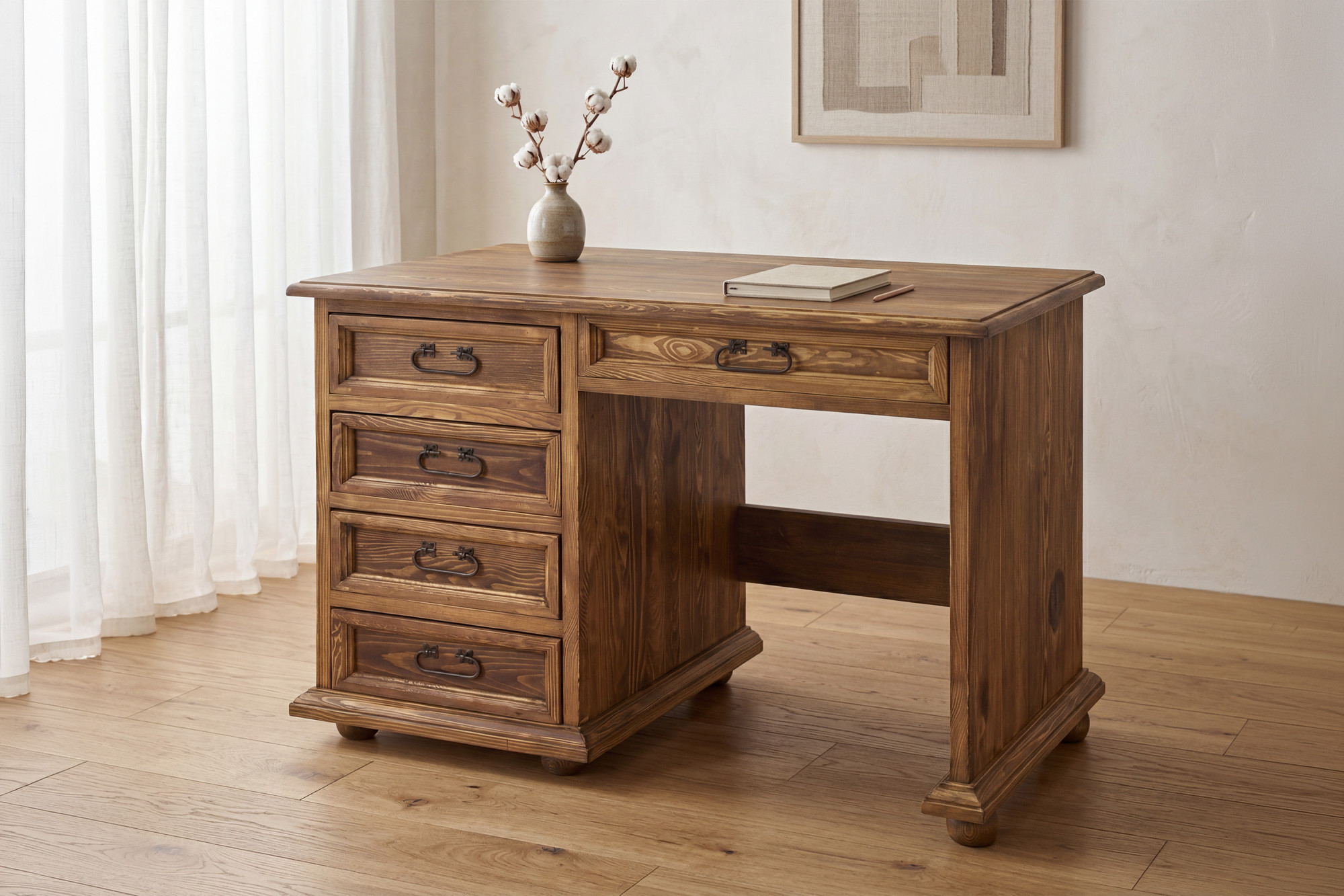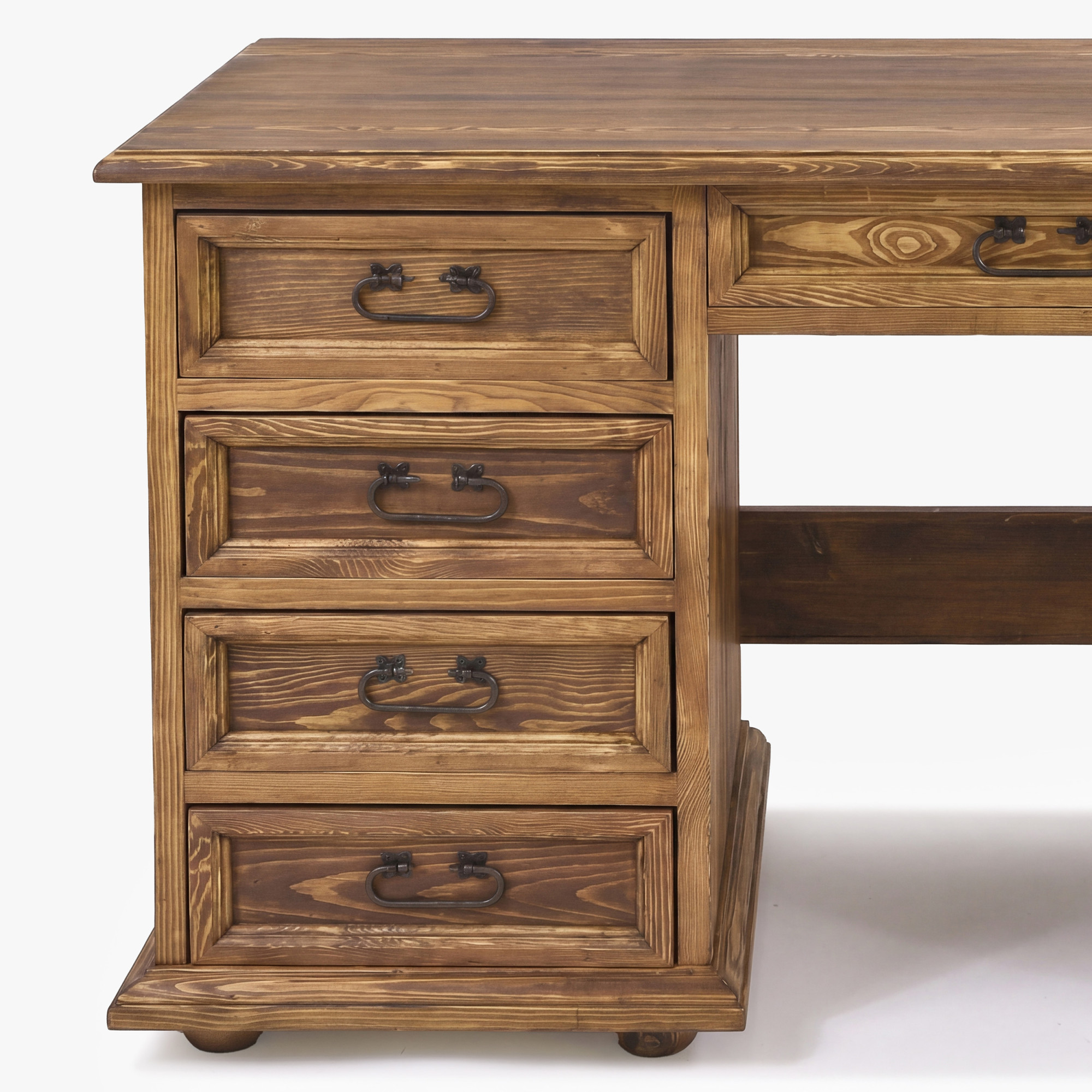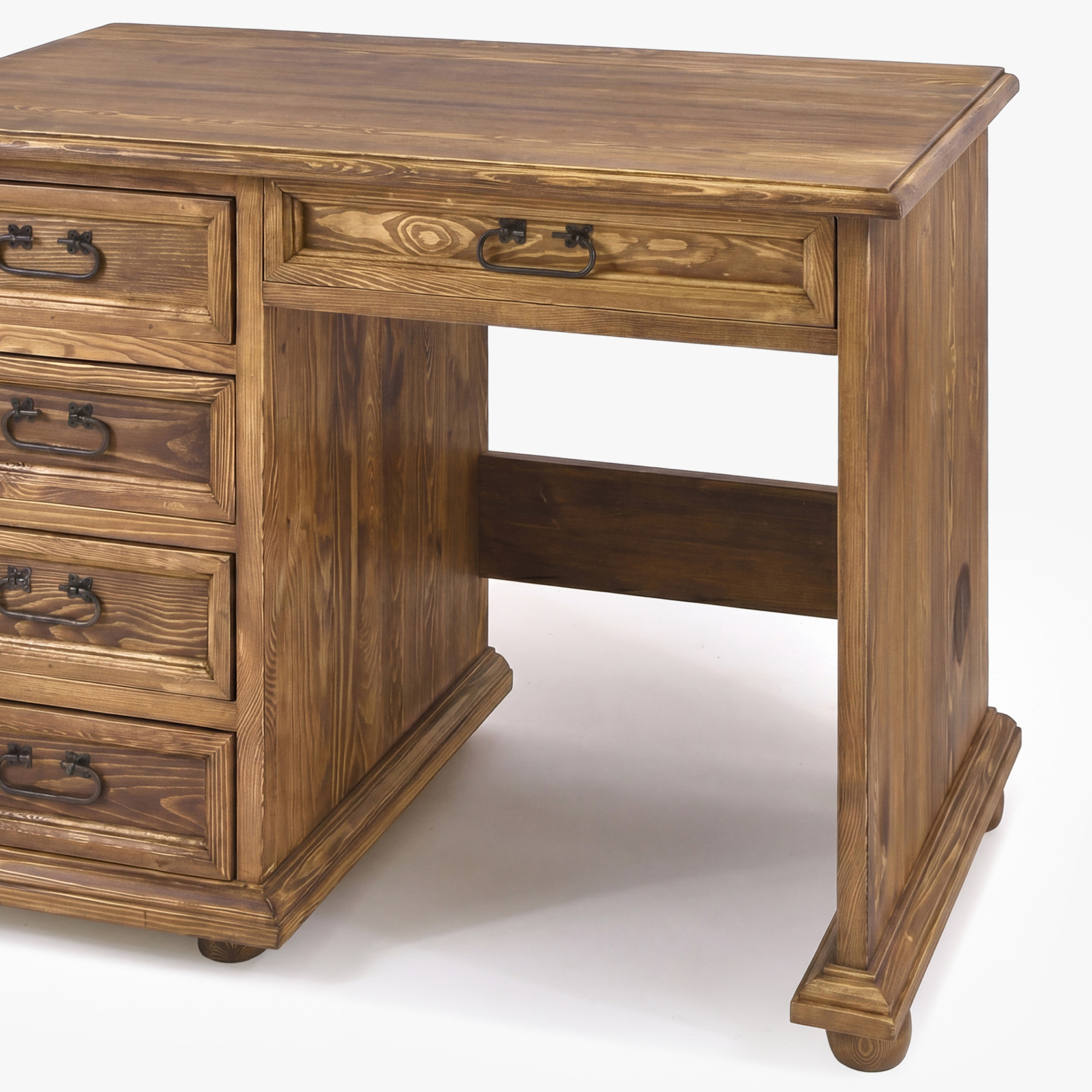 Tento pracovný stôl z kolekcie rustikálneho nábytku je súčasťou obľúbenej série Venkov, ktorá je charakteristická prepracovanými detailmi, tradičným vzhľadom a dôrazom na kvalitu spracovania. Nábytok z tejto kolekcie verne nadväzuje na štýl starých vidieckych interiérov a pripomína nábytok našich starých mám, avšak v kvalite zodpovedajúcej súčasným požiadavkám. Typickým znakom série je tmavo hnedé až medové voskované prevedenie, ktoré interiéru dodáva teplo a útulnú atmosféru.