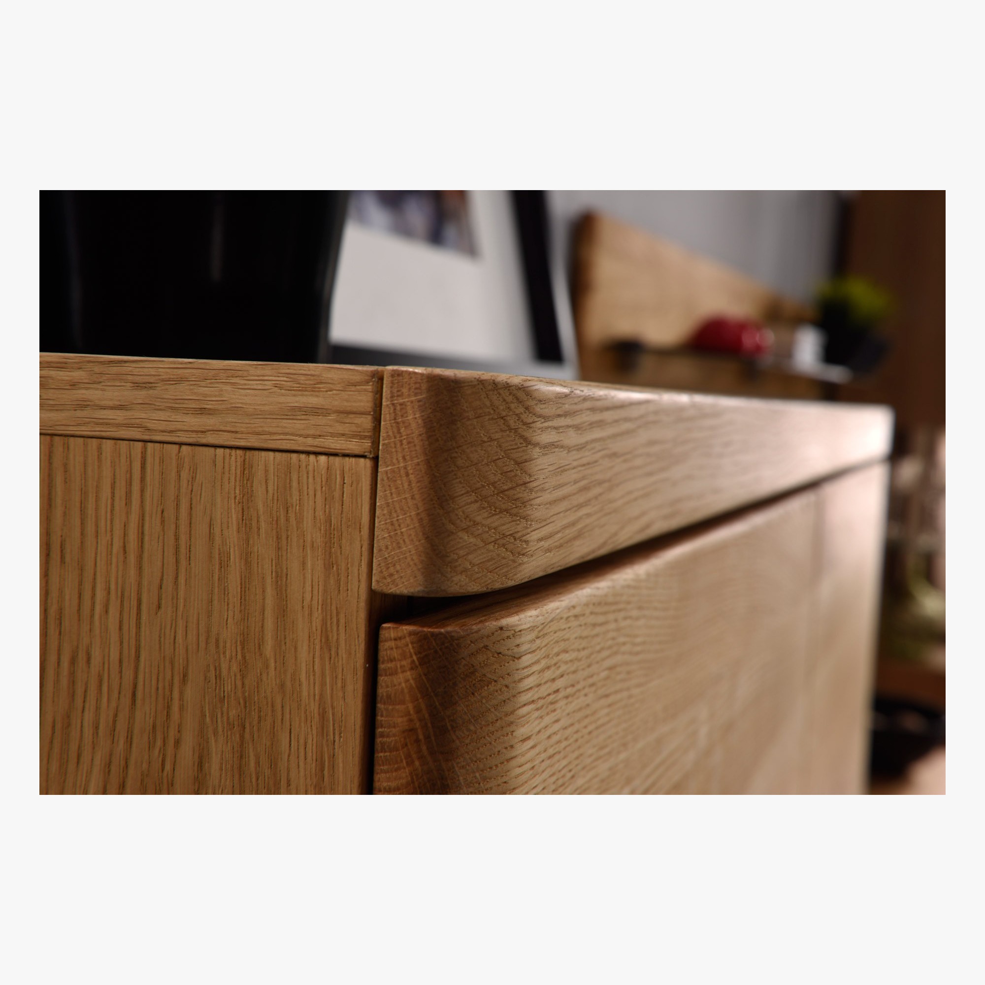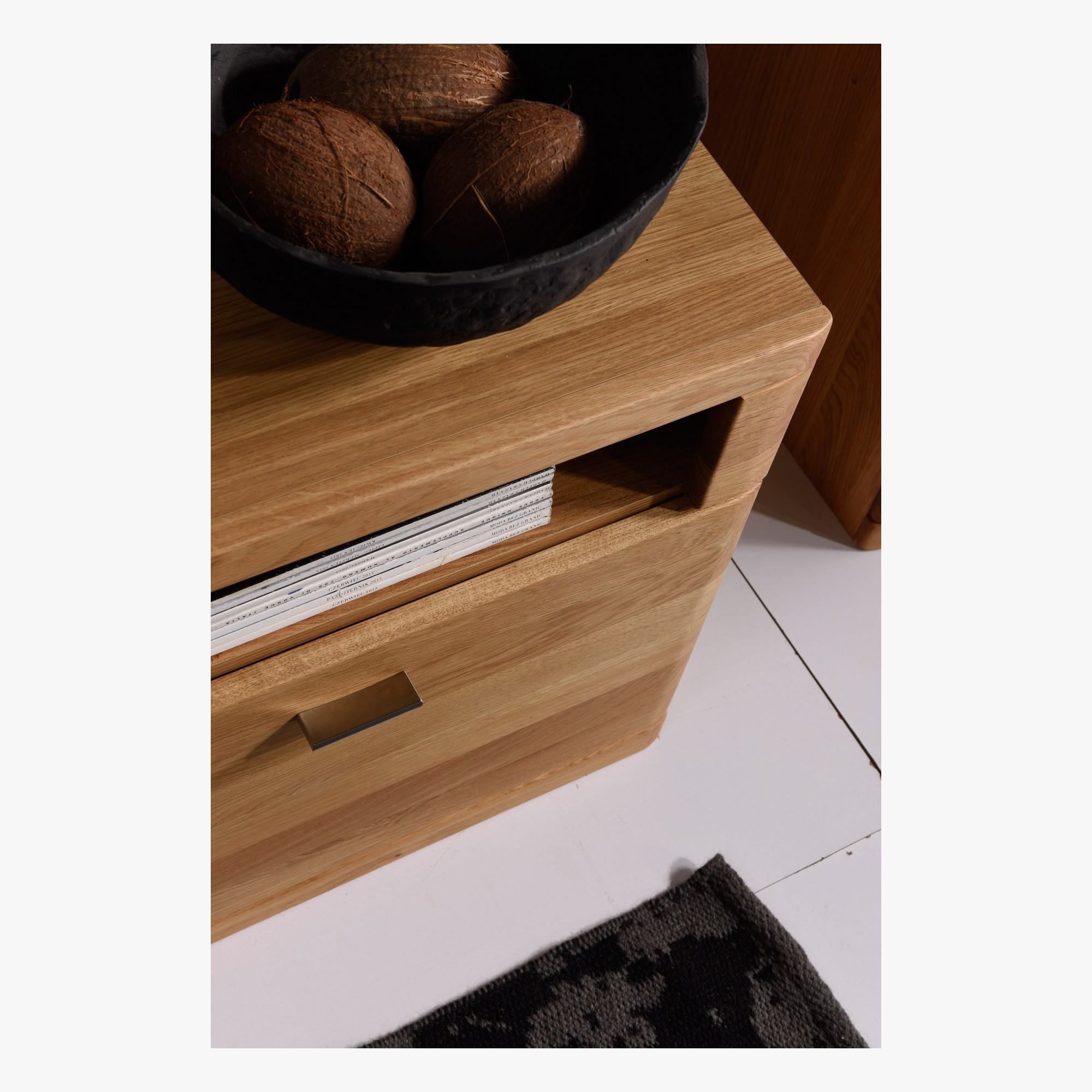 Nadčasový nábytok vyrobený v kombinácii z prírodného dubového dreva a prírodnej dubovej dyhy. Nábytok je určený do obývacej izby a jedálne. Nábytok má nadčasový dizajn, je ošetrený prírodným olejom. V kolekcii nábytku Boston nájdete TV komodu v dvoch dĺžkach, presklenú vitrínu, konferenčný stolík, rovnako aj dizajnovú komodu. Nábytok sa dodáva už zložený bez osvetlenia, za príplatok je možné osvetlenie dokúpiť. Predné čelá komody a dvierok sú z dubového dreva, vrchná doska - bočné výplne korpusu sú z prírodnej dubovej dyhy.