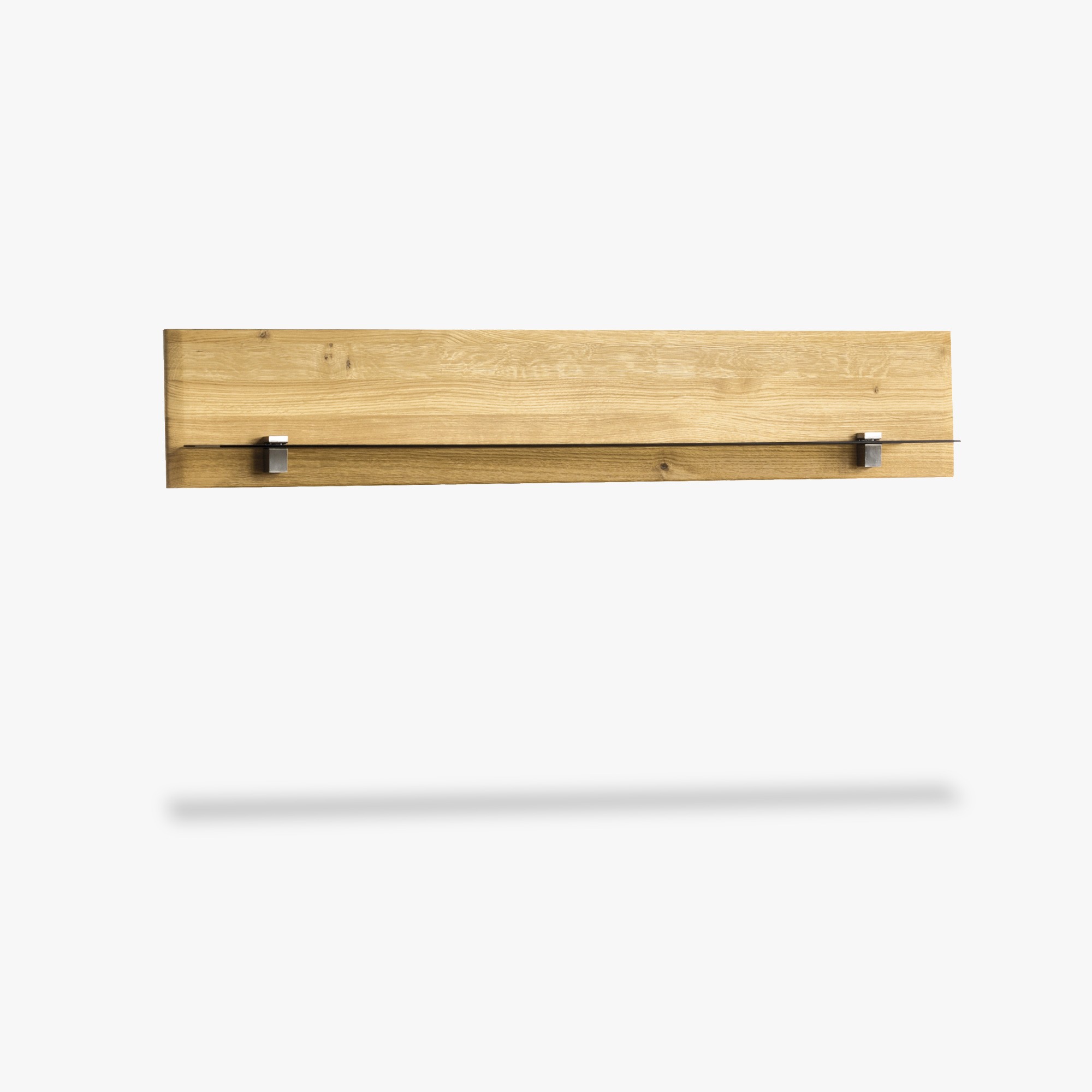 Dlhá dubová polica vyrobená z dubového dreva, spolu so sklenenou policou, dodáva sa vrátane montážneho materiálu na zavesenie na stenu. Polica je v prírodnej olejovej dubovej farbe, teda ju možno kombinovať s ktoroukoľvek kolekciou dubového nábytku.