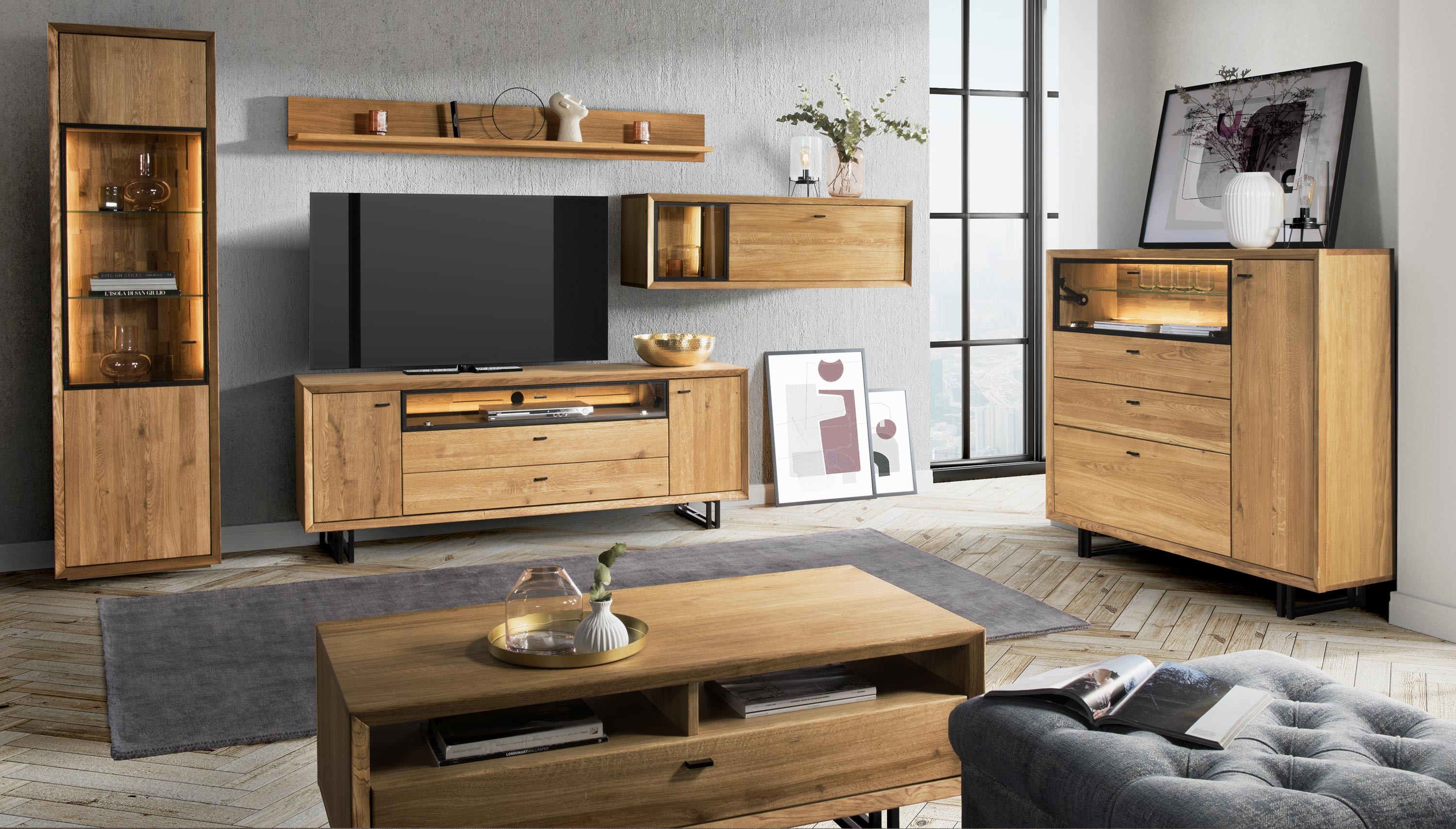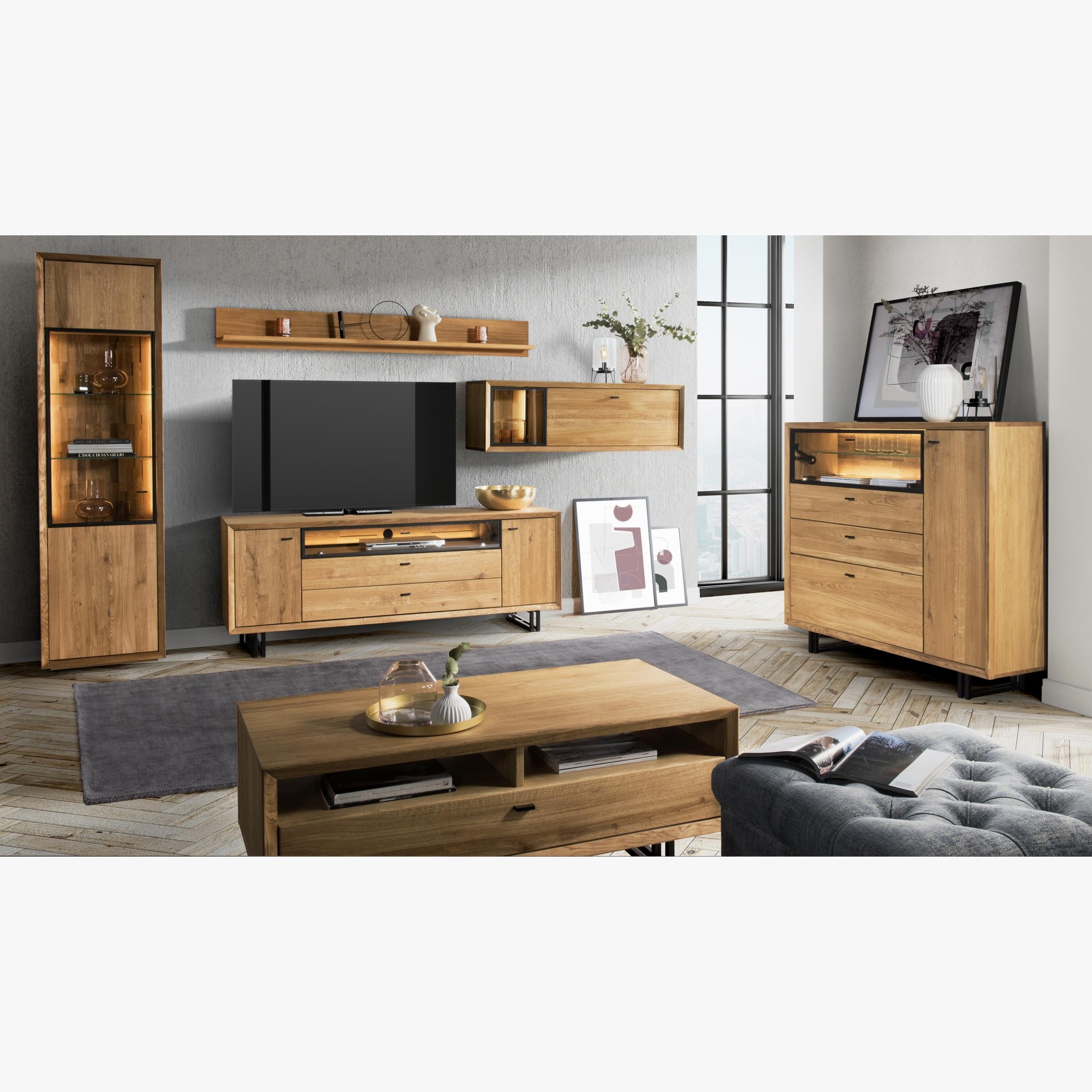 Sortiment nábytku Vilo je vyrobený v kombinácii dubového dreva a prírodnej dubovej dyhy. Pri zložení nábytku sú predné strany zásuviek/dvierok z dubového dreva, vrchná časť je z prírodnej dubovej dyhy a vnútorný korpus a boky nábytku sú vyrobené z prírodnej dubovej dyhy. Nábytok je ošetrený výnimočným nemeckým olejom Livos. Nábytok je vyrobený v spolupráci našej spoločnosti a poľskej firmy, kde konečným produktom je každý kus nábytku skutočný originál najvyššej kvality. Osvetlenie je už dodávané v cene nábytku, keď ho kusy obsahujú.