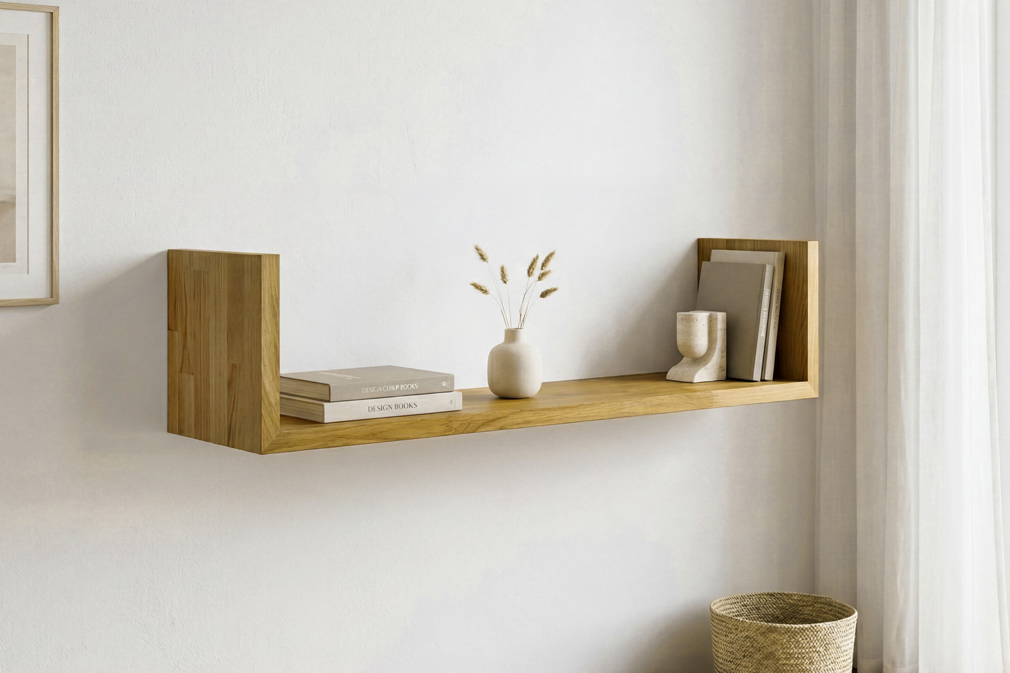 Hľadáte nástennú policu z masívneho dreva, ktorá obohatí váš interiér o prírodný charakter a nadčasovú eleganciu? Dubová polica Hugo s dĺžkou 80 cm je vyrobená z celomasívneho dubového dreva s charakteristickým parketovým vzorom finger joint, ktorý zvýrazňuje prirodzenú kresbu a teplé tóny dubu. Kompaktná hĺbka 20 cm a výška bočnej steny 22 cm z nej robia ideálne riešenie do obývacej izby, spálne, pracovne aj predsiene – praktická aj tam, kde nie je prebytok priestoru. Hrúbka bočnej steny 2,3 cm svedčí o solídnom, robustnom prevedení, ktoré znáša každodennú záťaž po celé roky.