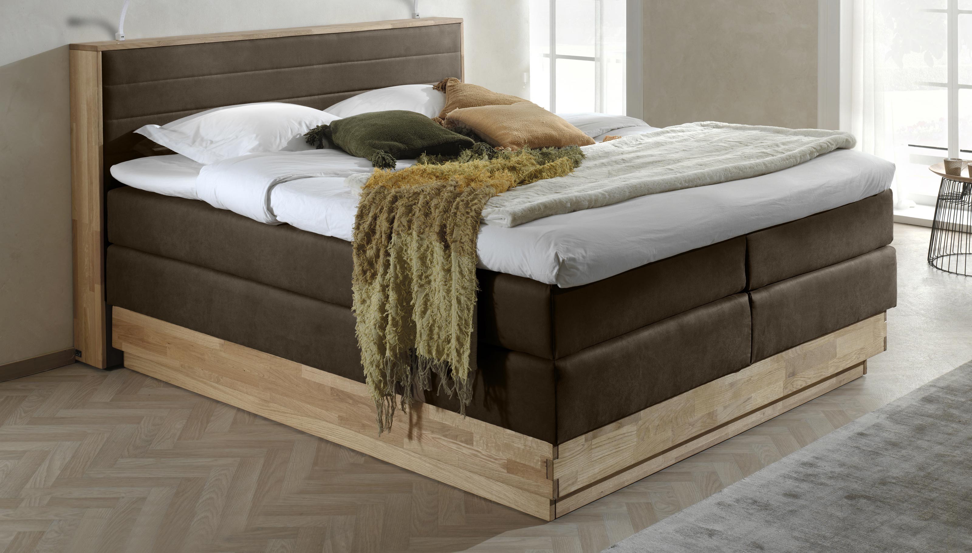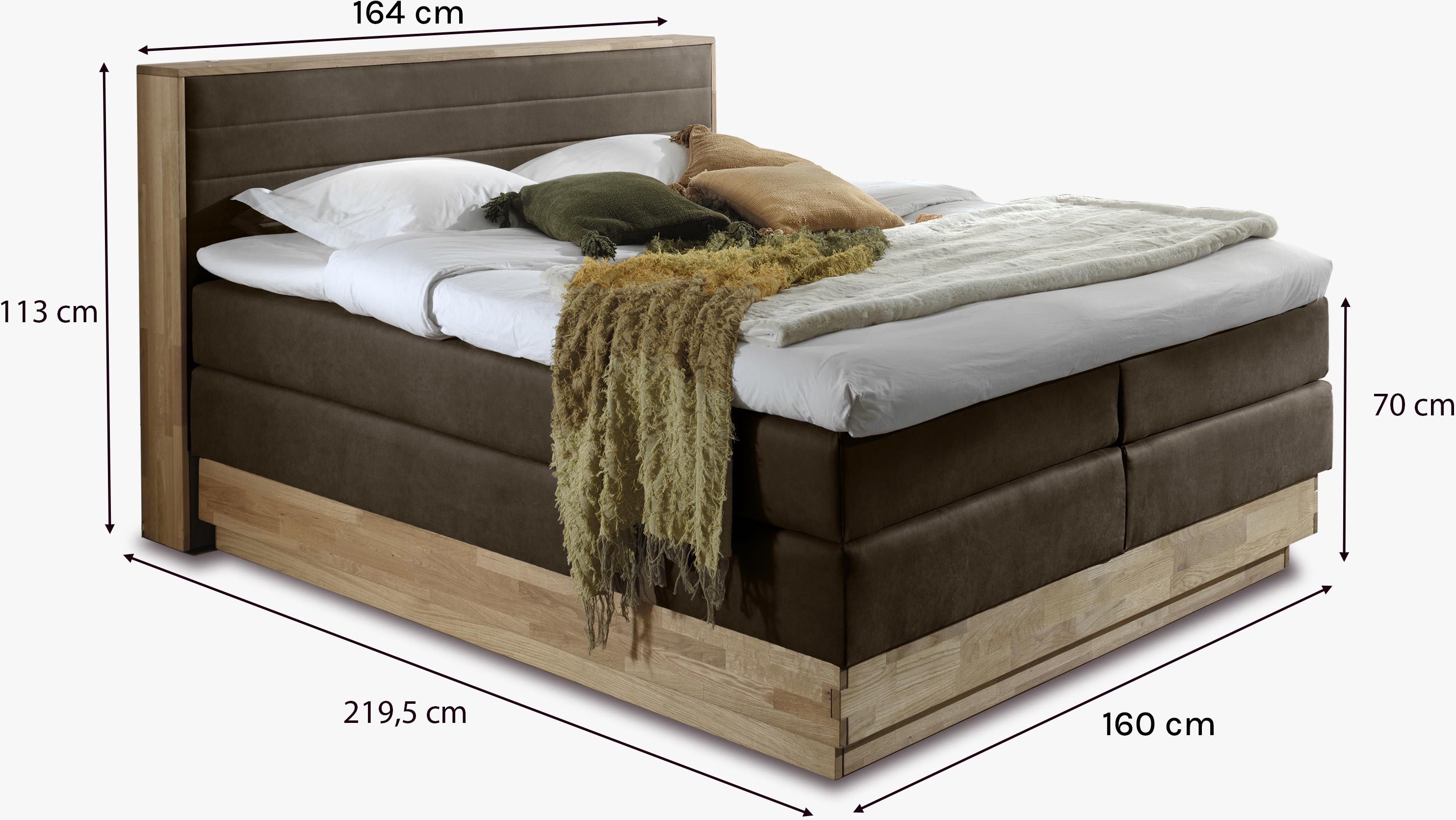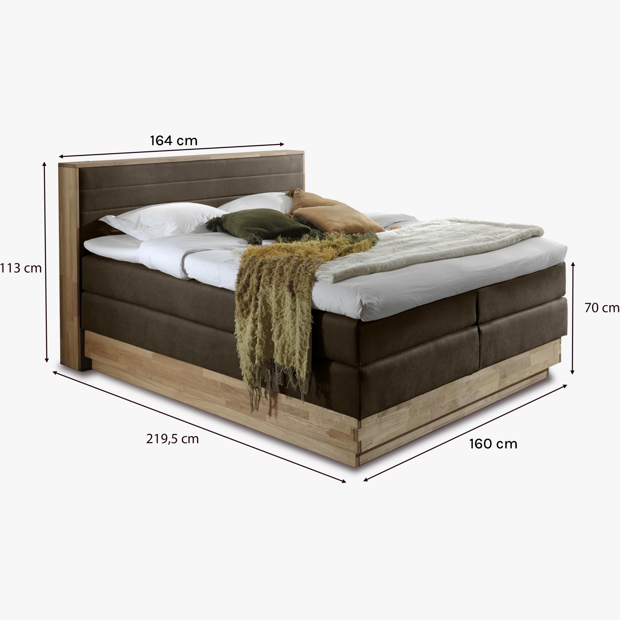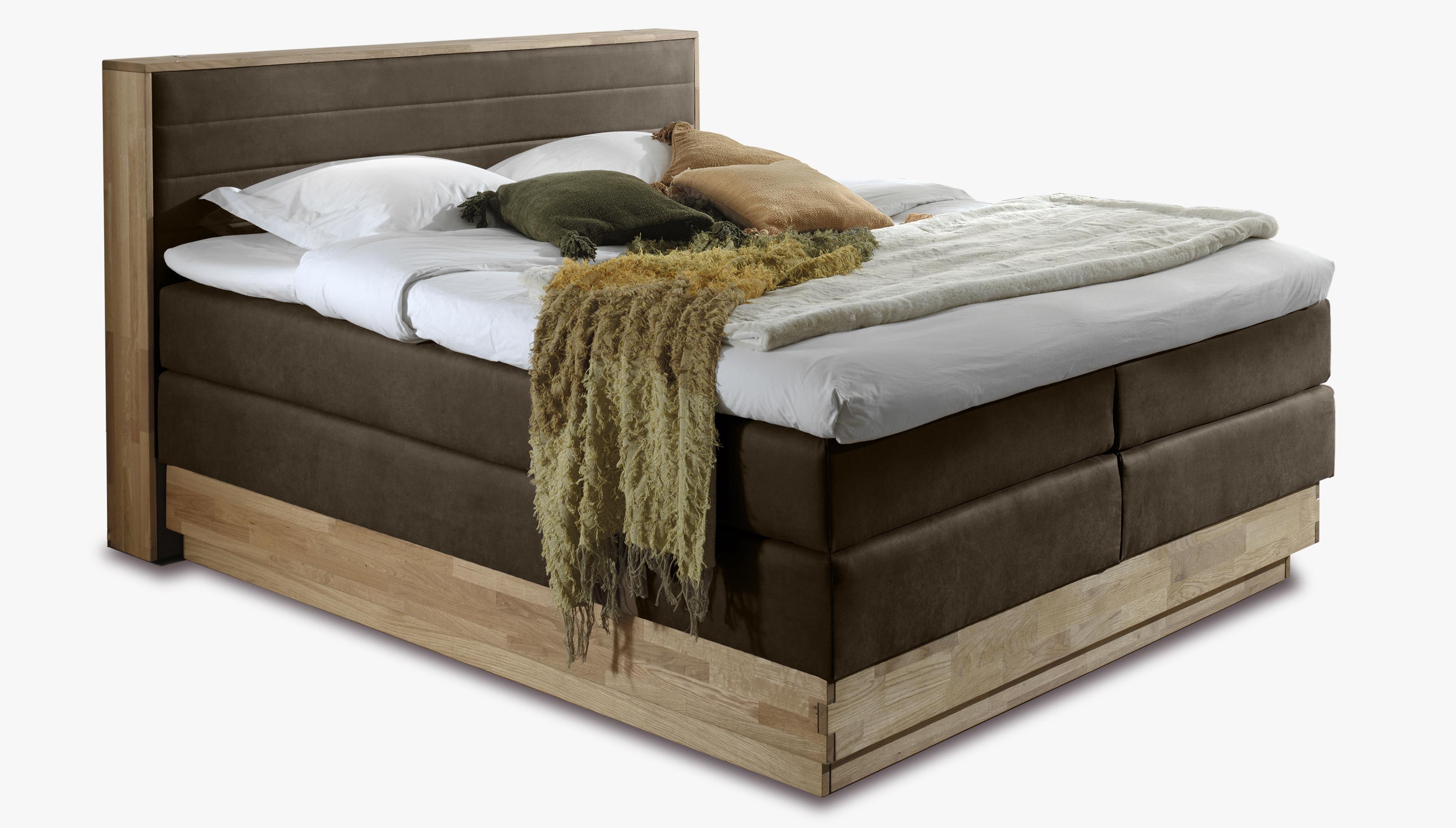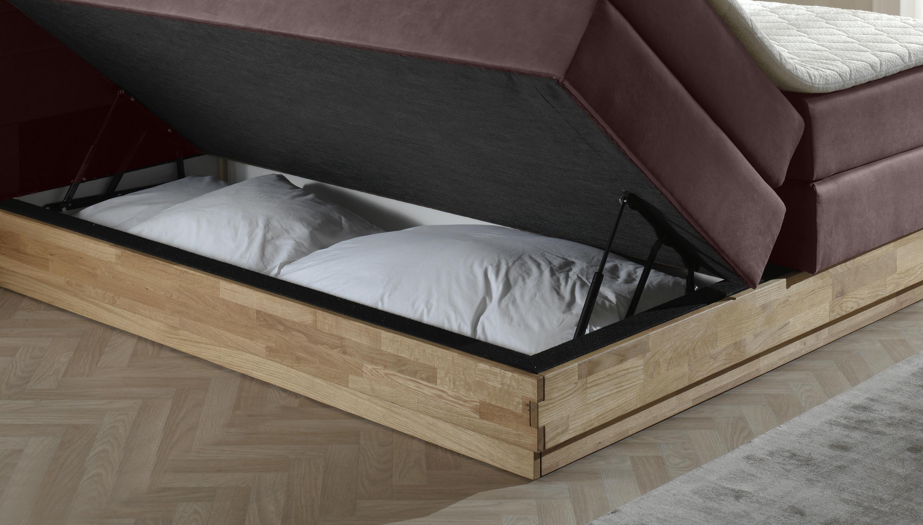 Dubová posteľ boxspring s úložným priestorom vrátane matracov Moneta 160 x 200