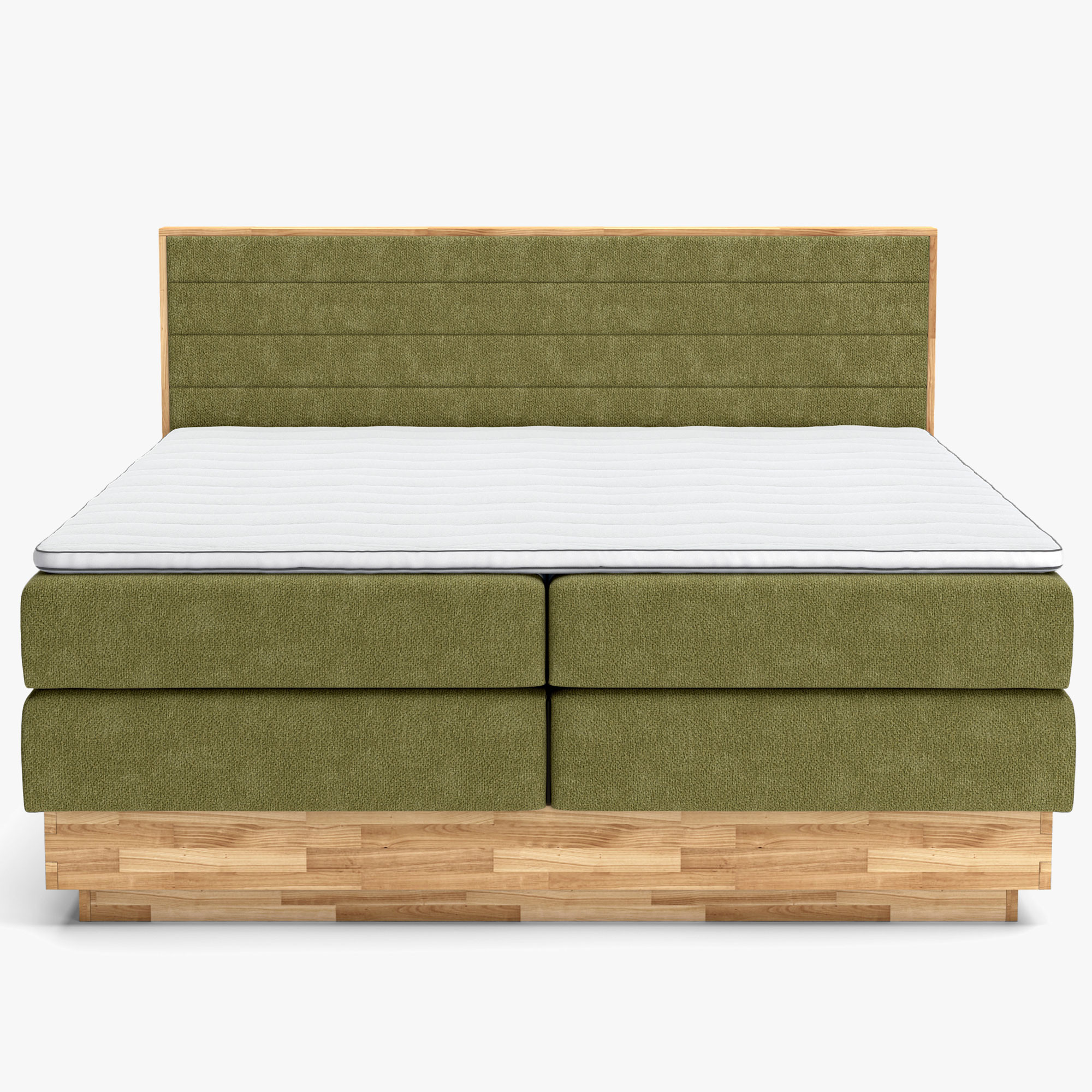 Cena postele je vrátane zadného čela, úložného boxu, na ktorom je pružinová matrac. Hlavná matrac je 7 zónová taštičková matrac s tvrdosťou H3, ktorá je považovaná za tvrdú matrac. Hustota taštičkových pružín je až 500 na m2. Základná cena je bez vrchného Topperu. Posteľ má odkladací priestor, ktorý sa otvára zboku.
