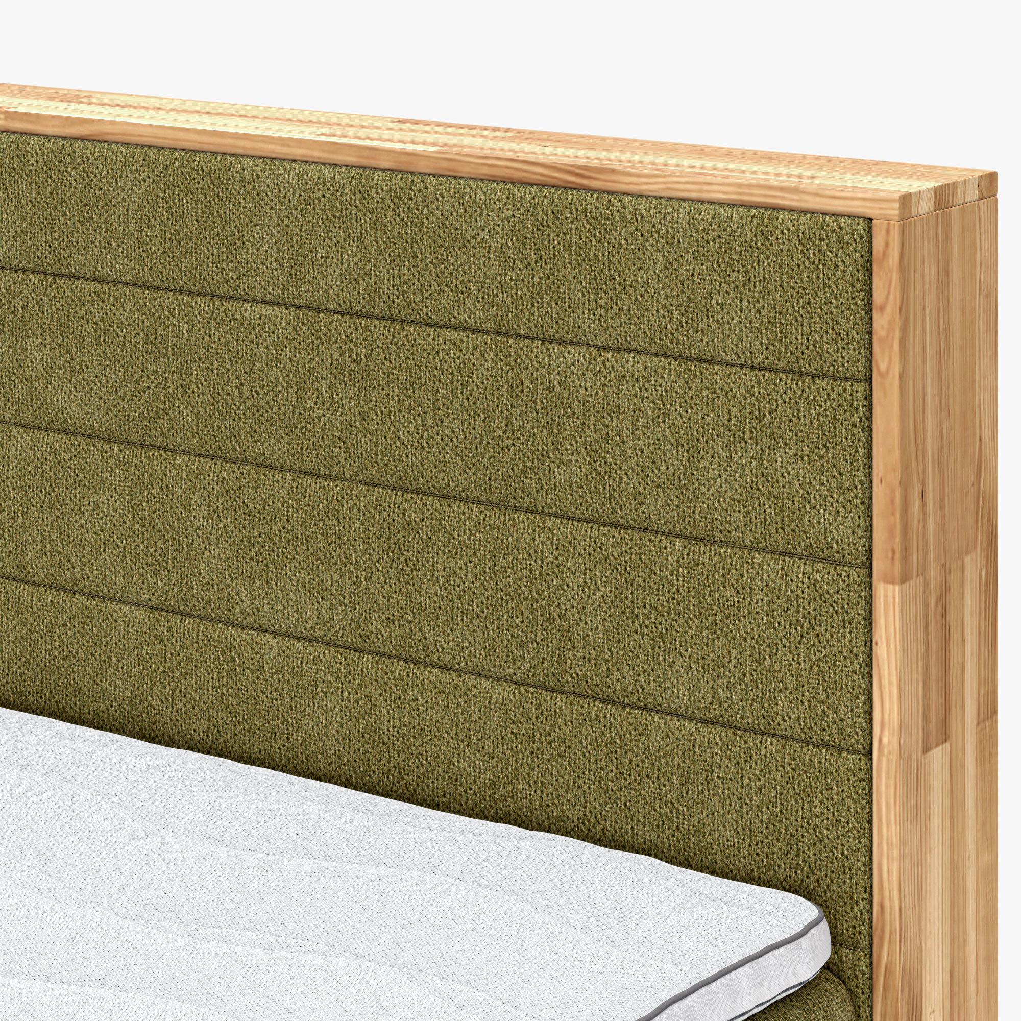 Všetko použité drevo na posteli je z obnoviteľných lesov s certifikátom FSC. Látky na posteli majú vysokú oderuvzdornosť s jednoduchým čistením pomocou mydla pH0. Látka na posteli v krásnej olivovo zelenej farbe. Látka je mäkká, je tak veľmi príjemná na dotyk.