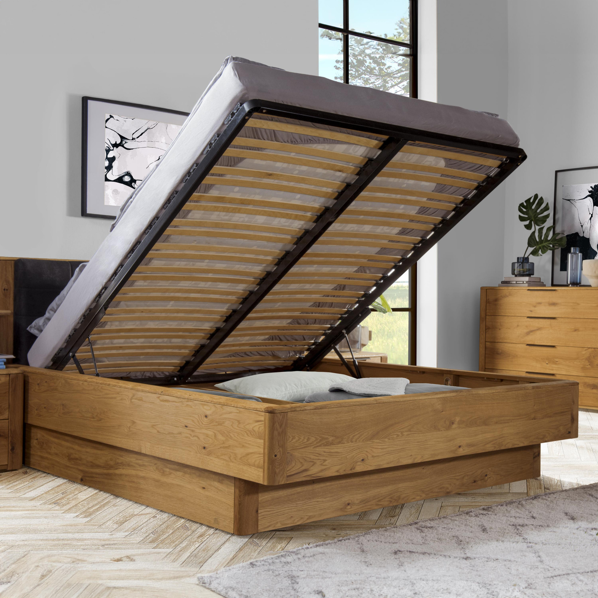 Posteľ z masívu dub s úložným priestorom, Texas 160 cm