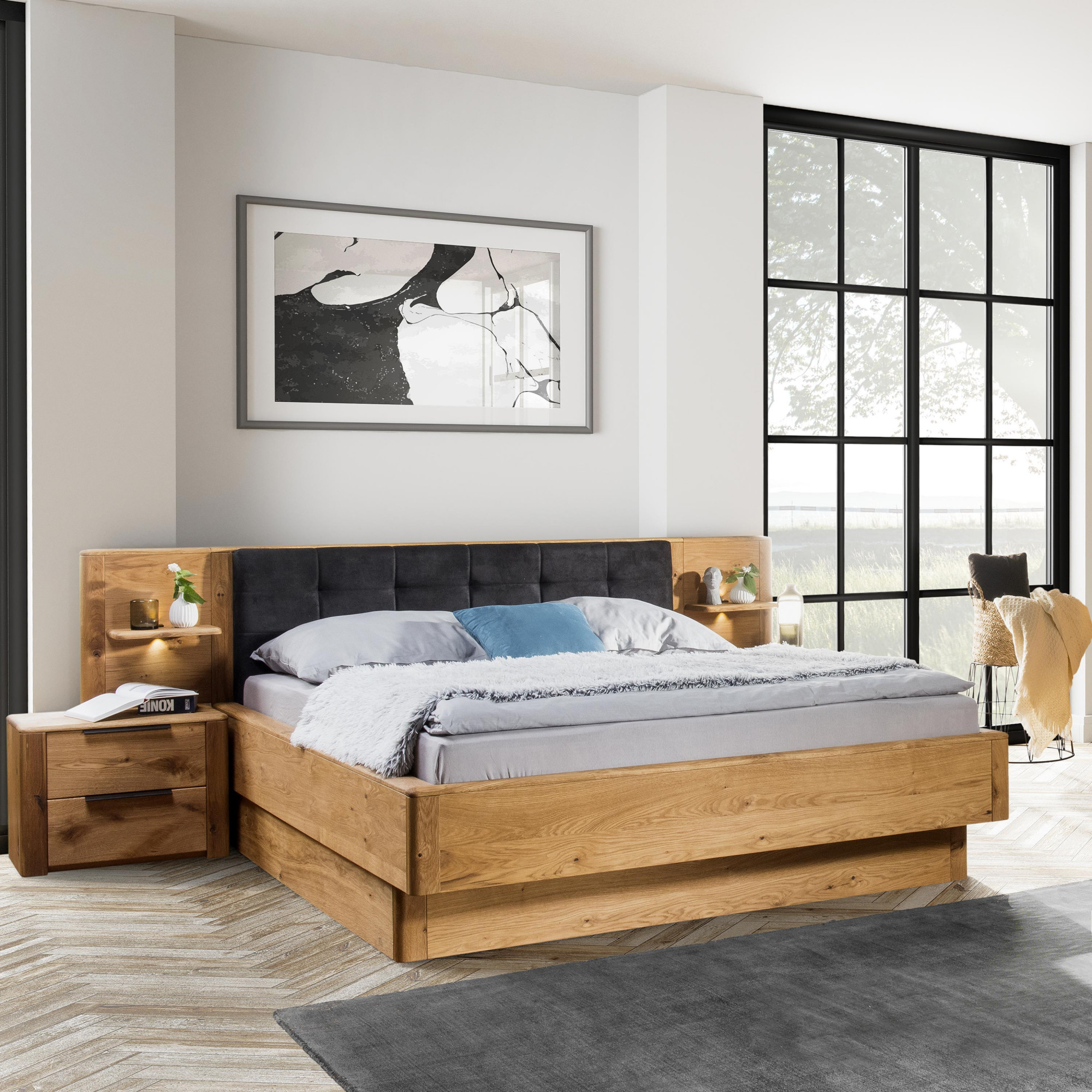 Cena postele nezahŕňa nočné stolíky ani matrac.