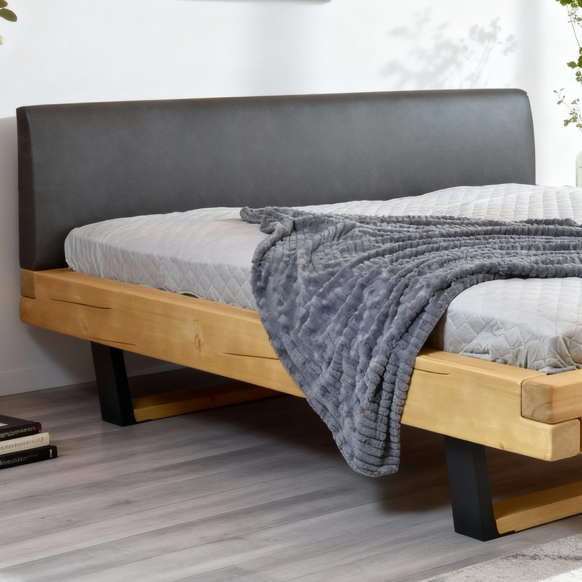 Moderná luxusná posteľ z masívneho dreva smrek . Model Laura je na kovových nohách v čiernej matnej farbe. Posteľ je mimoriadne stabilná a pevná, konštrukcia je navrhnutá tak, aby zvládla každý nápor a je určená na generácie. Moderná manželská posteľ je dostupná v niekoľkých šírkach matraca. Matrac nie je súčasťou postele, no môžete si vybrať z našej ponuky značkových matracov Mirek.