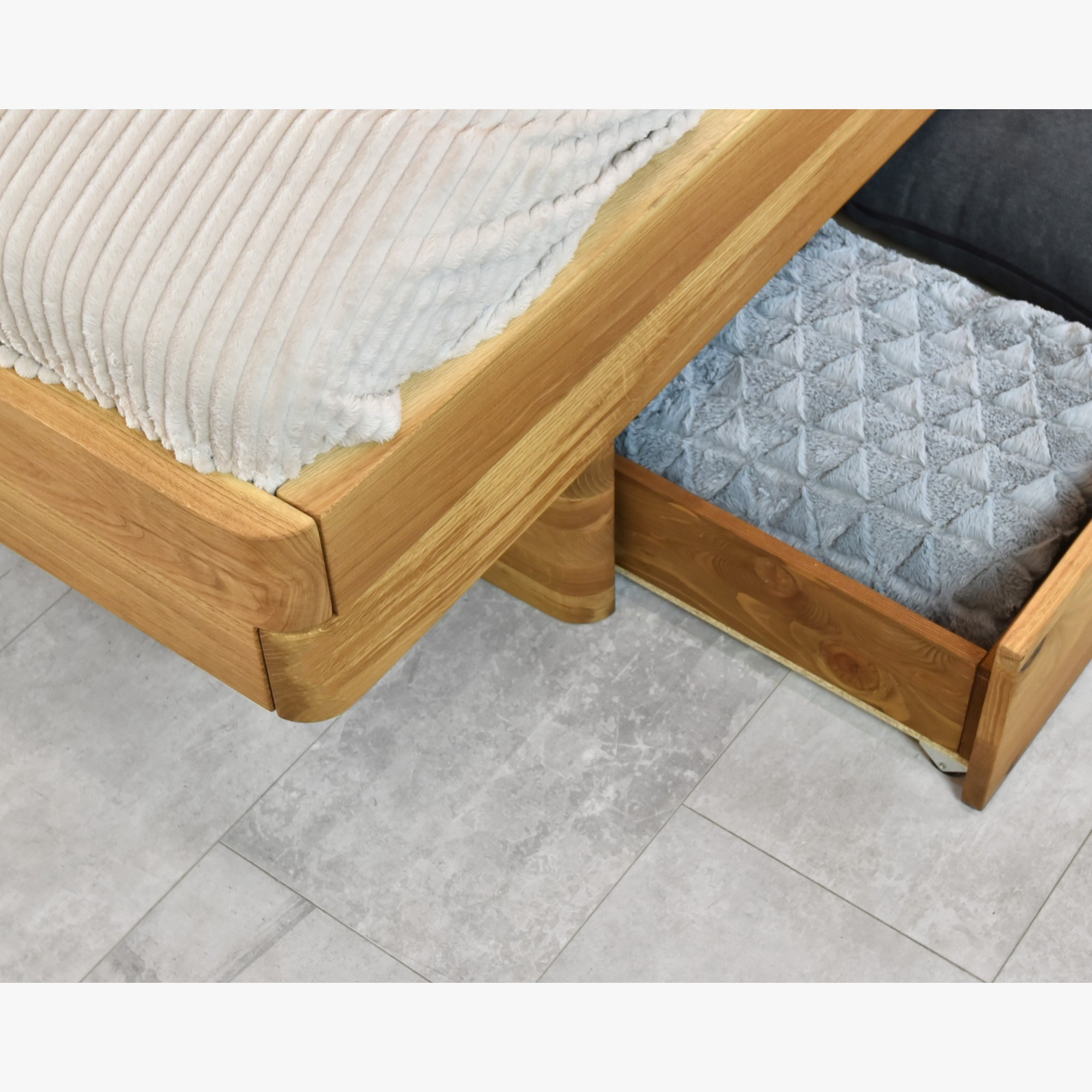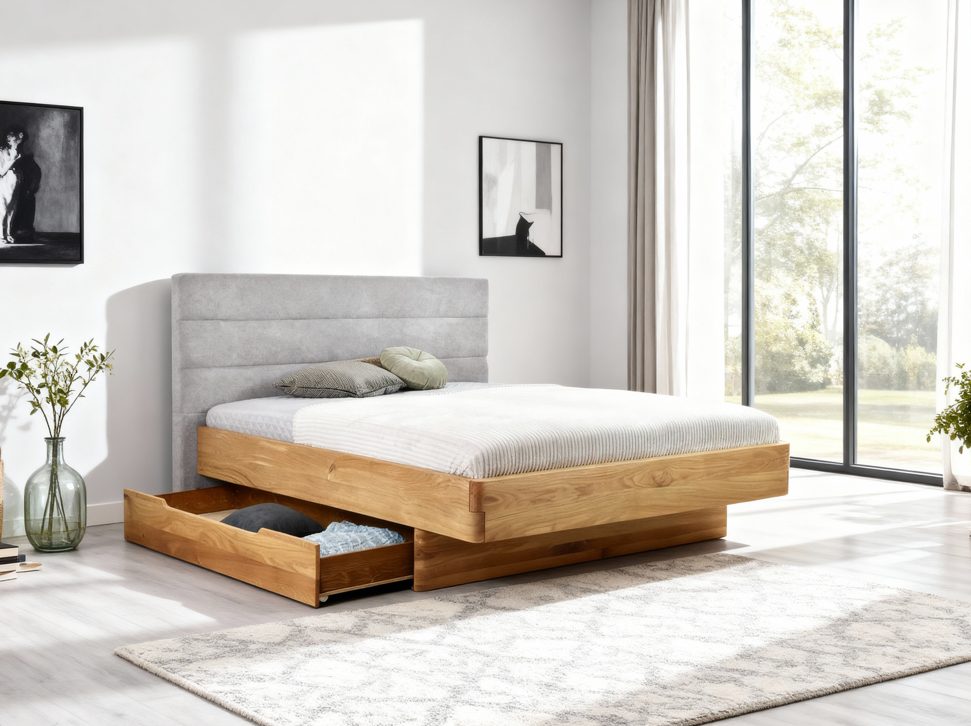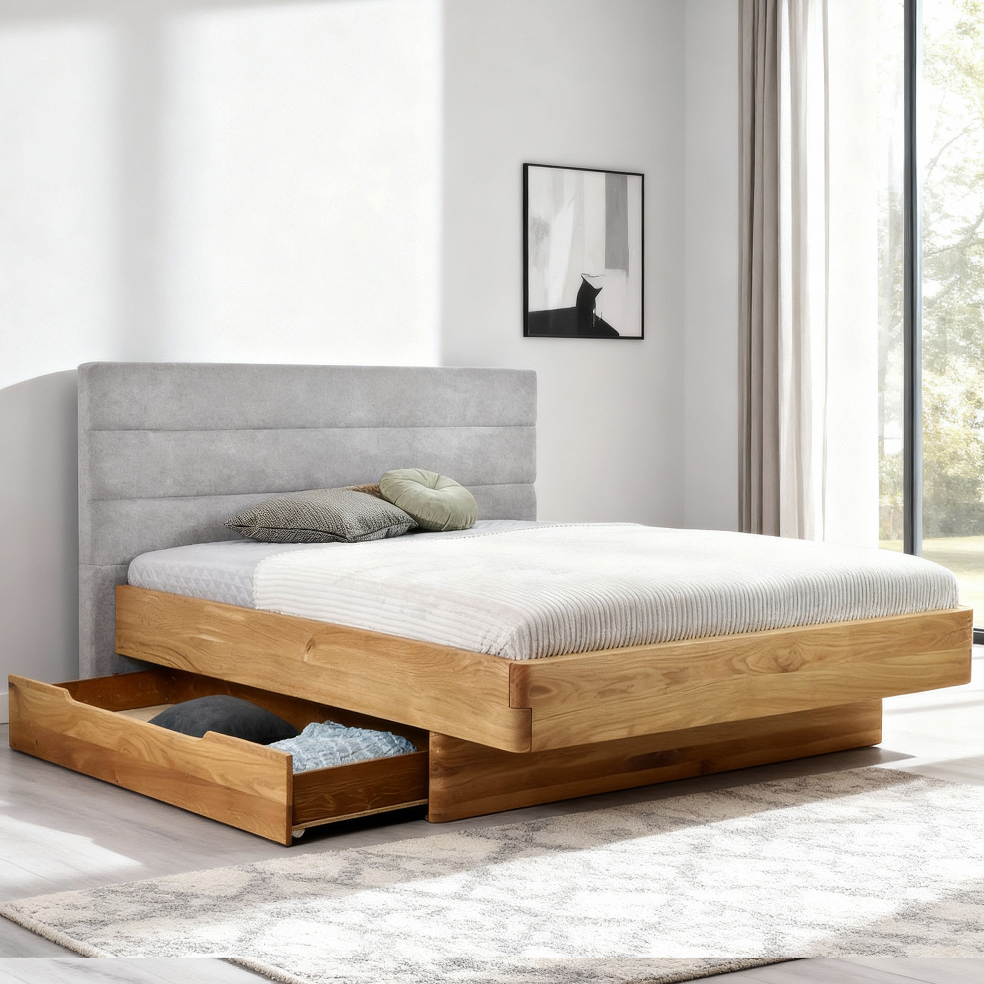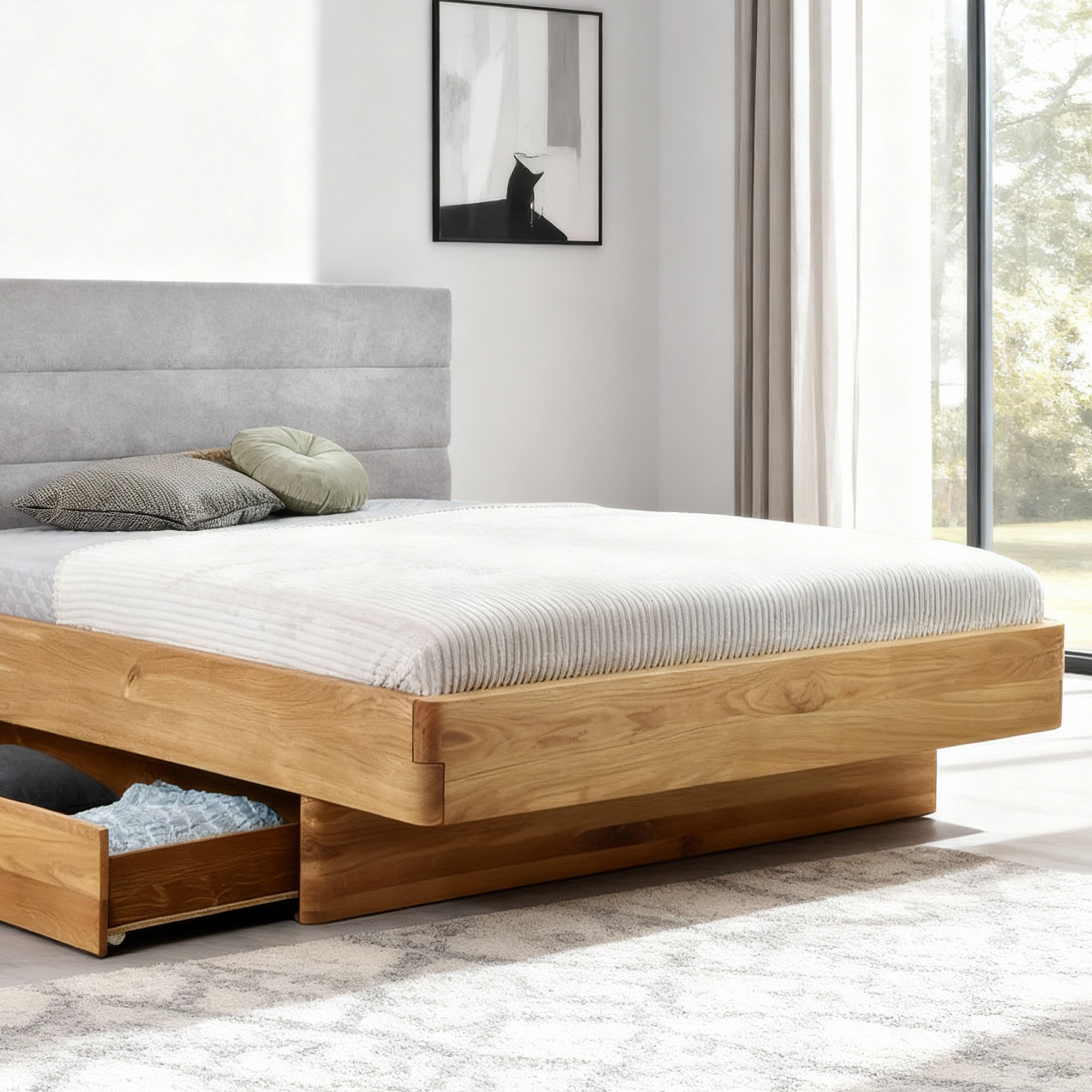 Konštrukcia postele je robustná a stabilná, vyrobená z dubového masívu s hrúbkou materiálu 4 cm. Povrch postele je ošetrený ekologickým prírodným olejom, ktorý zachováva prirodzenú krásu dreva a chráni ho pred vlhkosťou a poškodením. Do rámu postele je možné vložiť akýkoľvek rošt podľa vášho výberu, ktorý nie je súčasťou ceny. Posteľ je kompatibilná so širokou ponukou dubového nábytku do spálne v prírodnom prevedení, čím vytvoríte harmonický a štýlový interiér.
