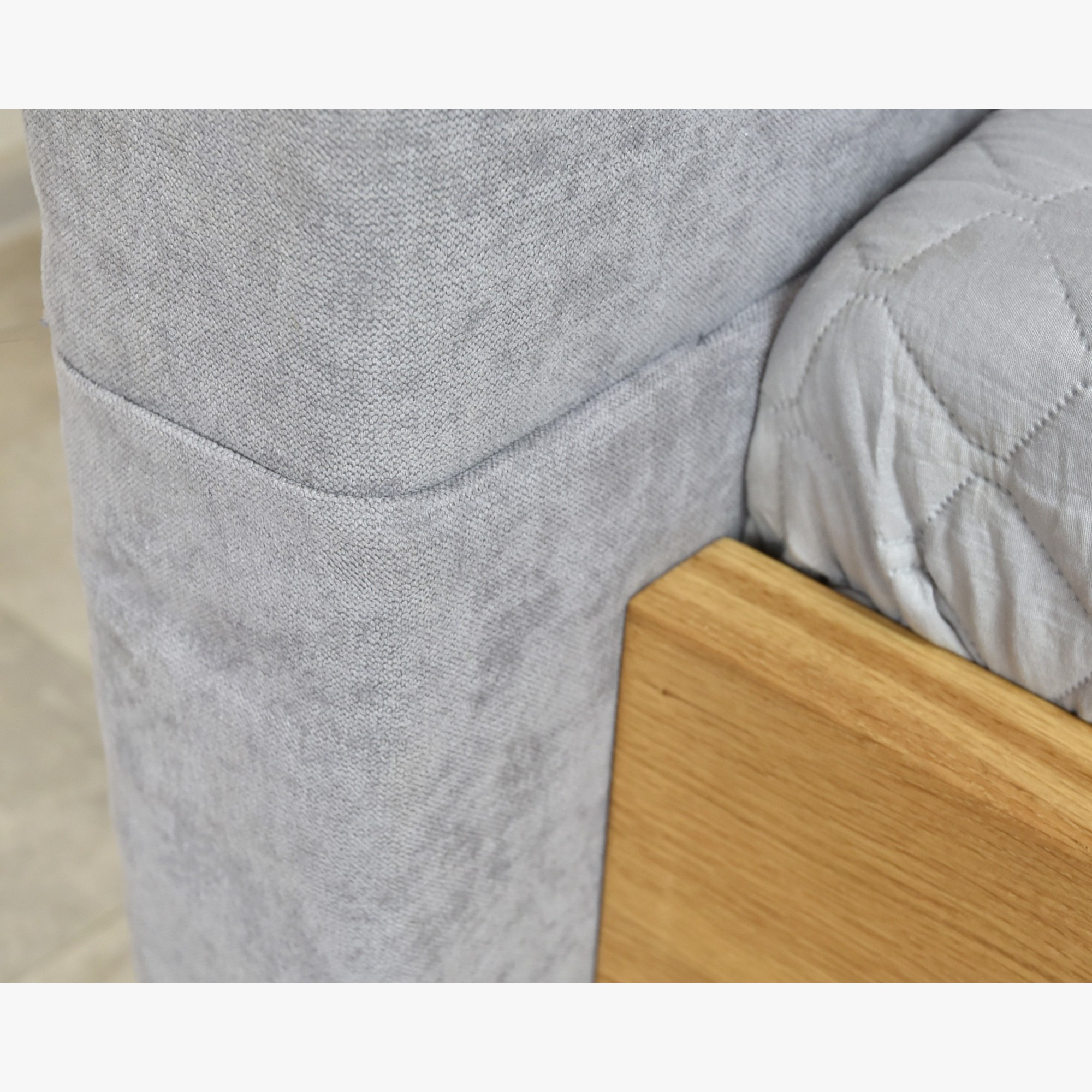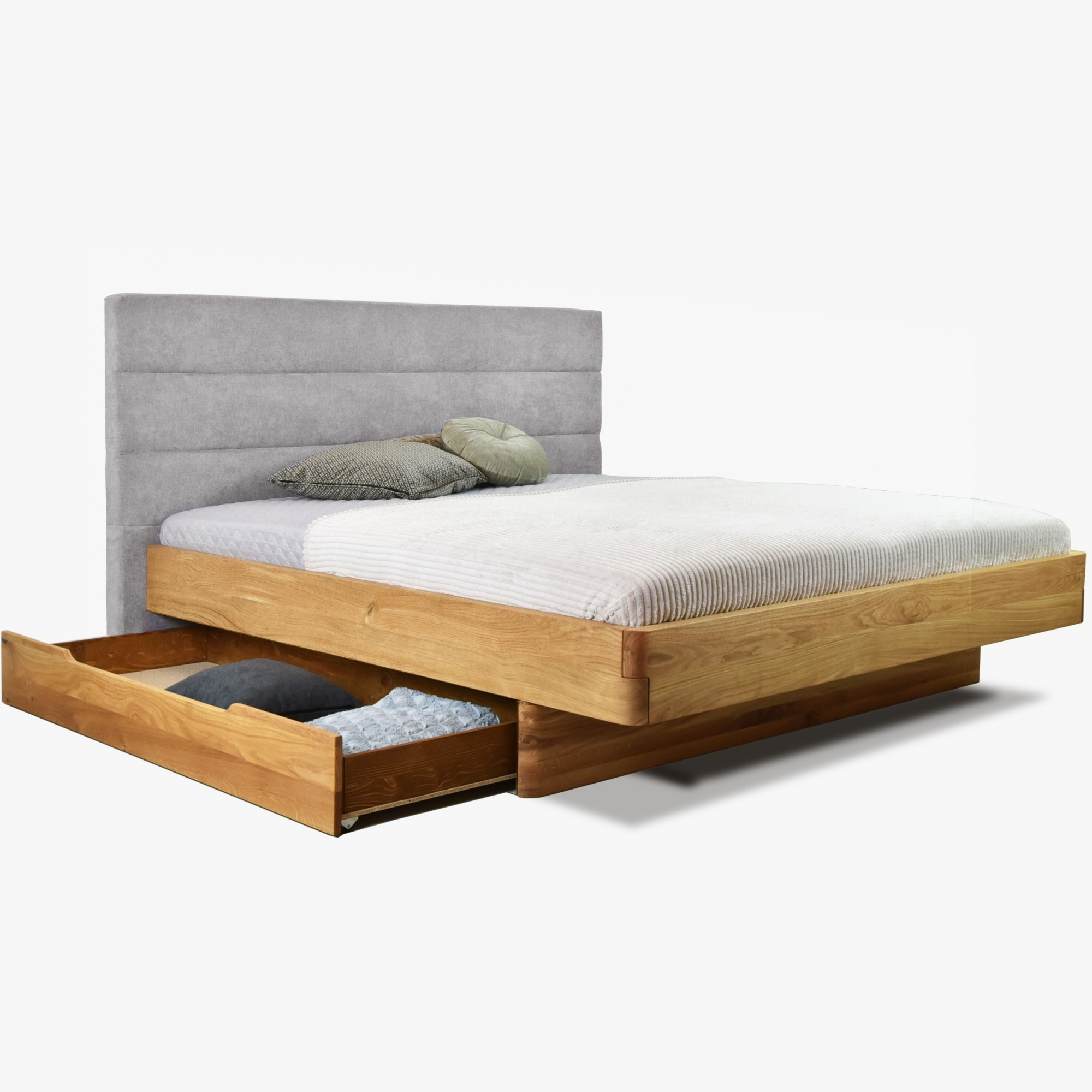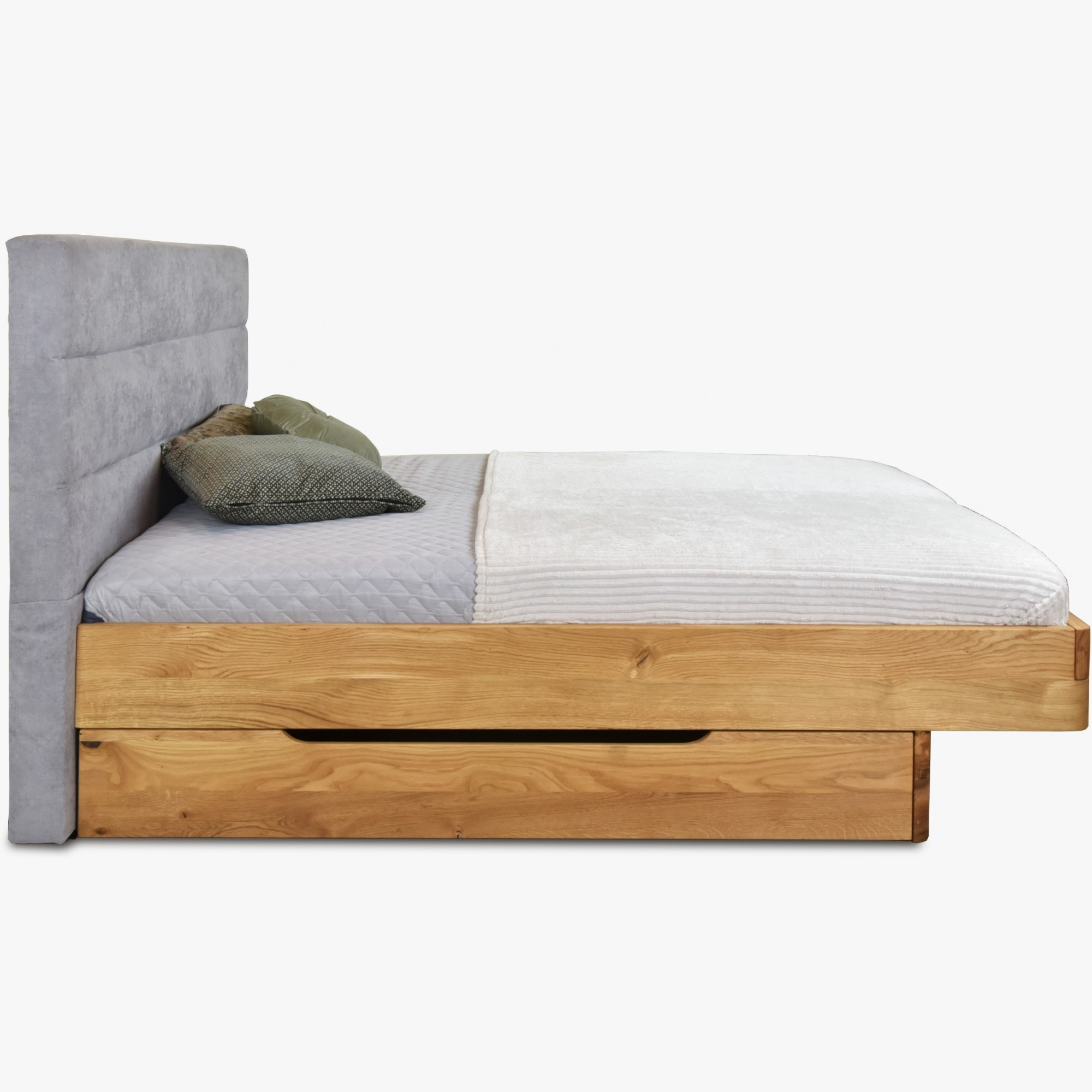 Dubová posteľ Dominika s látkovým čelom sivá 160 x 200 cm – masívny nábytok do spálne