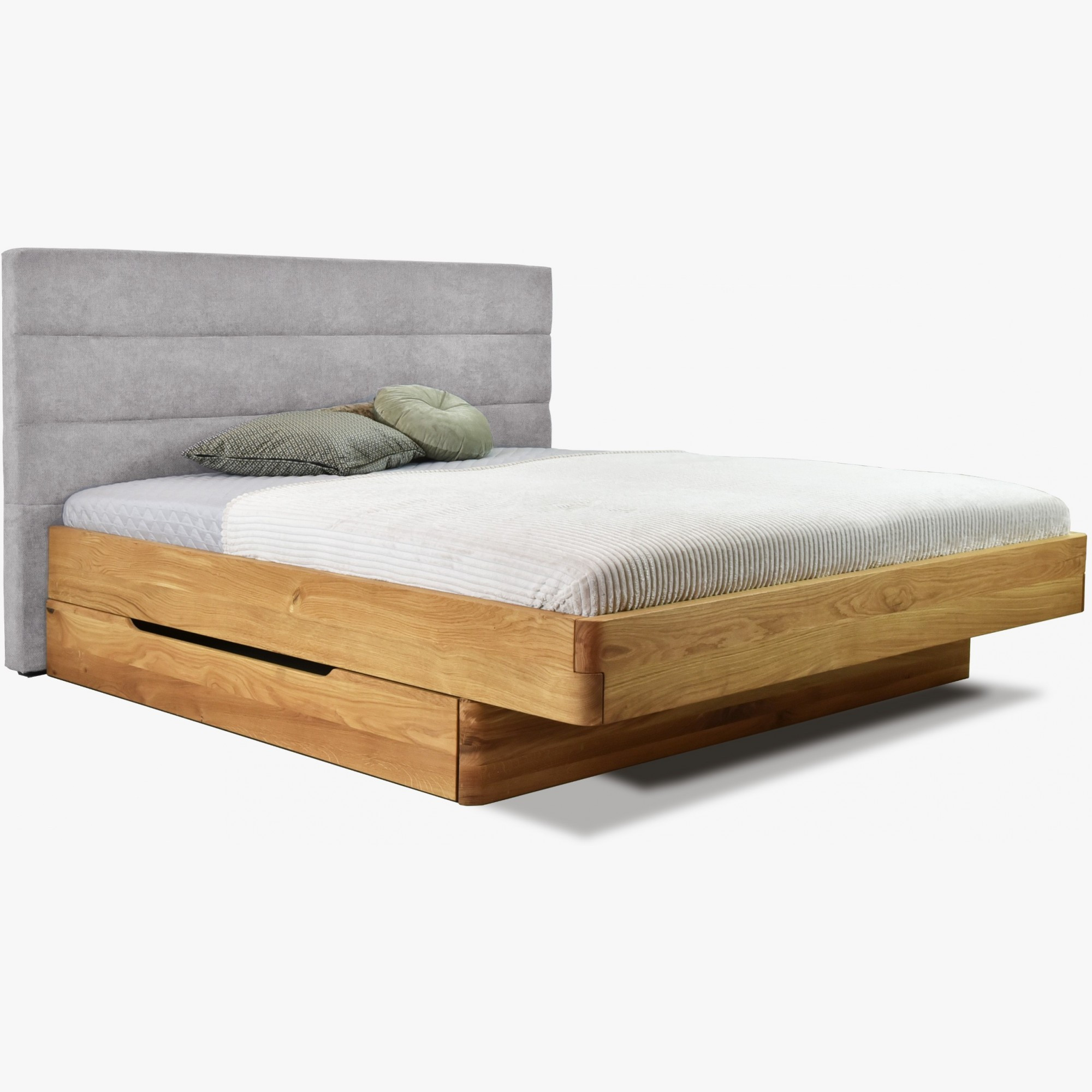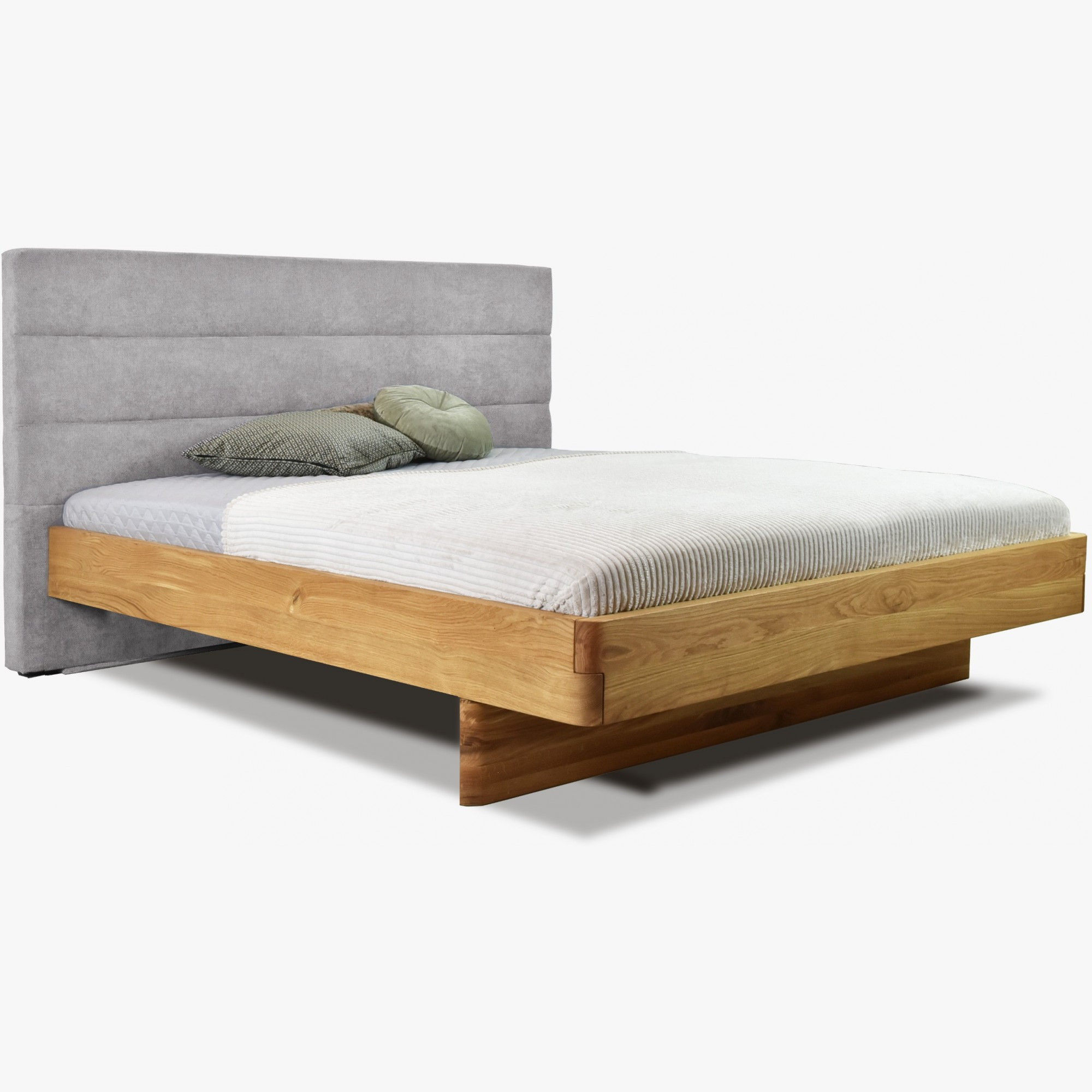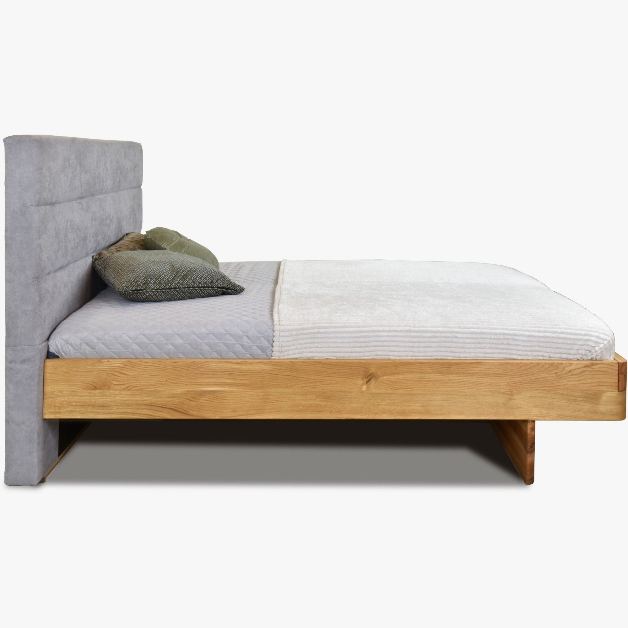 Dubová posteľ Dominika s látkovým čelom sivá 180 x 200 cm – masívny nábytok