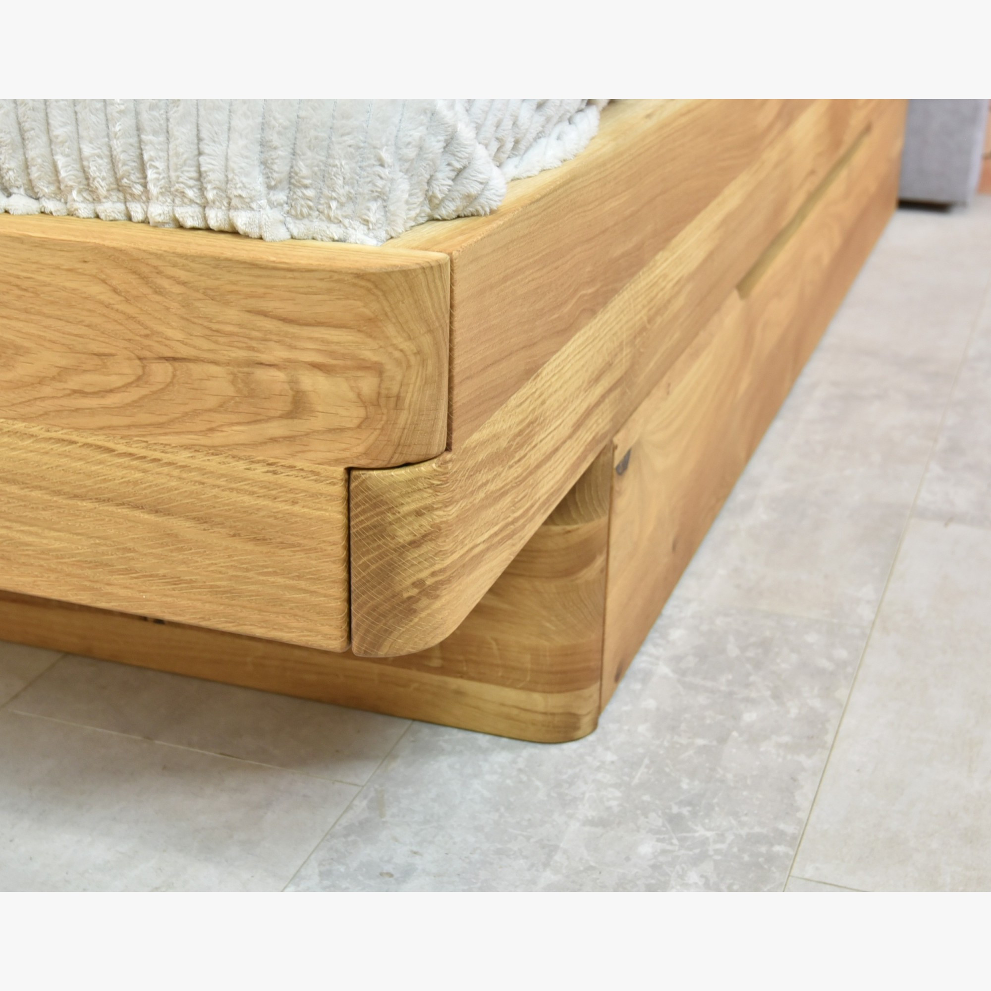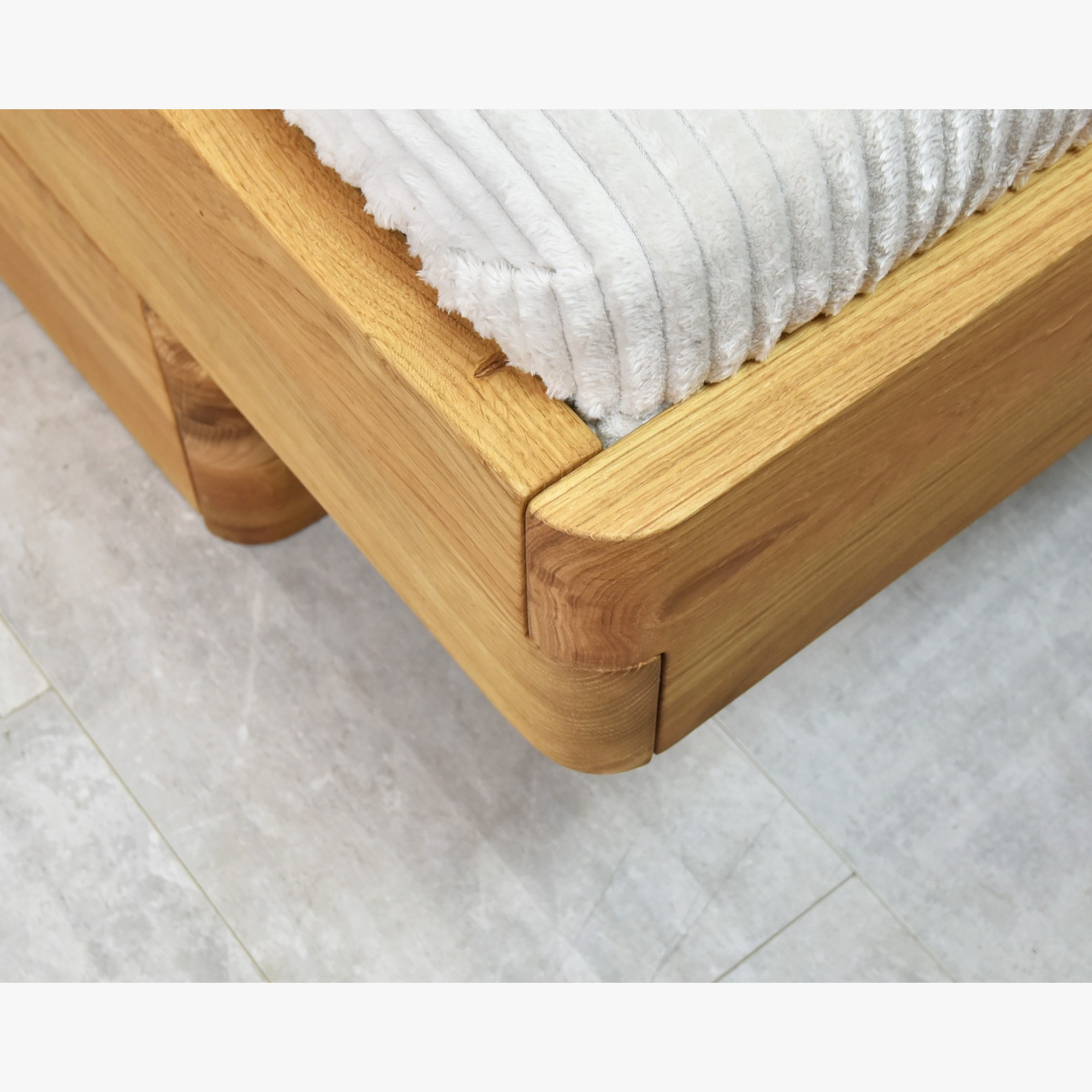 Konštrukcia postele je robustná, s pevnými nohami a hrúbkou materiálu až 4 cm, čo zaručuje stabilitu a dlhú životnosť. Povrch je ošetrený ekologickým prírodným olejom, ktorý chráni drevo a zachováva jeho prirodzený vzhľad. Posteľ je kompatibilná s akýmkoľvek roštom podľa vašej voľby, ktorý však nie je súčasťou balenia. K posteli je možné kombinovať ďalší dubový nábytok v prírodnom prevedení, čím vytvoríte harmonický interiér.