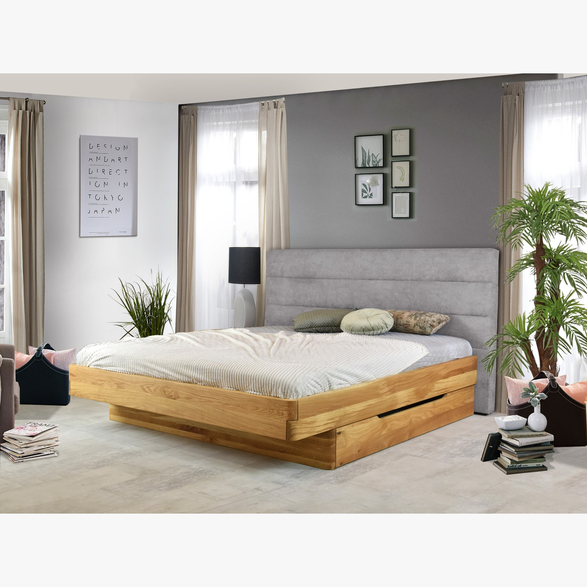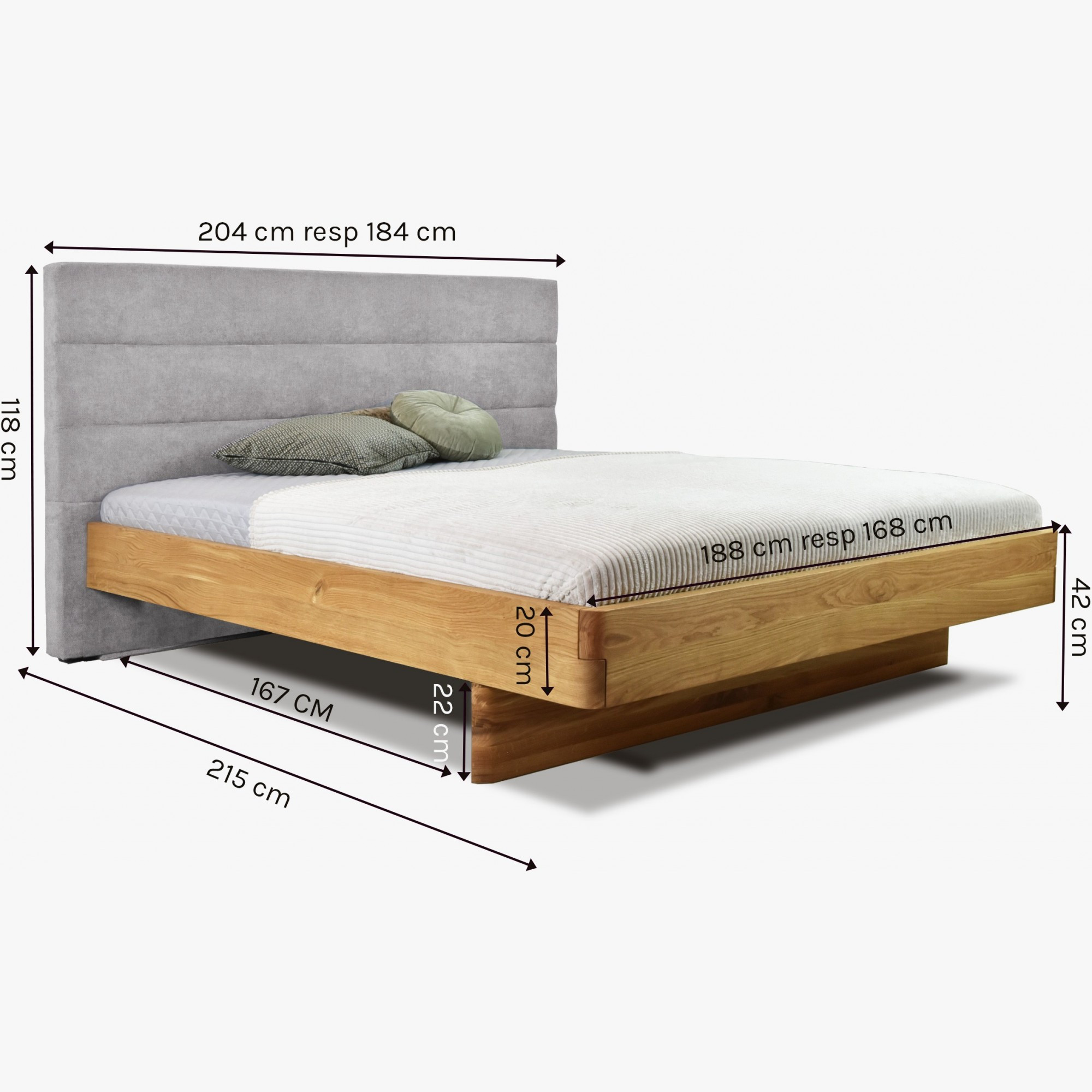 Dubová posteľ látkové čelo sivé, Dominika 180 x 200 cm