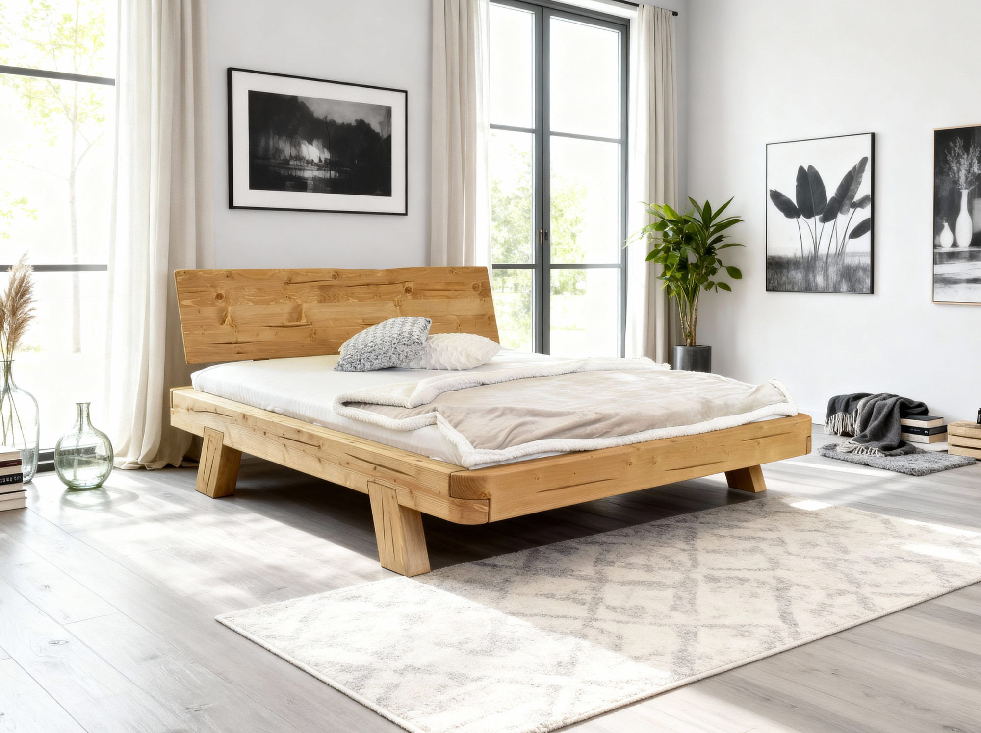 Konštrukcia postele pozostáva zo smrekových trámov s rozmermi 16 x 9 cm. Posteľ je ošetrená prírodným olejom, ktorý zvýrazňuje kresbu dreva a zabezpečuje ochranu povrchu. Stabilitu zaisťujú robustné nohy zapustené do rámu. Vnútorný rozmer postele je 160 x 200 cm, do rámu je možné vložiť akýkoľvek lamelový rošt podľa vlastného výberu, ktorý však nie je súčasťou ceny. Posteľ sa dodáva rozložená s jednoduchou montážou a je dostupná aj v dubovom prevedení s certifikátom FSC.
