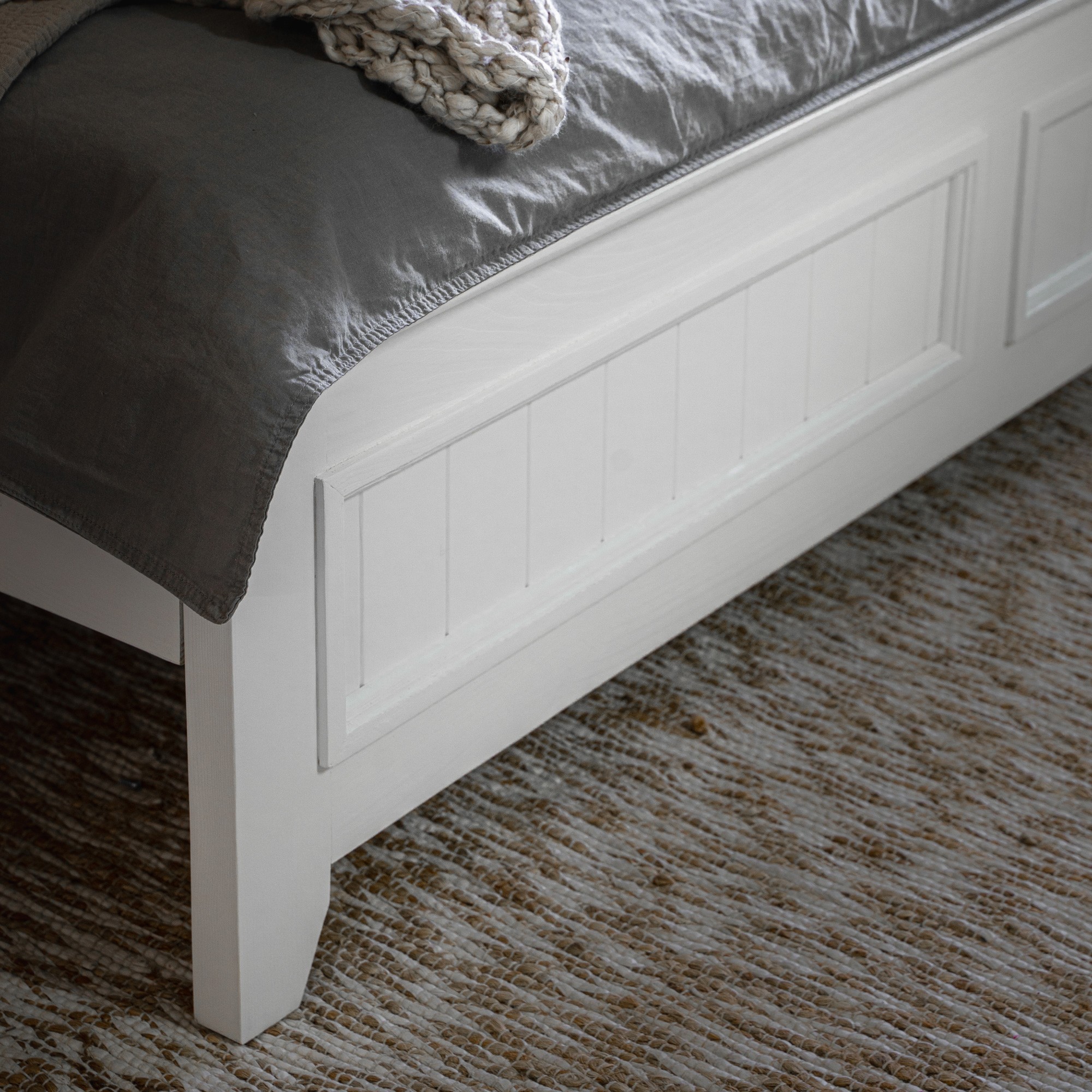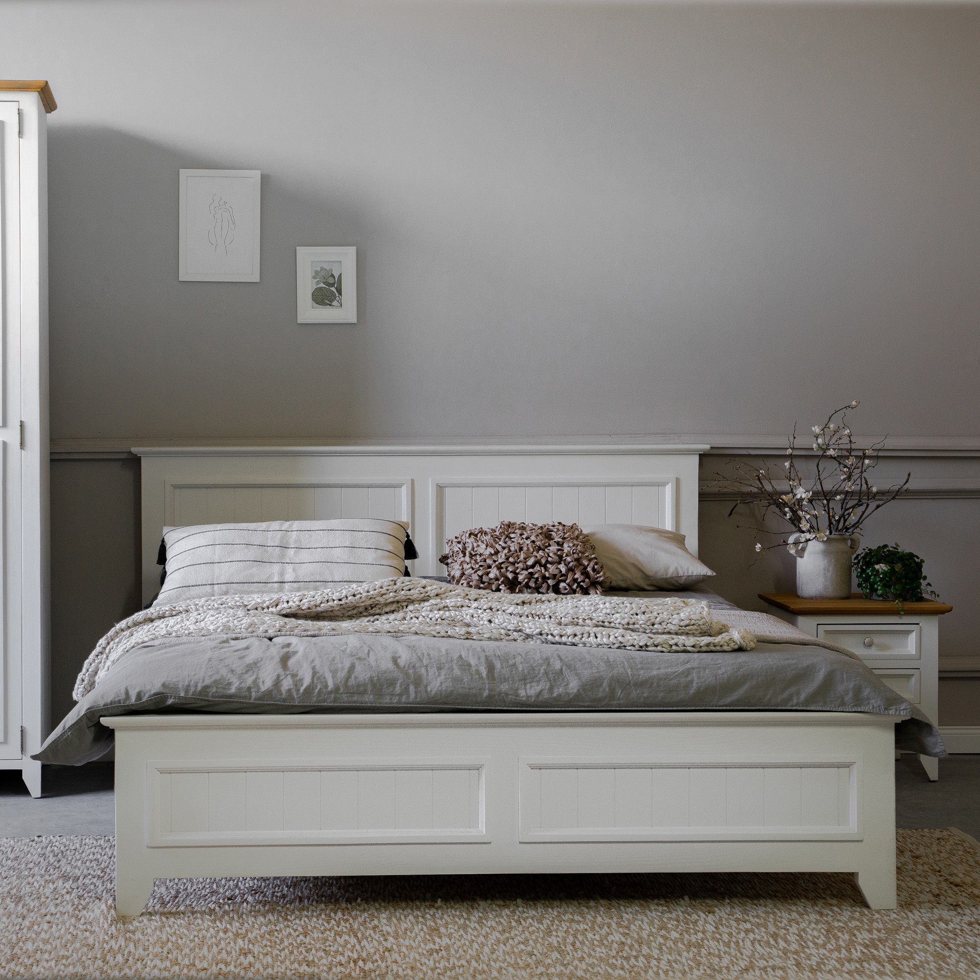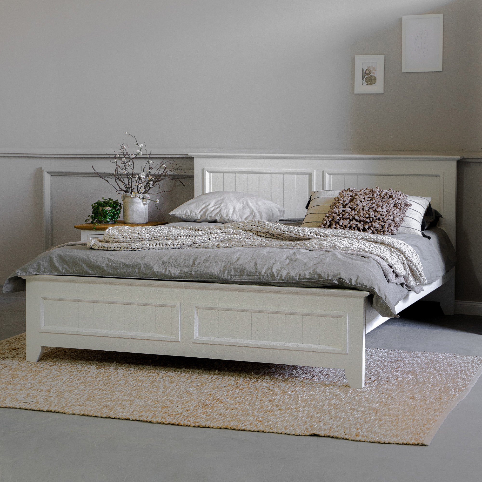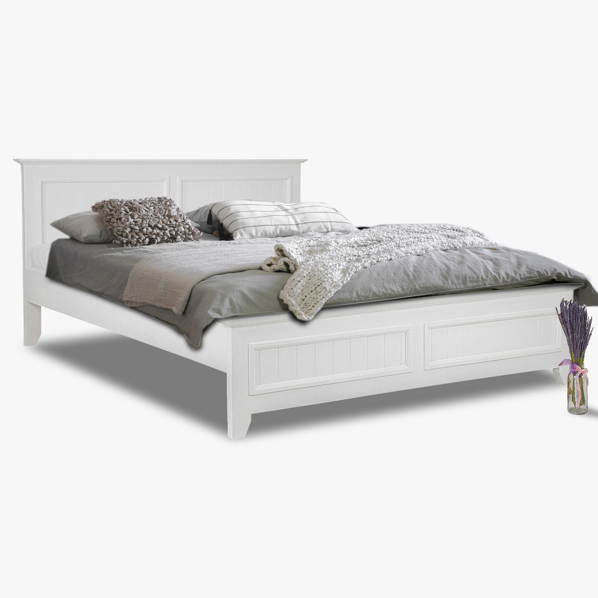Konštrukcia postele je pevná a stabilná, vyrobená z masívneho borovicového dreva s bielou povrchovou úpravou na vodnej báze, ktorá zvýrazňuje prirodzenú štruktúru dreva. Do rámu postele je možné vložiť ľubovoľný rošt podľa vášho výberu. Posteľ sa jednoducho kombinuje s ostatnými prvkami kolekcie Lille, čím dopĺňa štýl a funkčnosť vašej spálne.