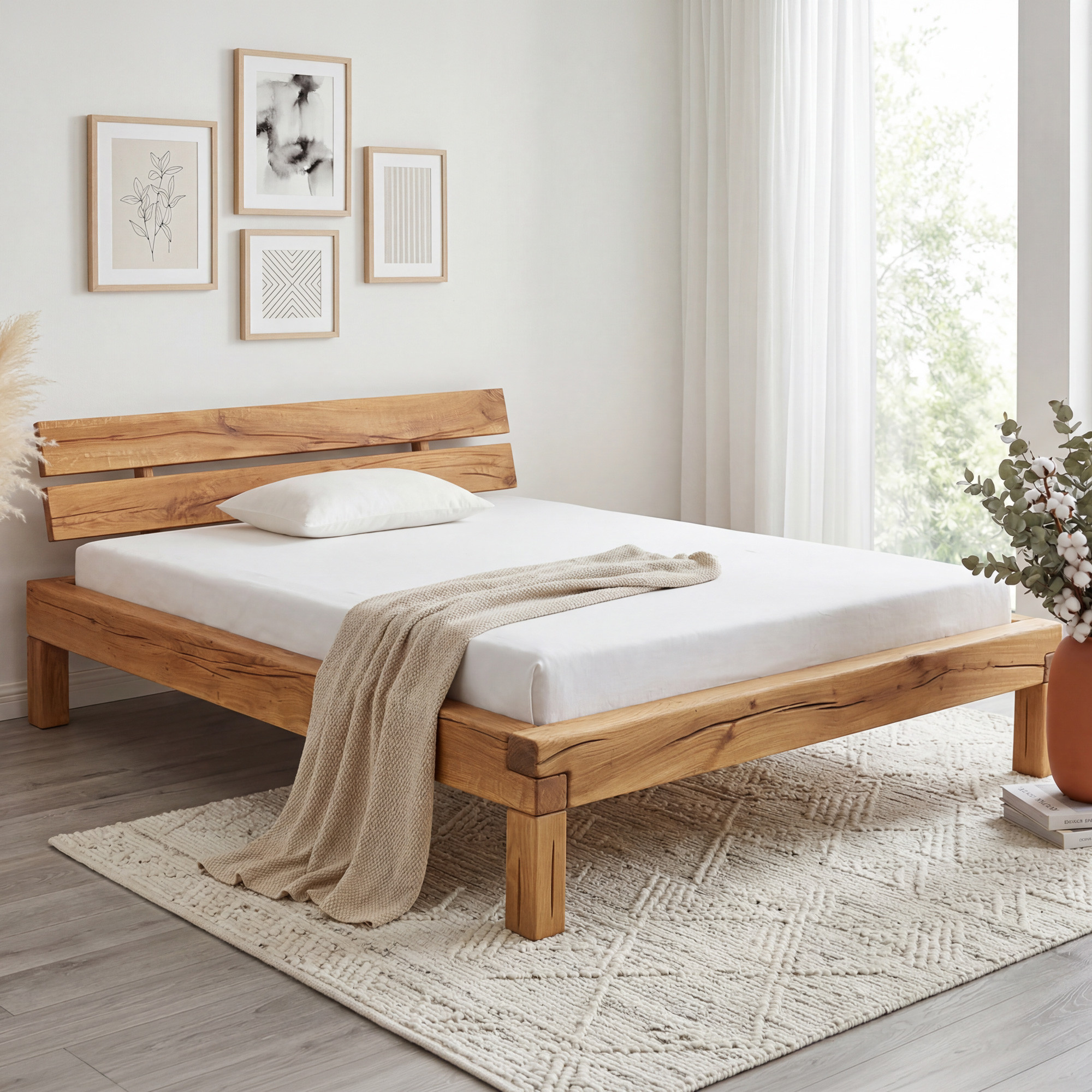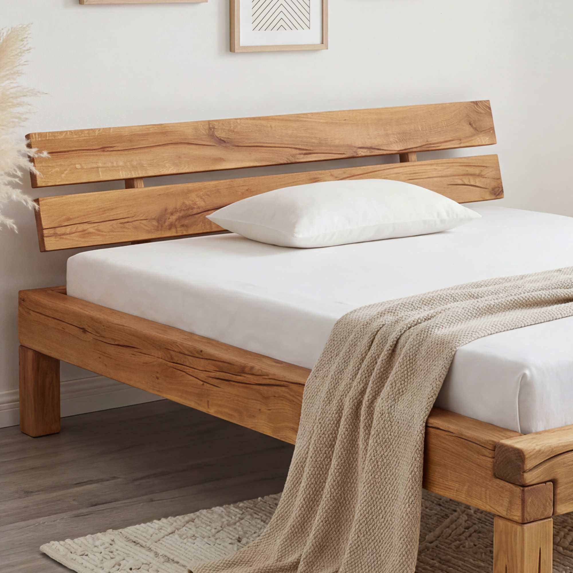 Dubová posteľ z masívu 180 x 200 cm z dubových trámov, Ernad III