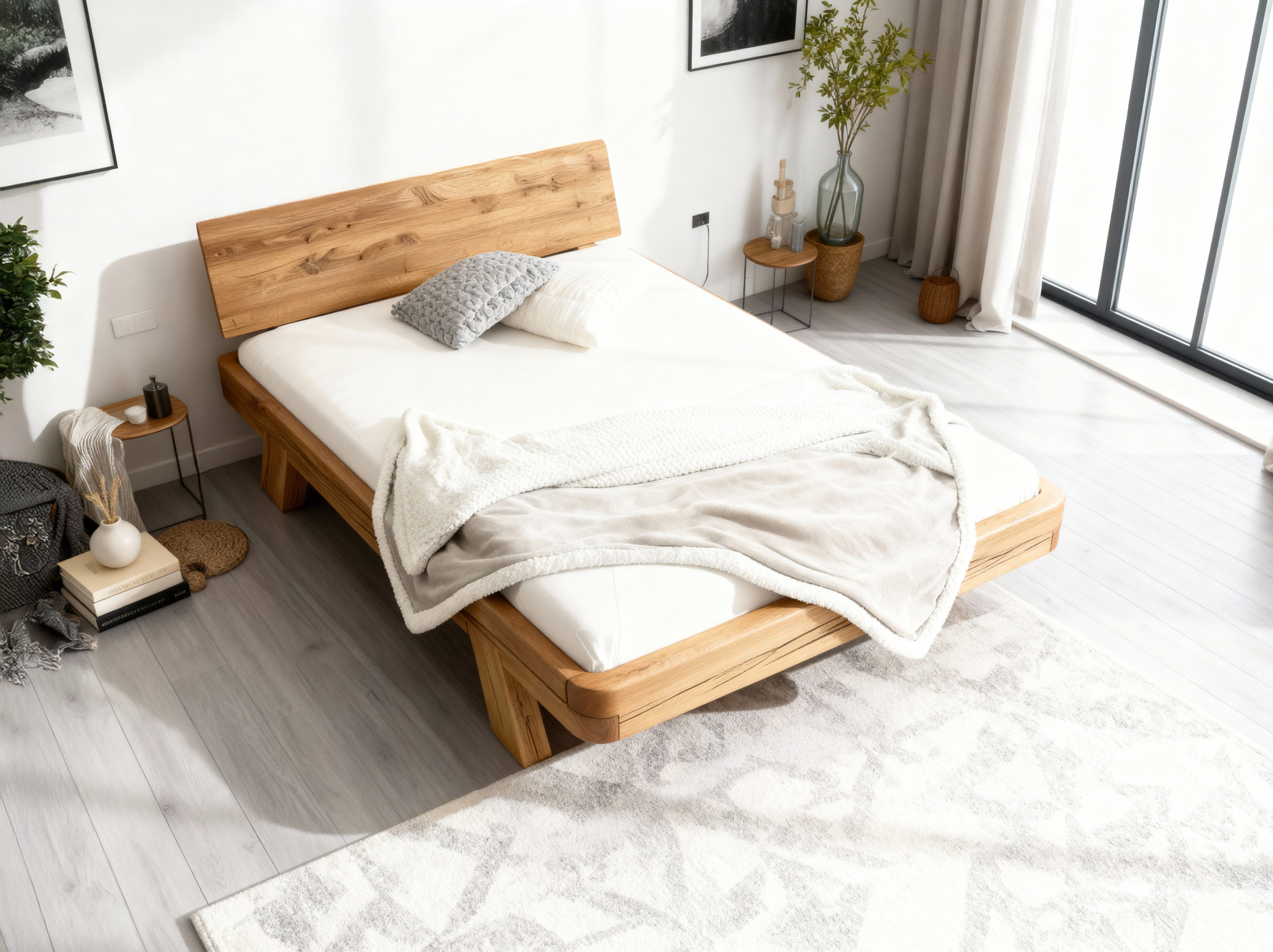 Posteľ je vyrobená z robustných dubových trámov o rozmere 16 × 9 cm s povrchovou úpravou prírodným olejom, ktorý zvýrazňuje krásu dreva a chráni ho pred poškodením. Stabilitu zabezpečujú pevné nohy zapustené do rámu. Vďaka zaobleným hranám je bezpečná pre každodenné používanie a jej dizajn je možné ľahko kombinovať s ďalším dubovým nábytkom.