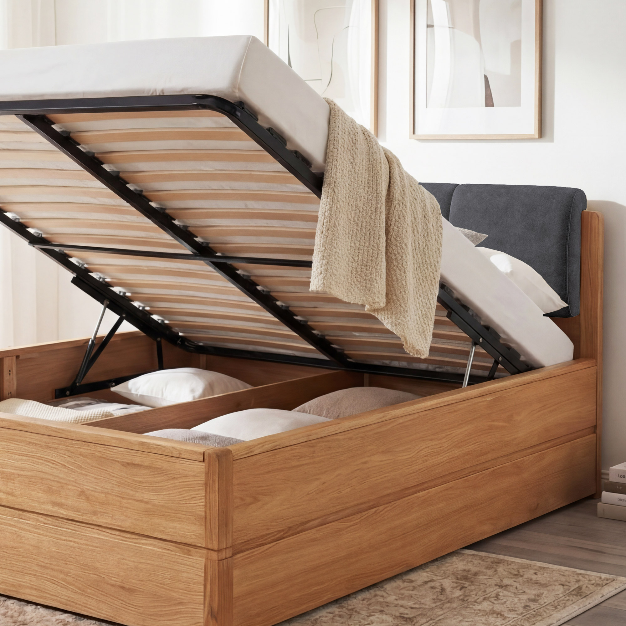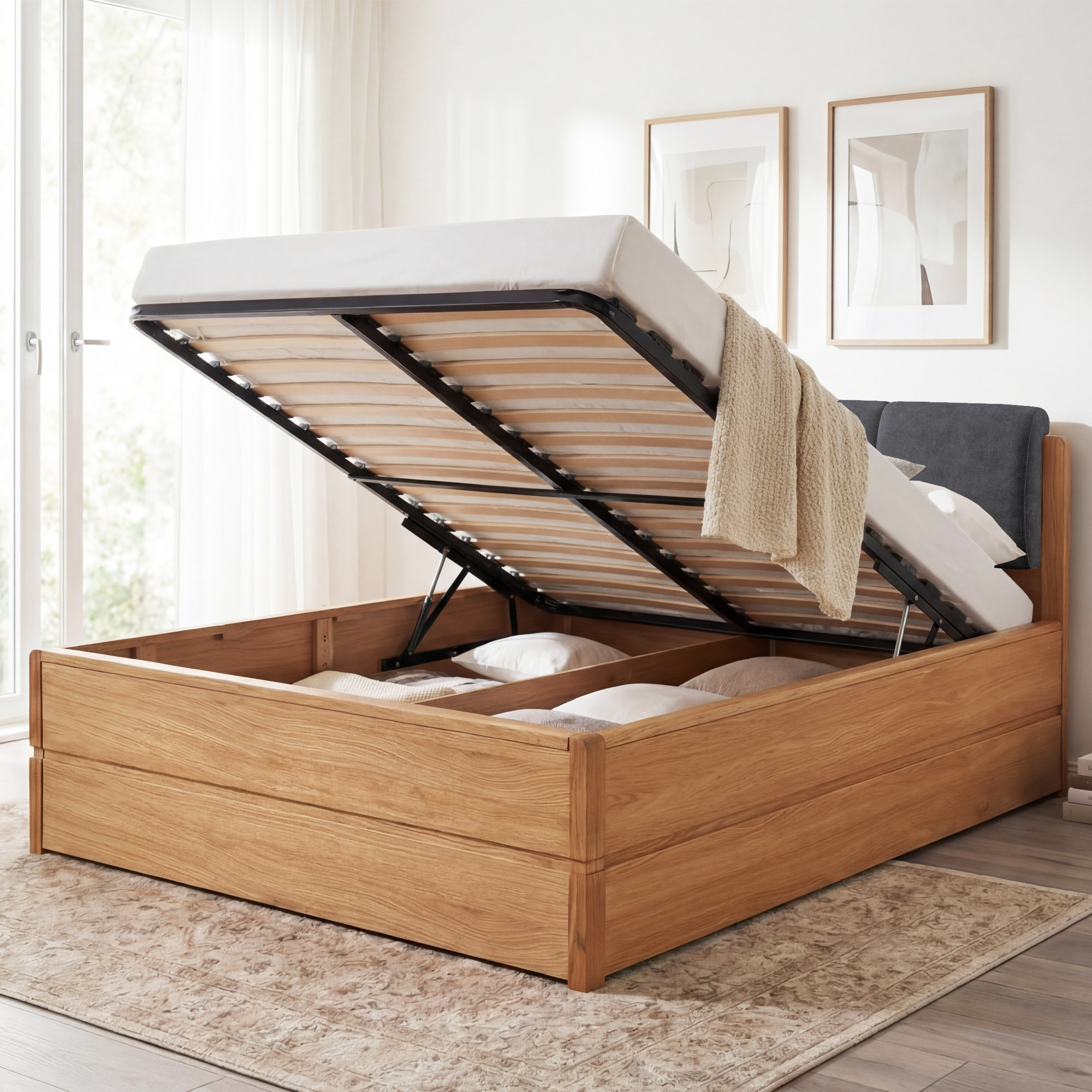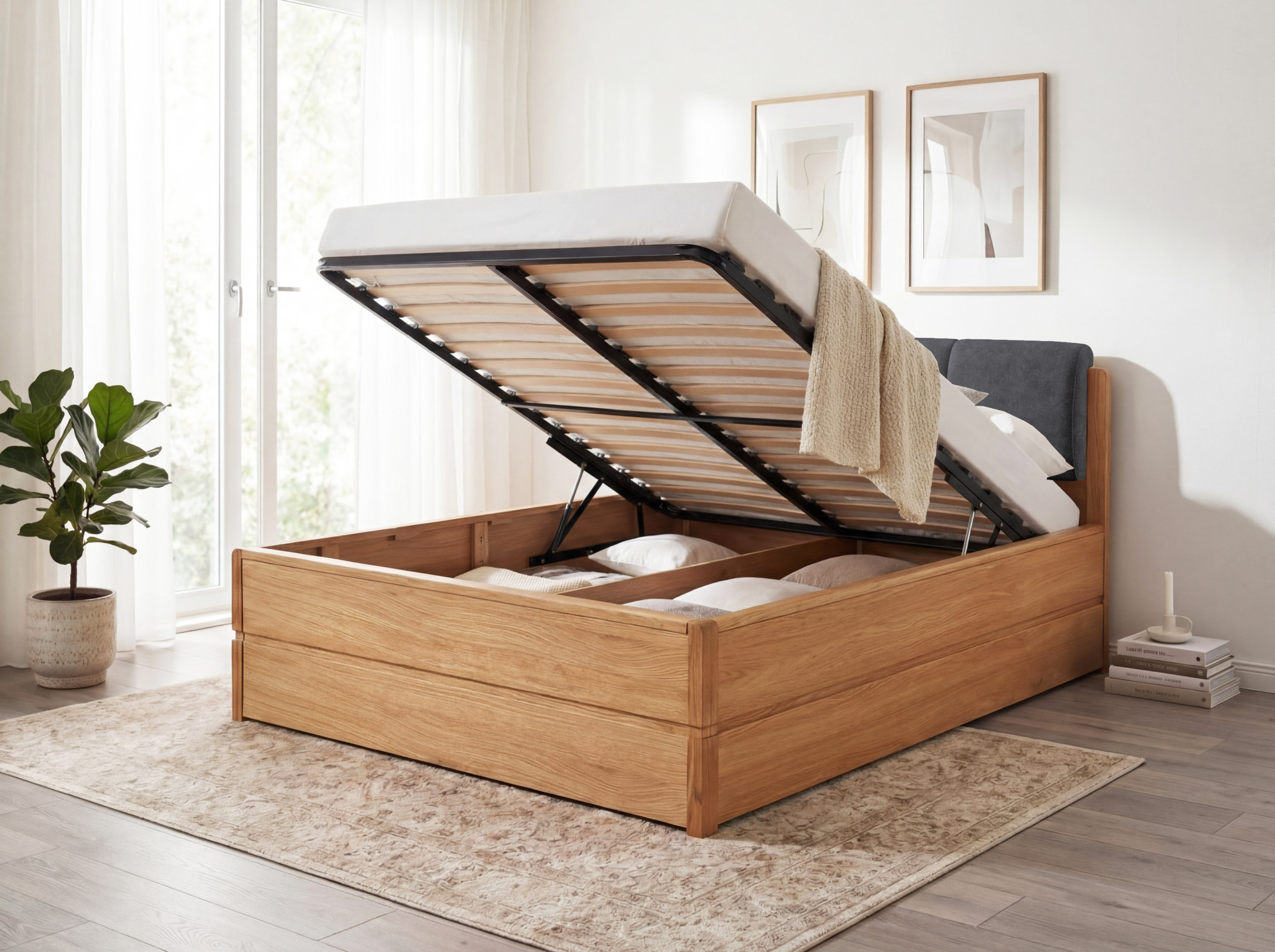 Súčasťou dodávky je kvalitný lamelový rošt. Matraci si môžete dokúpiť samostatne podľa vašich preferencií a potrieb. - Ako funguje úložný priestor?
