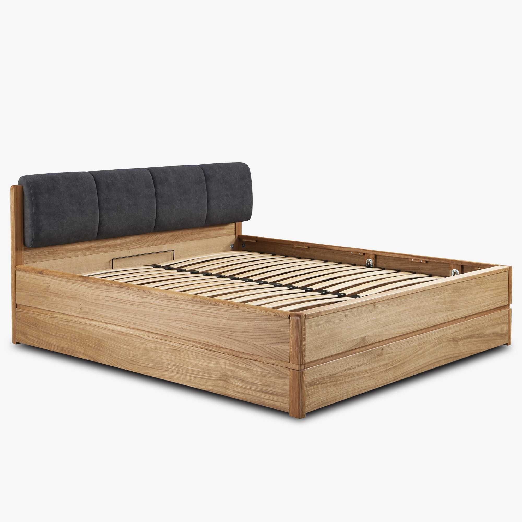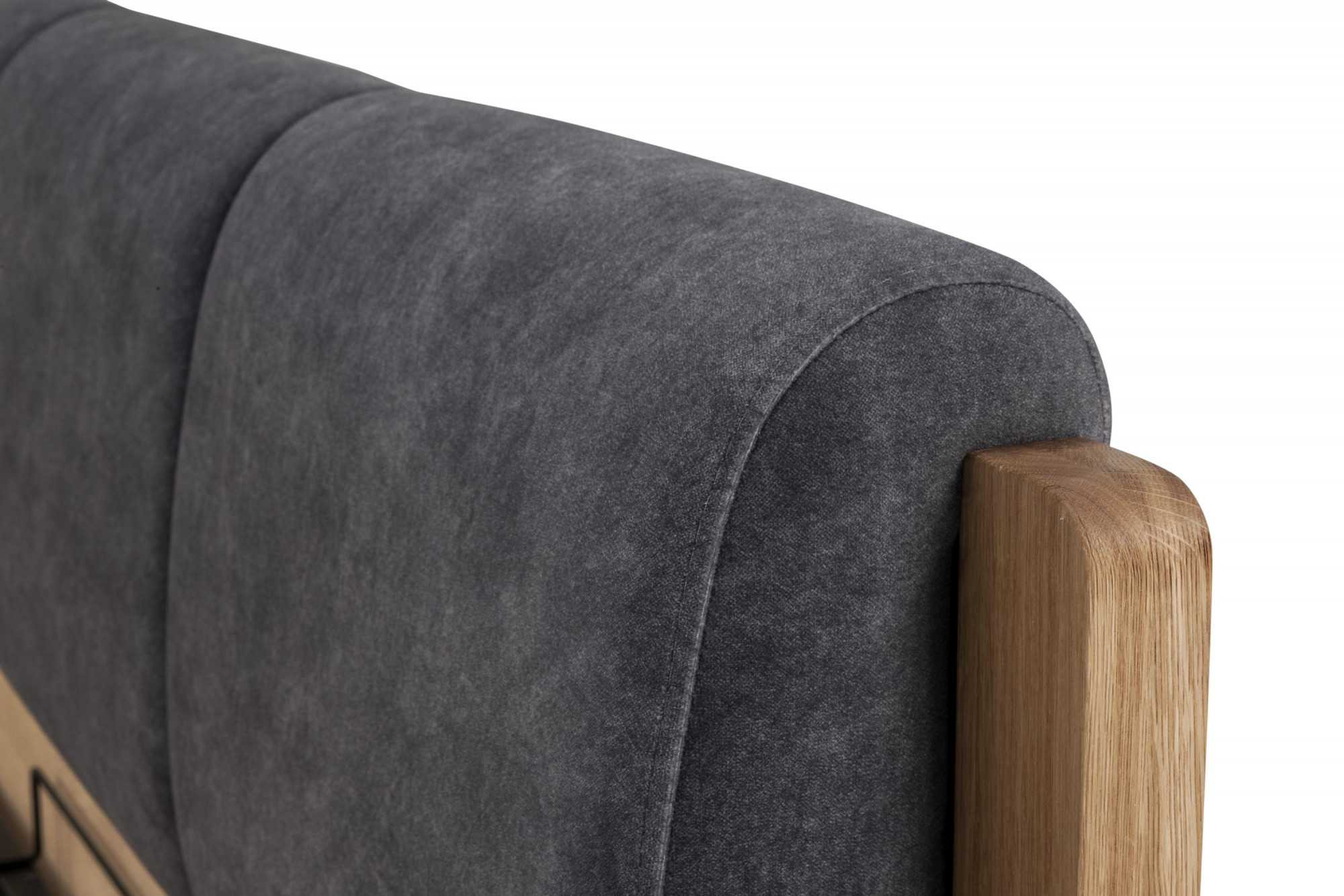 Dubová posteľ Helsinki 200 x 200 cm s úložným priestorom – dyha, kartáčovaný dub, látkové čelo D'oro