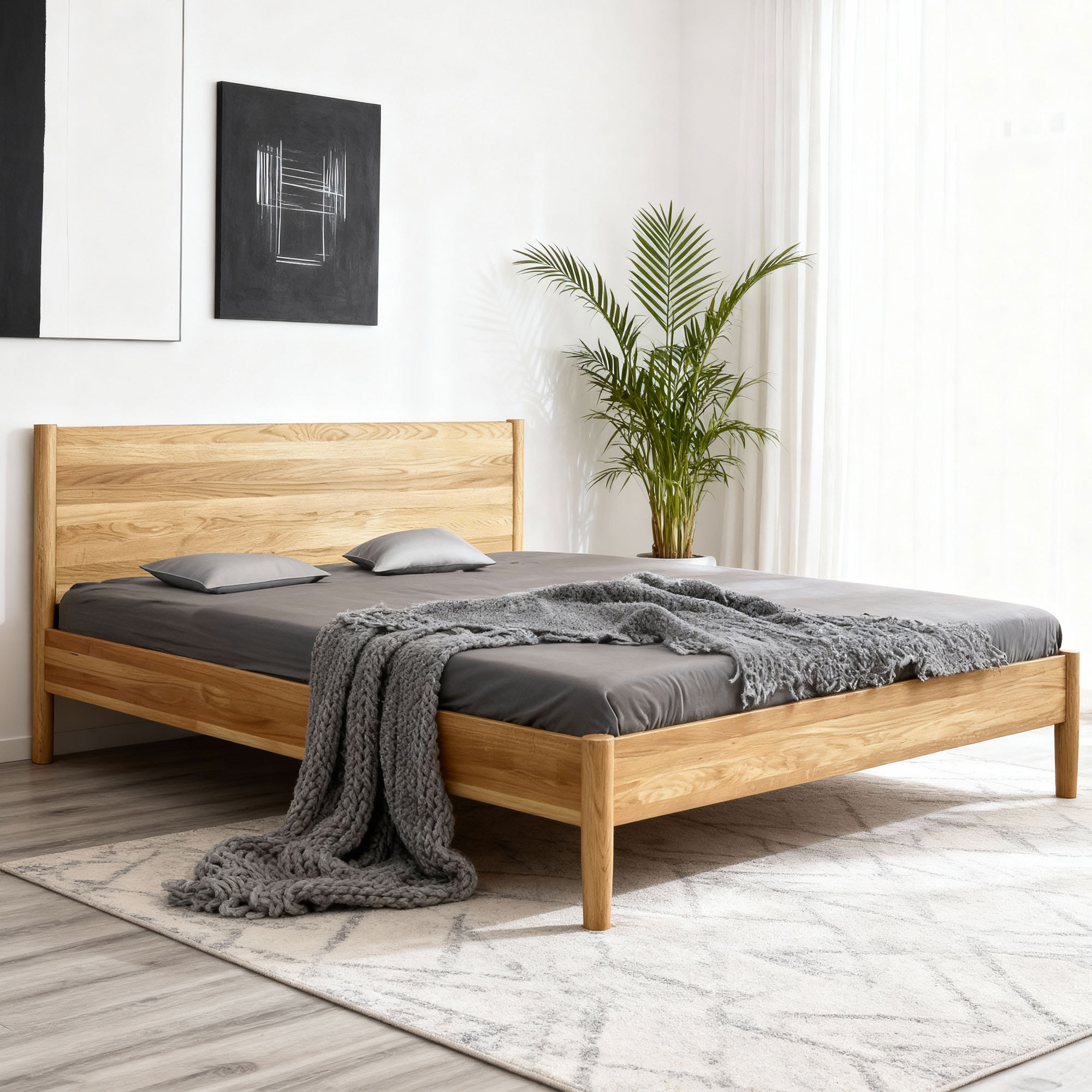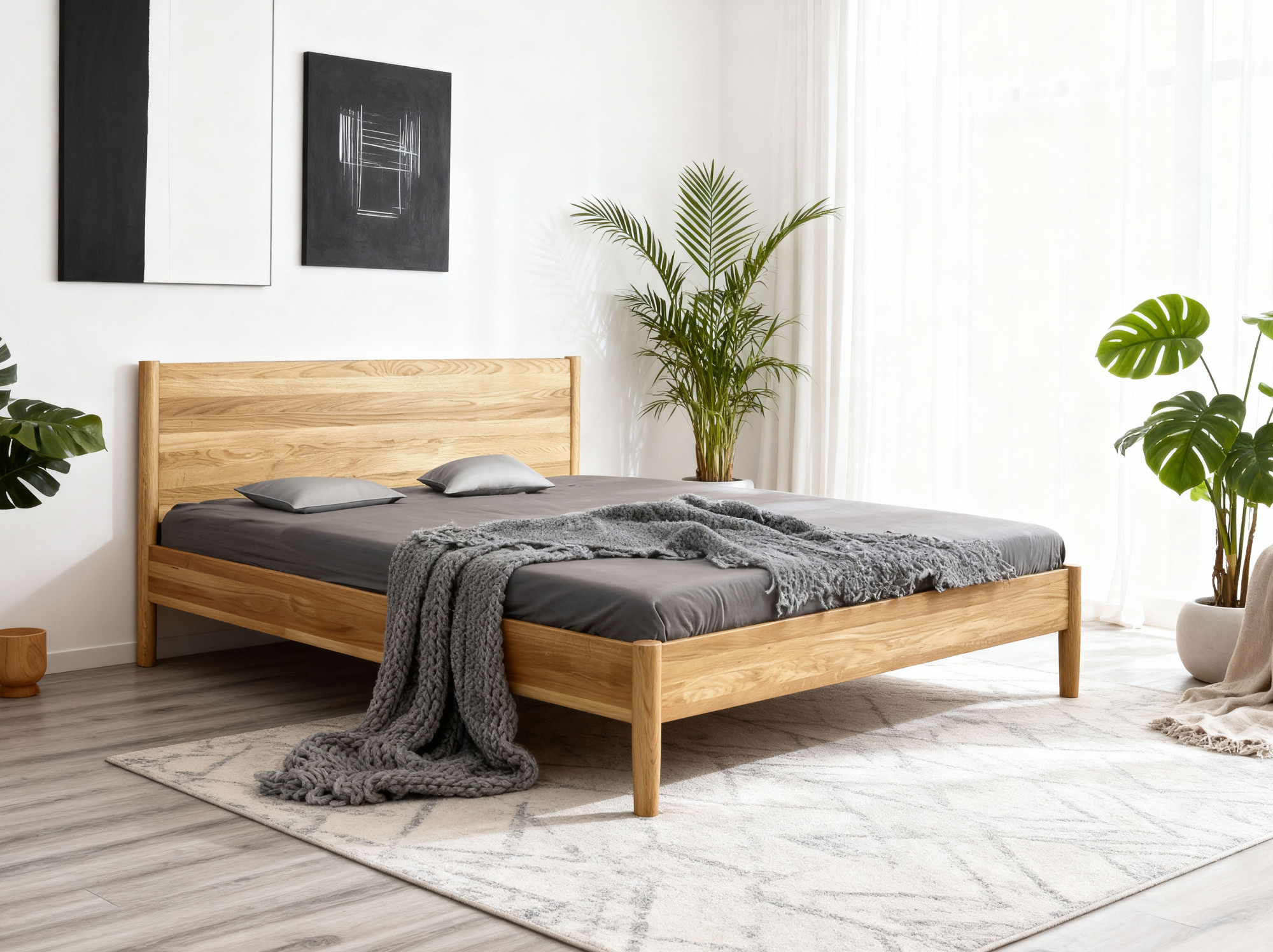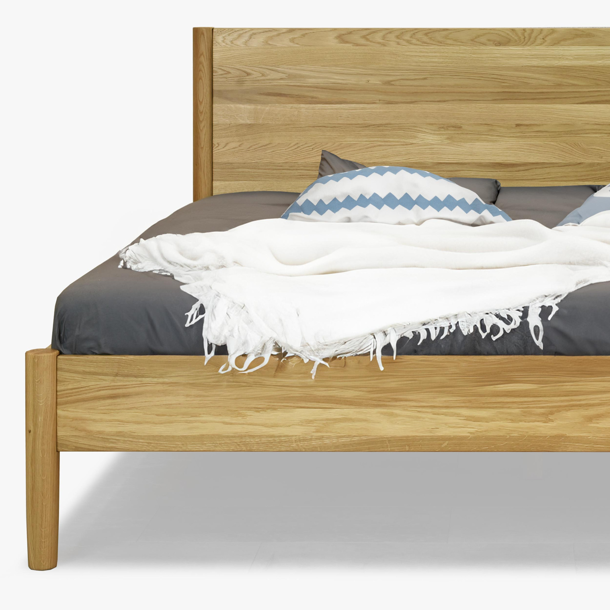 - Kvalitné dubové drevo: Zabezpečuje trvácnosť a pevnosť postele.