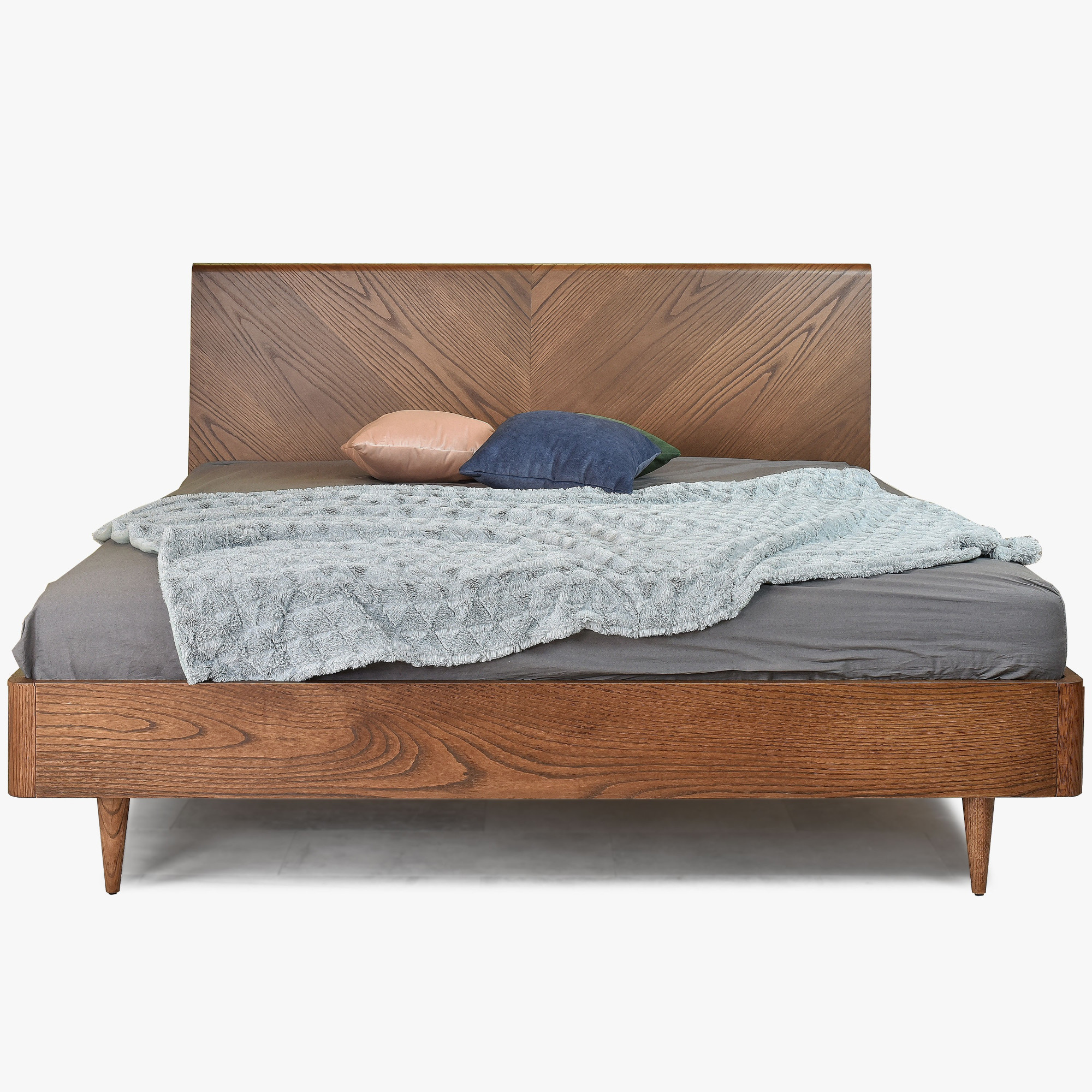 Posteľ Bordo je vyrobená z prémiovej prírodnej dubovej dyhy v farbe orecha, ktorá dodá vašej spálni teplý a elegantný vzhľad. Dubové drevo je známe svojou odolnosťou, stabilitou a dlhou životnosťou, takže budete môcť túto posteľ užívať po dlhé roky. Manželská posteľ skutočne zaujme na prvý pohľad vďaka jej originálnemu dizajnu zaoblených rohov pri nohách a nádhernému čelu pri hlave s fascinujúcim vzorom drevenej štruktúry. Zamilujete si tento štýlový kúsok nábytku, ktorý bude ozdobou vašej spálne.