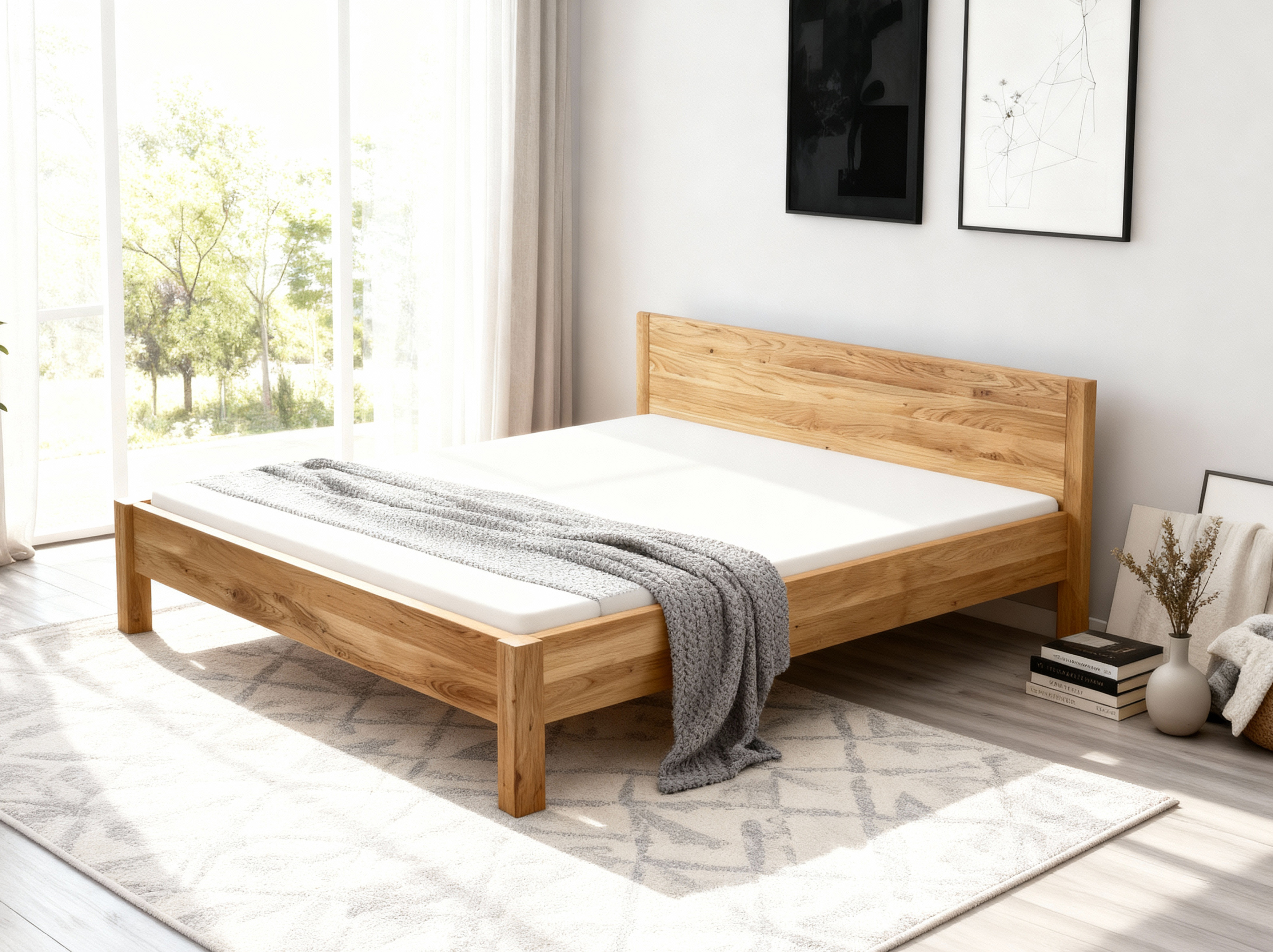 Posteľ má robustnú konštrukciu s bočnými rámami hrubými 4 cm a prednými nohami s rozmerom 7×7 cm, čo zabezpečuje vysokú stabilitu. Povrch je ošetrený prírodným olejom, ktorý zvýrazňuje krásu dreva a chráni ho pred poškodením. Posteľ je možné kombinovať s rôznym štýlom nábytku, od moderného až po rustikálny. K posteli si môžete vybrať ľubovoľný typ roštu podľa preferencií.