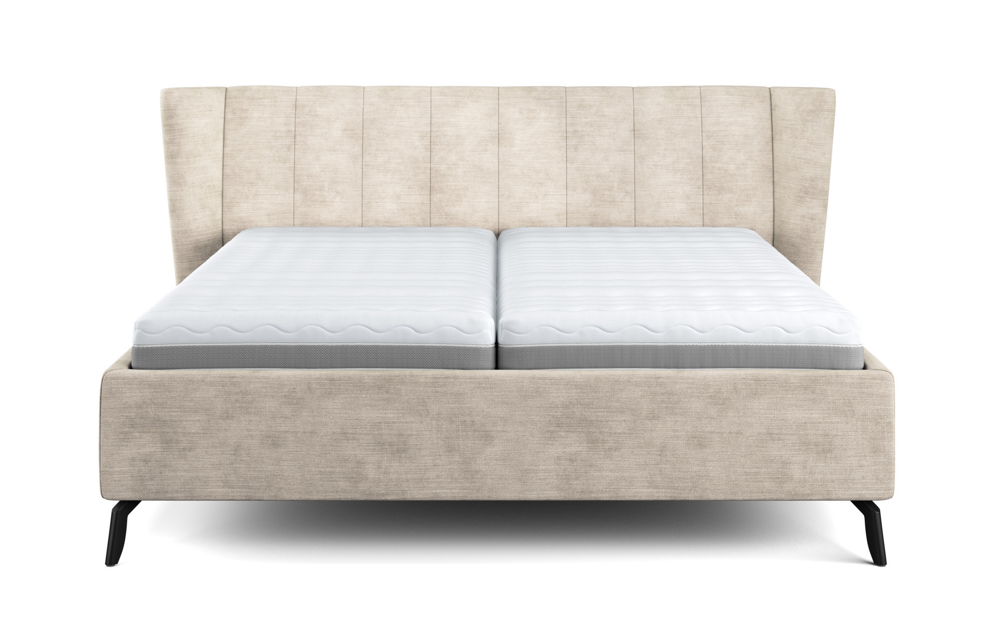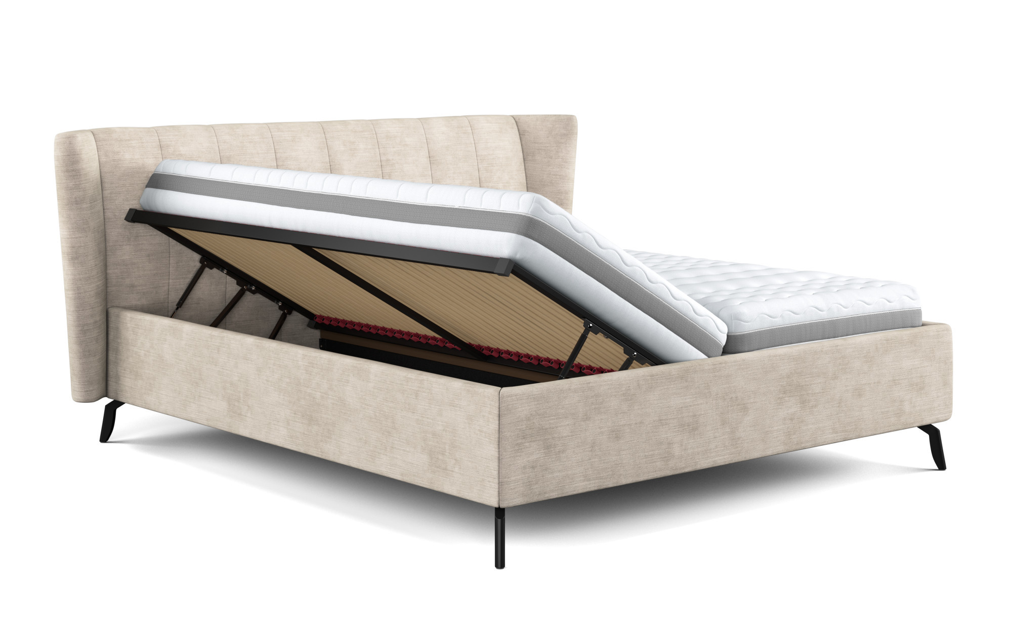 Moderná čalúnená posteľ s úložným priestorom piesková, 160 × 200 cm
