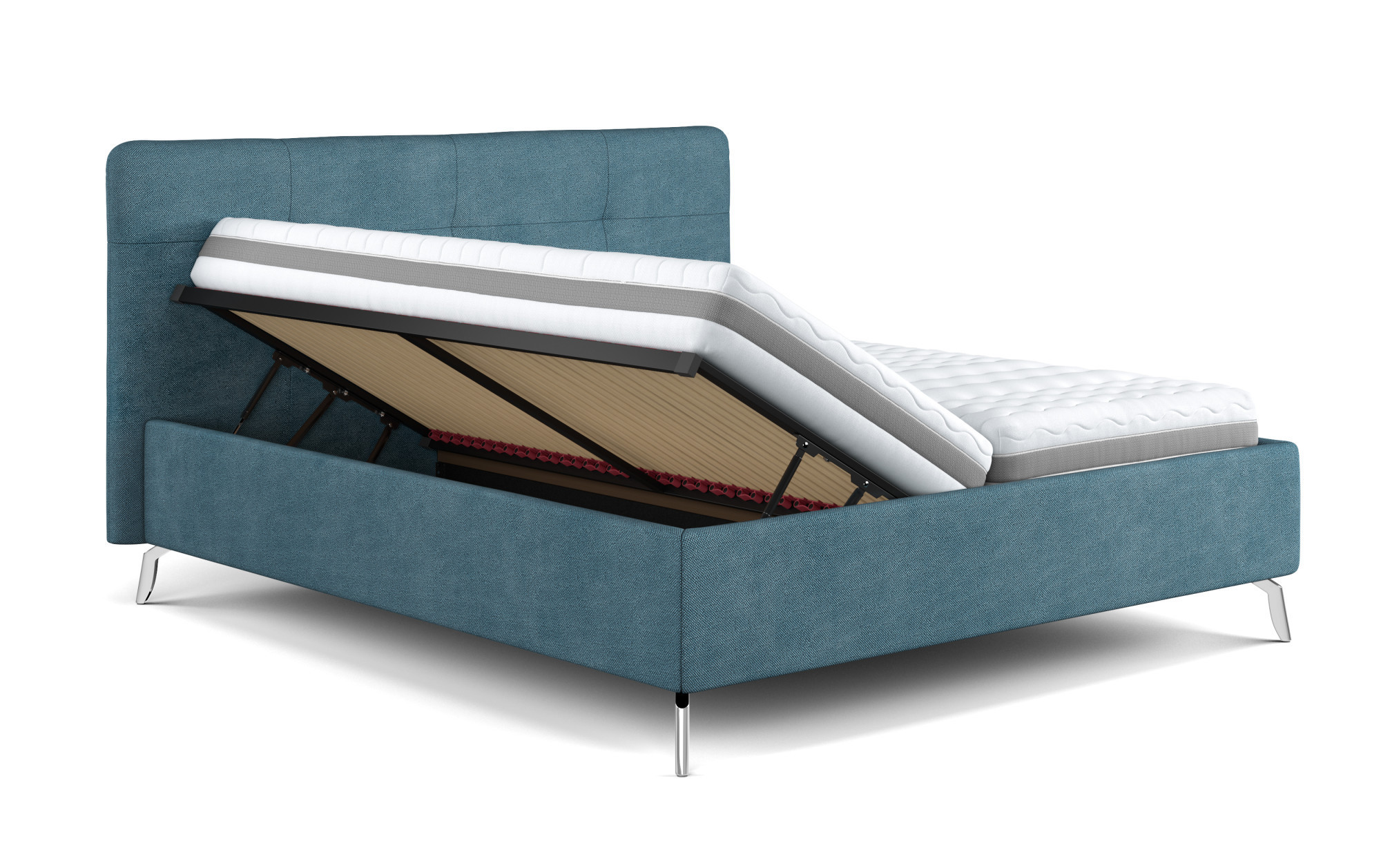 Čalúnená posteľ s úložným priestorom modrá, 180 x 200 cm