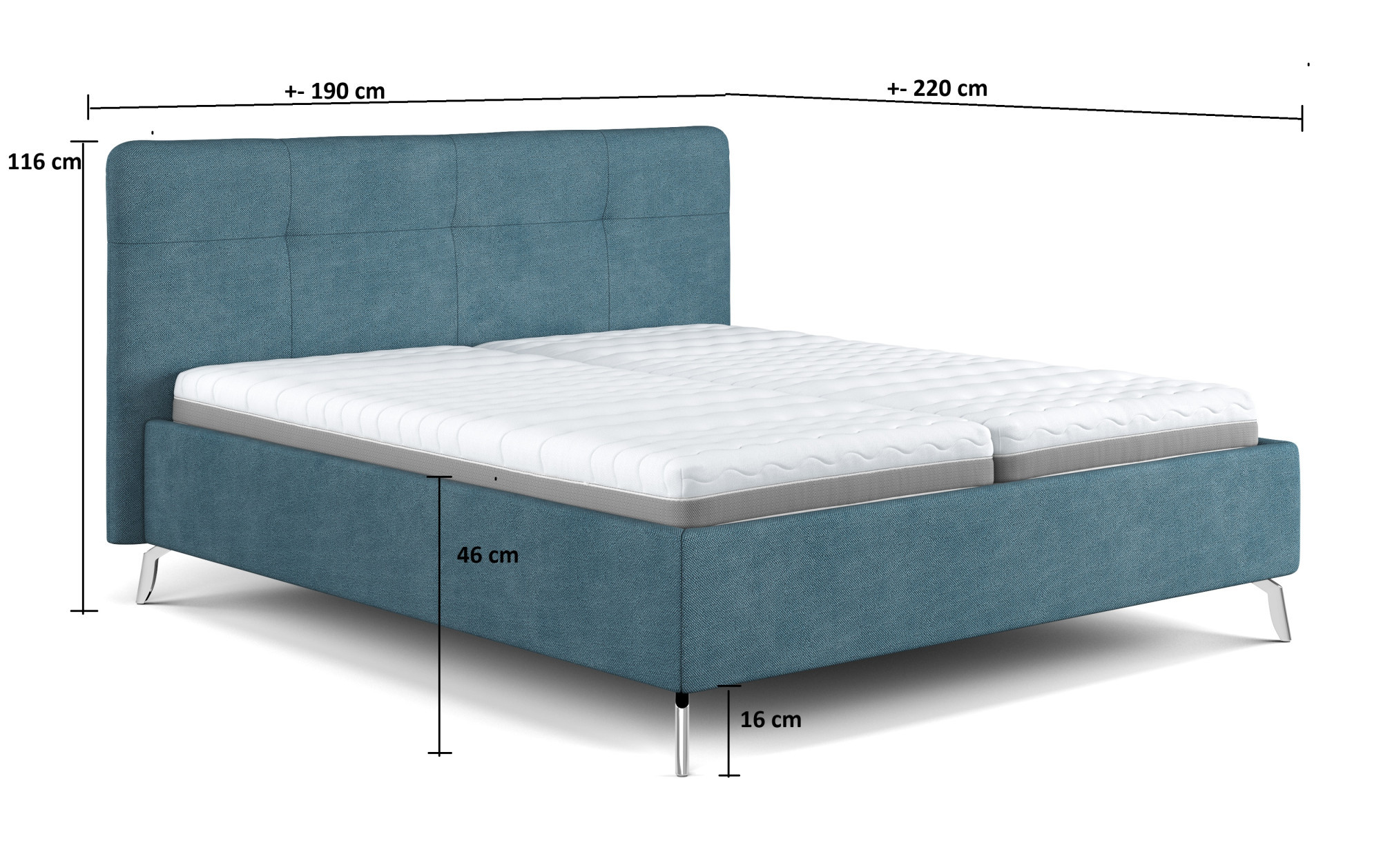 - Matrac, ktorý nie je súčasťou balenia, je dostupný v rozmere 180 x 200 cm alebo 2 x 90 x 200 cm. Matrac je zapustený do postele 11,5 cm. Konštrukcia už obsahuje kvalitný lamelový rošt. Pri použití matraca vysokej 20 cm je výška ležania približne 54,5 cm.