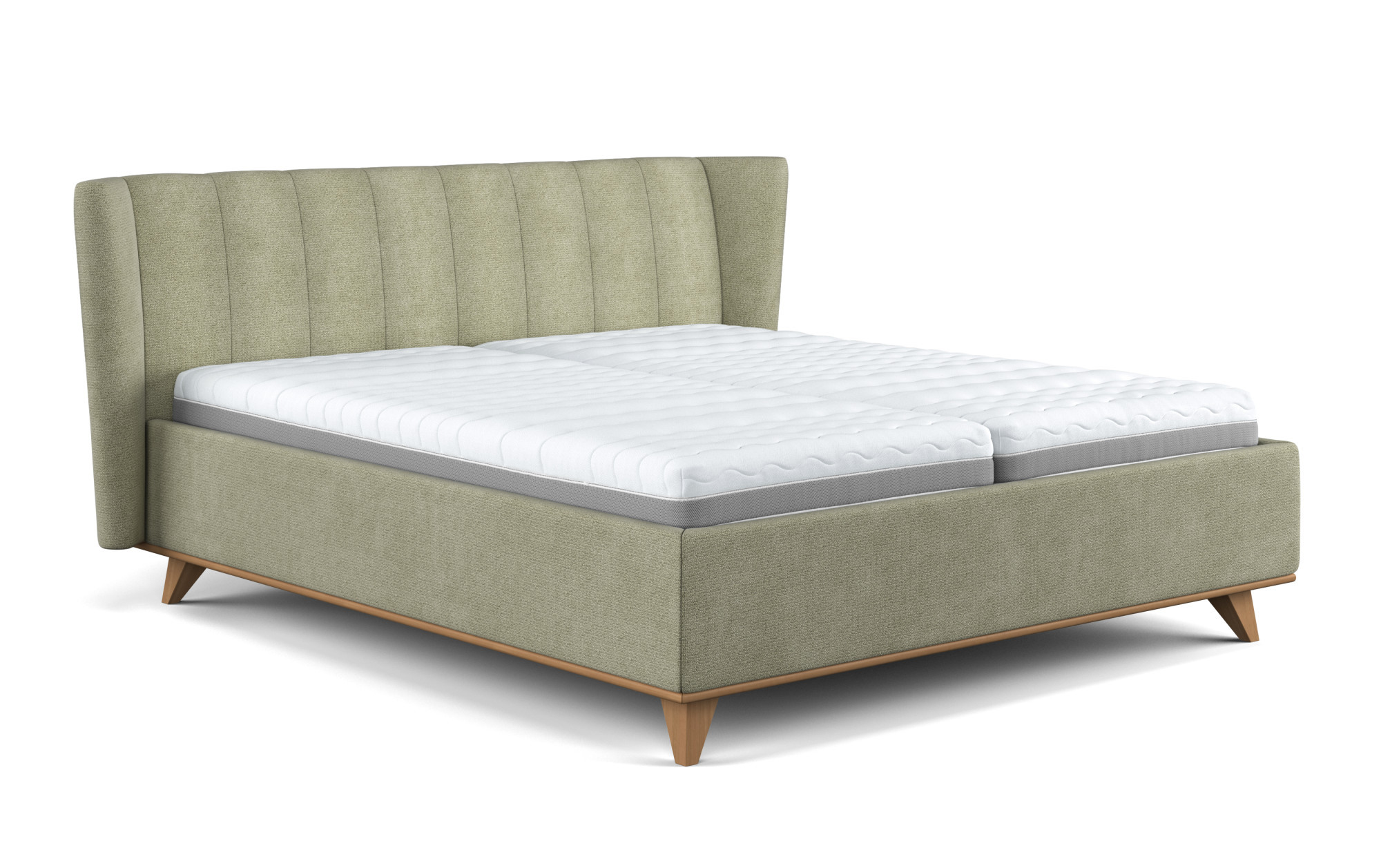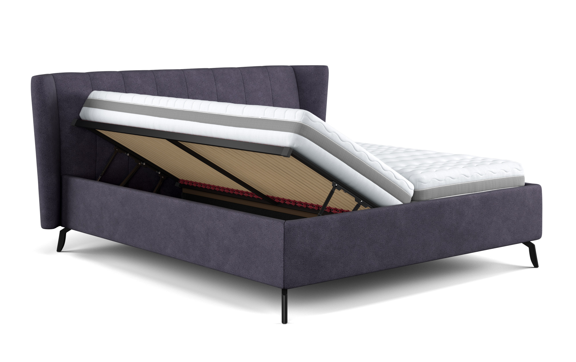 Súčasťou postele je pevná konštrukcia z masívneho dreva, 28-lamelový rošt z tvrdého dreva so stredovým pásom a praktický odvetrávaný úložný priestor. Za príplatok je možnosť výberu typov nožičiek (kovové alebo dubové masívne).