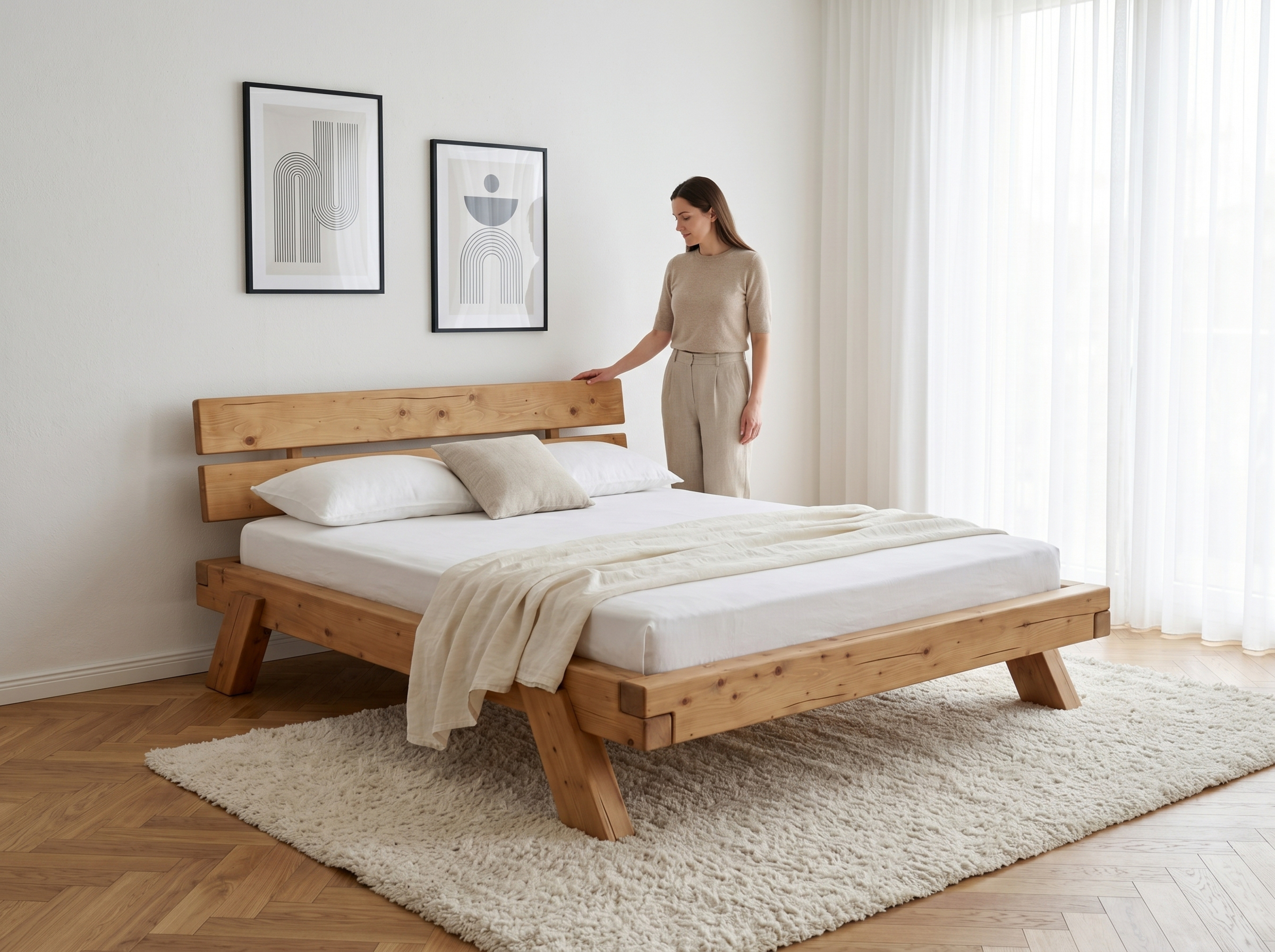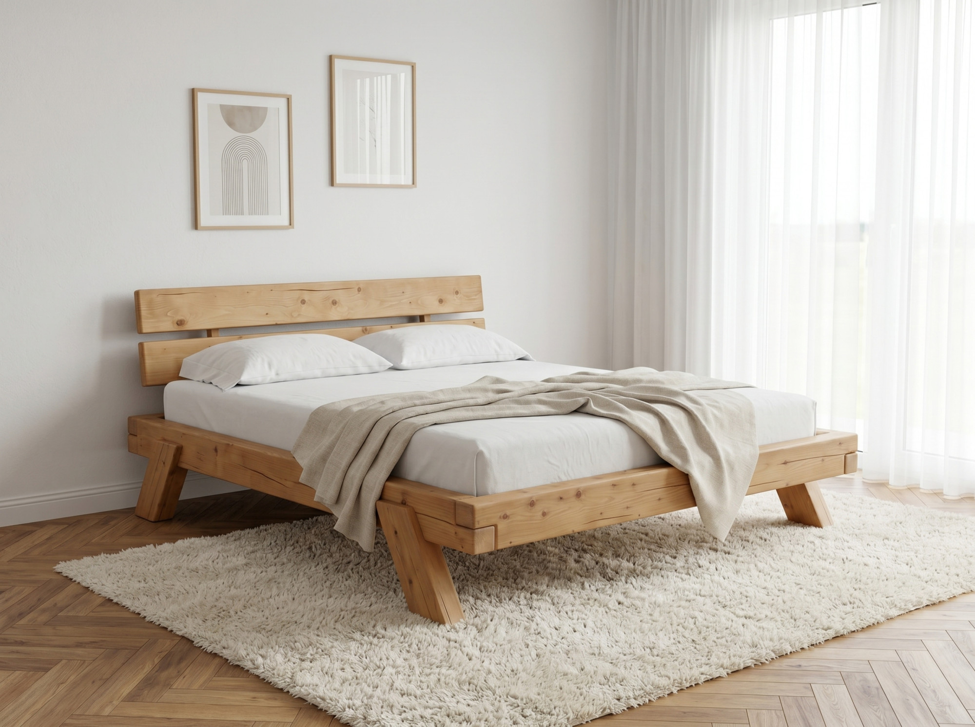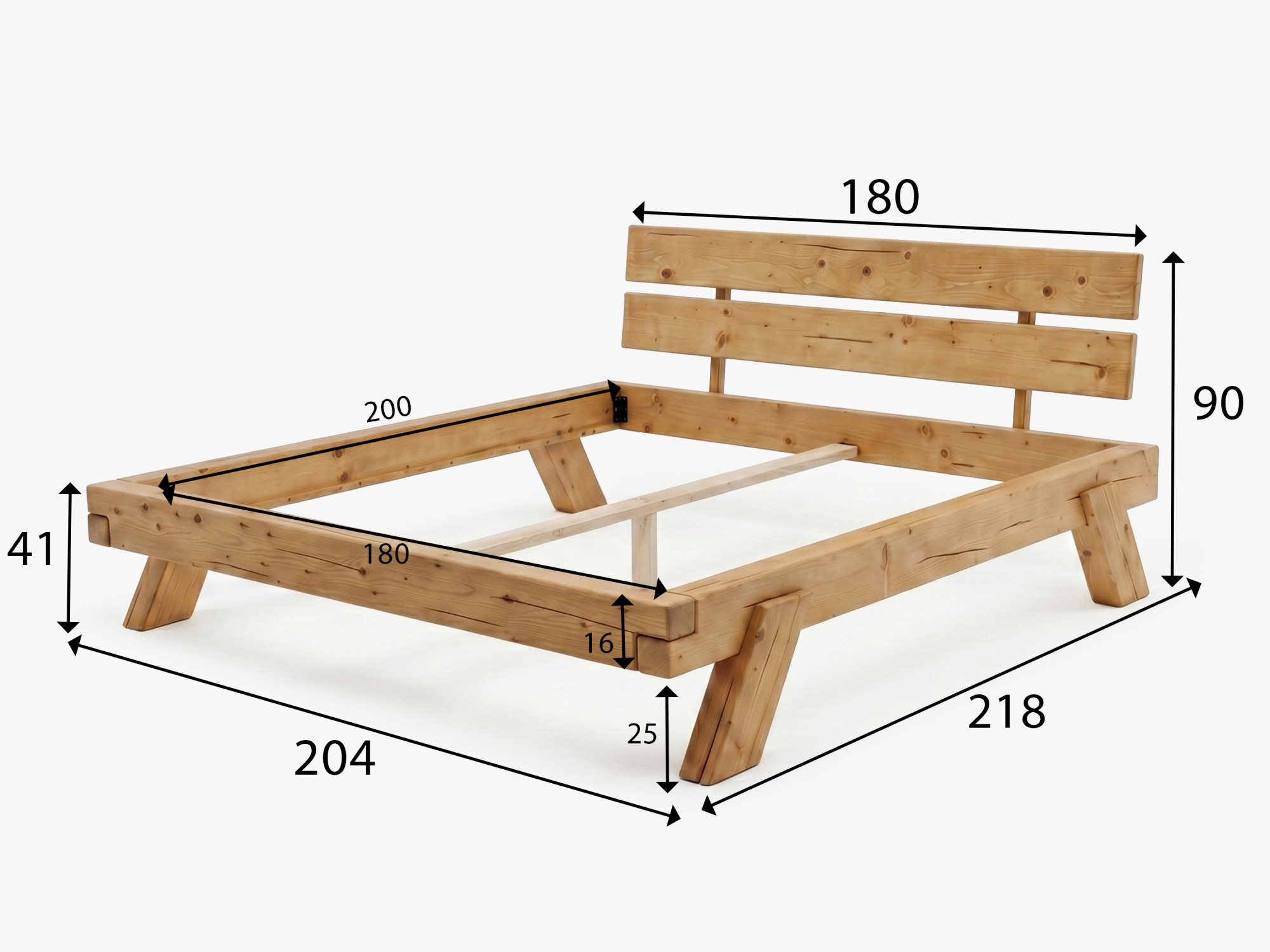 Masívna smreková posteľ 180 × 200 cm – robustná drevená posteľ