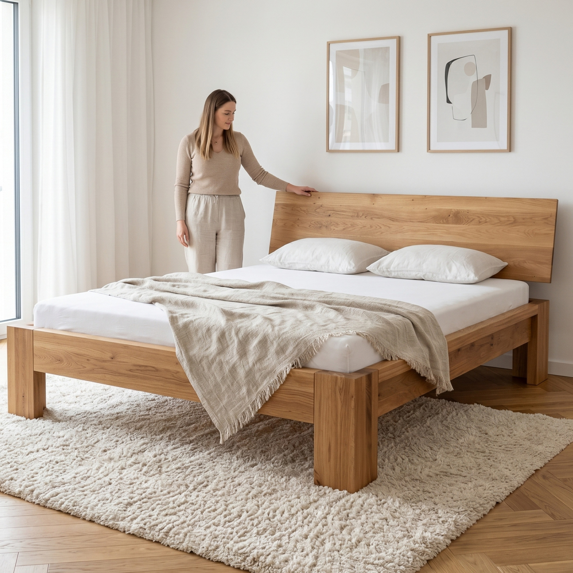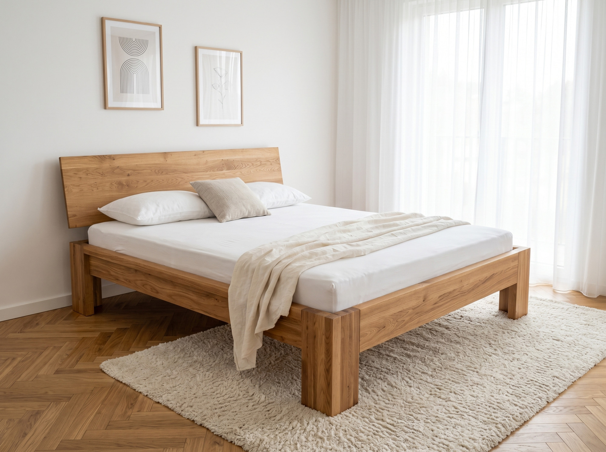 * Na obrázku masívna dubová posteľ Queen 180 x 200 cm