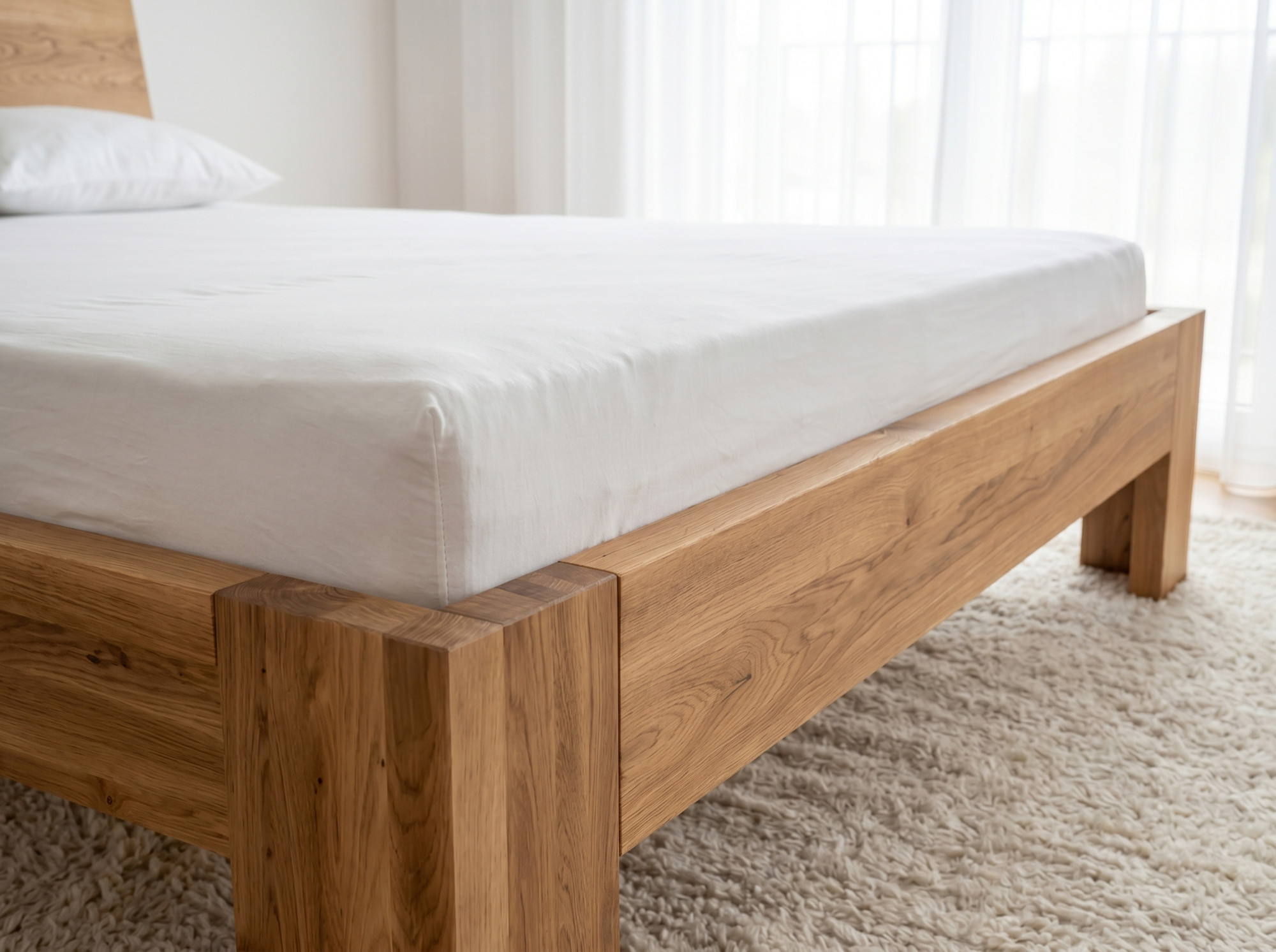 Posteľ je vyrobená z celomasívneho dubového dreva s FSC certifikátom – rám, nohy aj čelo sú plne z masívu. - Je súčasťou dodávky rošt a matrac?
