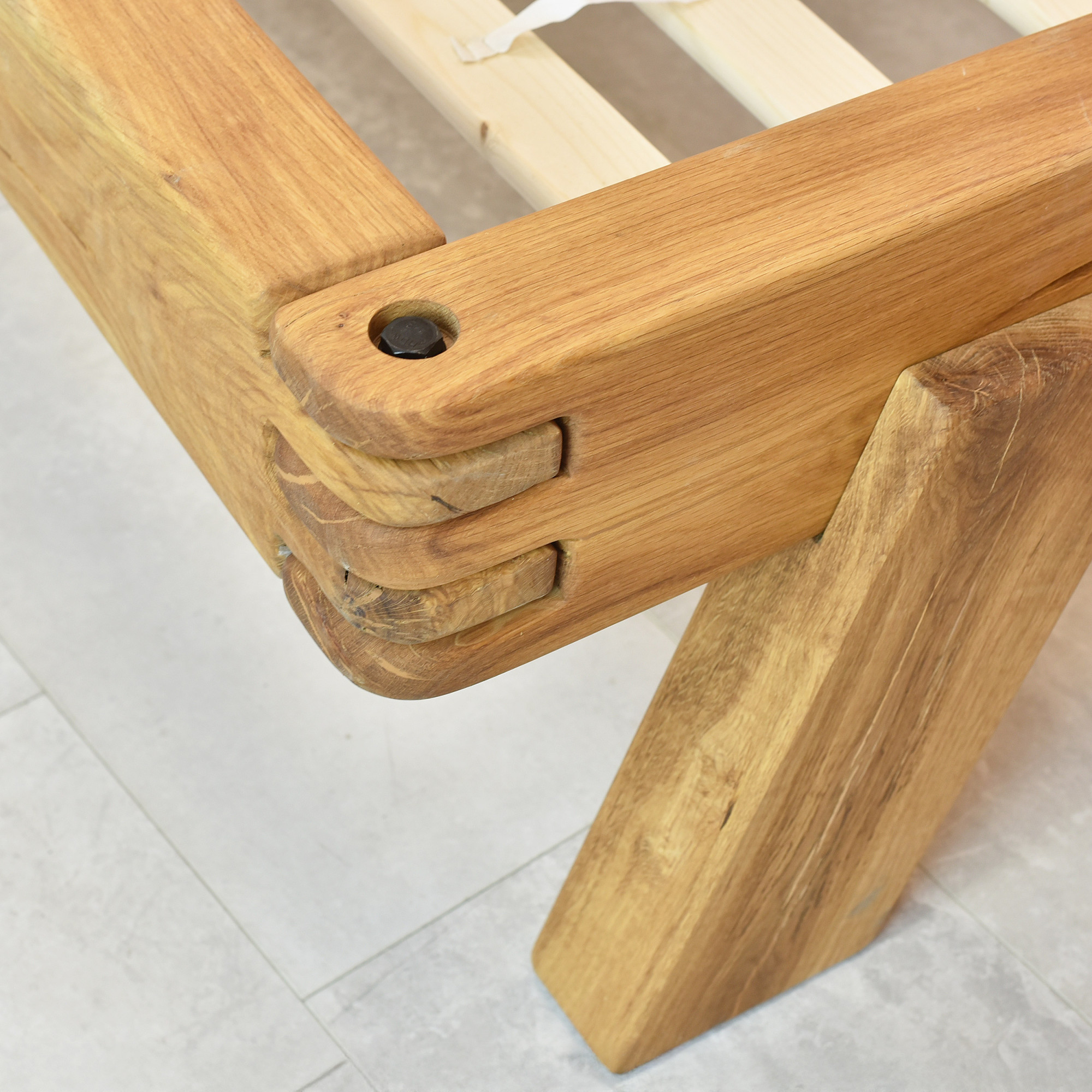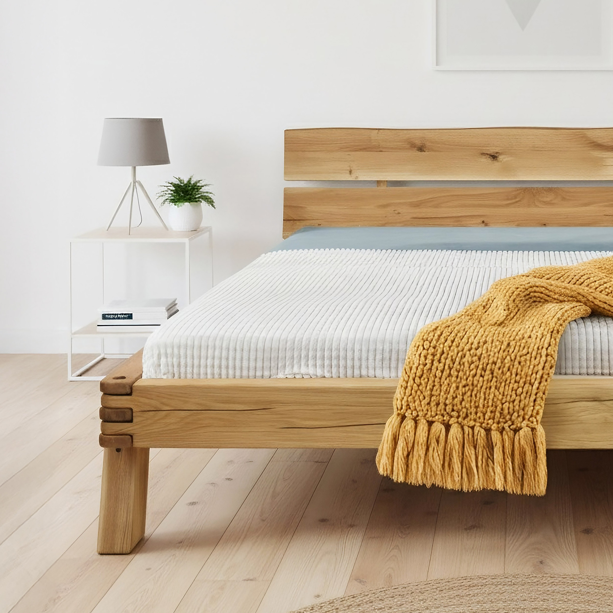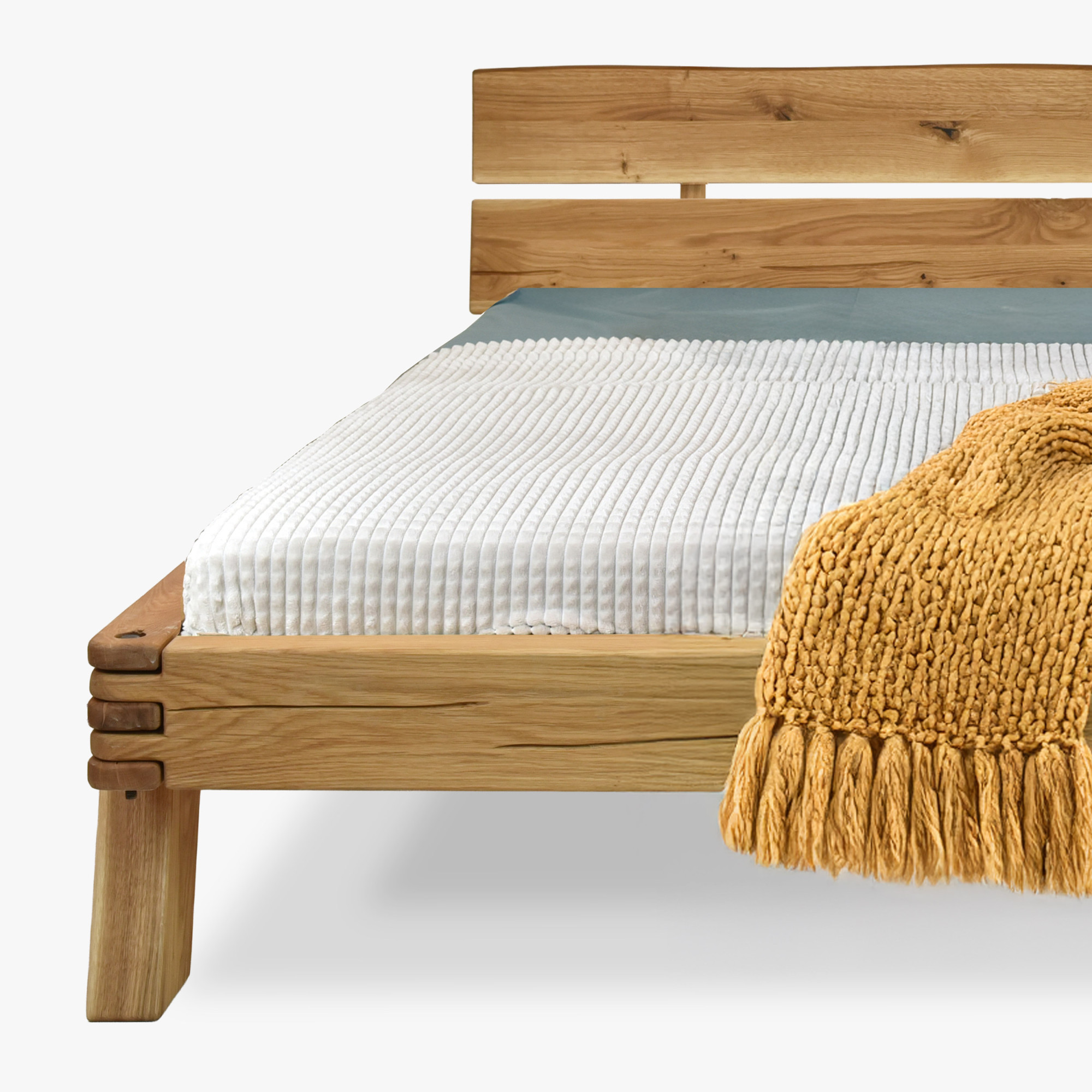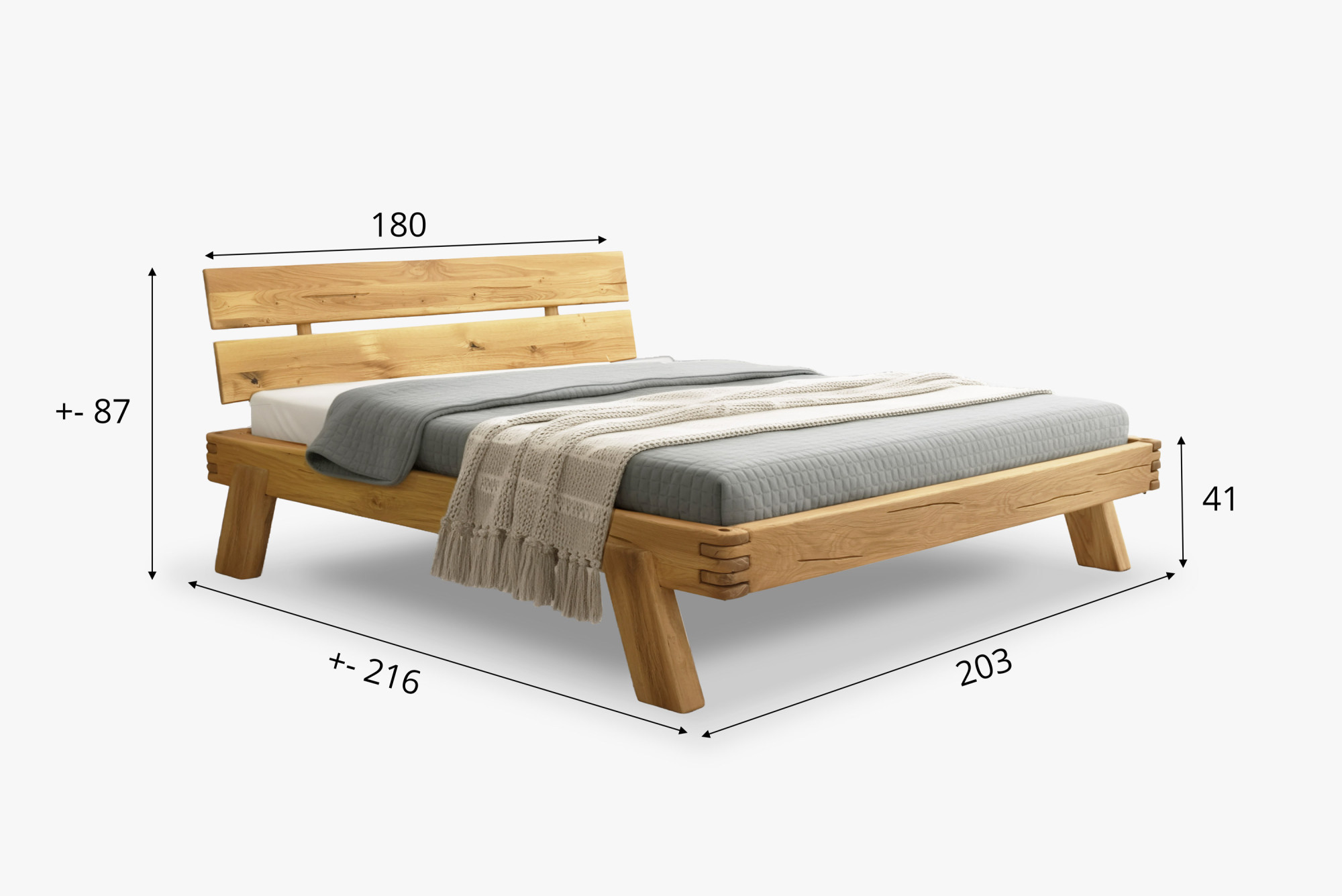 Veľkým benefitom sú rúčne zaoblené rohy, ktoré podčiarkujú jedinečný charakter každého kusu. Bez roštu, konštrukcia umožňuje vloženie aj akéhokoľvek iného typu roštu. Samozrejmosťou je stredová doska s podporujúcou nohou pre vyššiu stabilitu. Nosnosť postele je až 230 kg, odporúčaná hmotnosť jednej osoby je maximálne 120 kg. Dubové drevo pochádza z certifikovaných zdrojov s FSC certifikátom, takže si môžete byť istí, že volíte udržateľný a ekologický výrobok. Posteľ sa dodáva v demonte a jej montáž je veľmi jednoduchá, takže počas krátkej chvíle získate dominantný prvok vašej spálne.