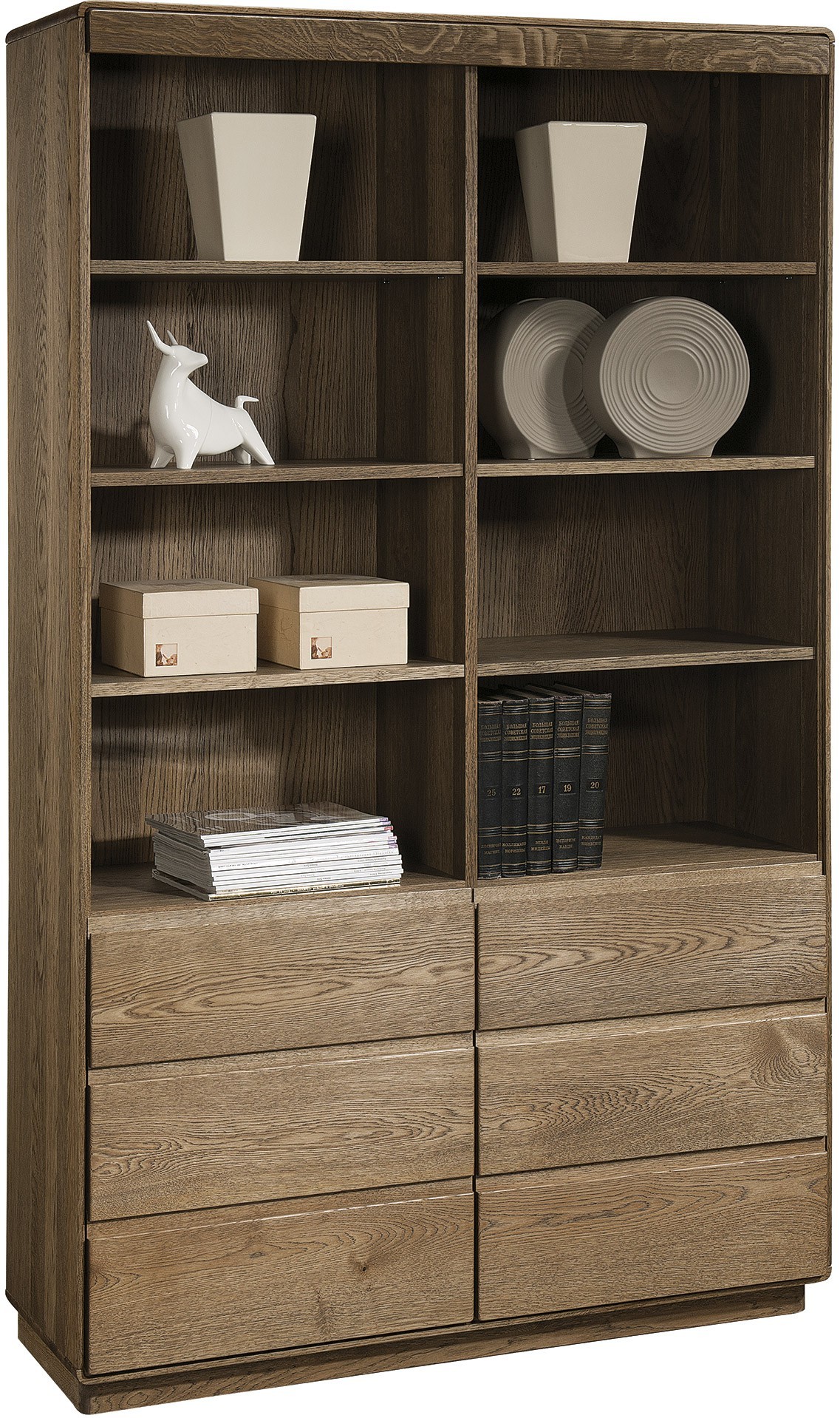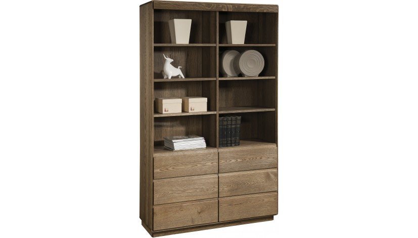 Regál s policami a skrinkou si vás okamžite získa pre precízne spracovanie a výrobný materiál, ktorým je masív divokého dubu. Ten každému kusu nábytku z kolekcie Helsinki požičiava nezameniteľný pôvab. Vďaka metóde kefovania masívne drevo získava špecifickú kresbu s vystúpenou textúrou, ktorú pocítite pri každom dotyku. Charakteristická vôňa dubového nábytku, pripomínajúca prostredie panenského dubového lesa, vám príjemne prevonia celú miestnosť!