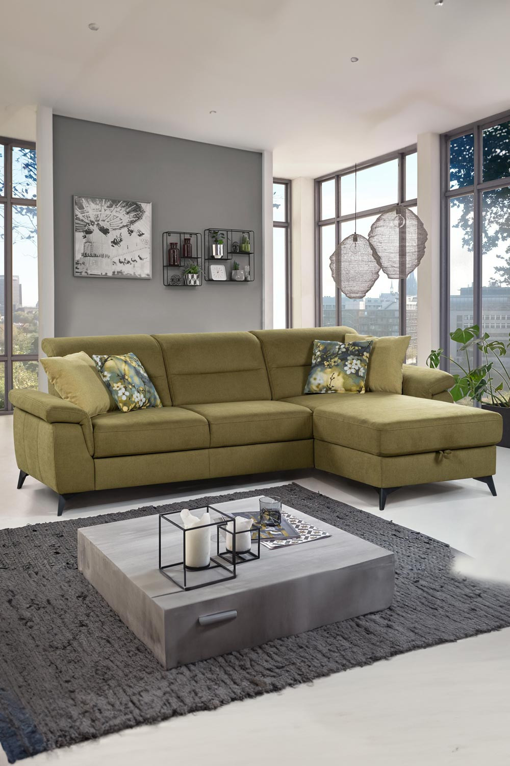 Rohová sedačka do bytu s funkciami, roh vpravo
