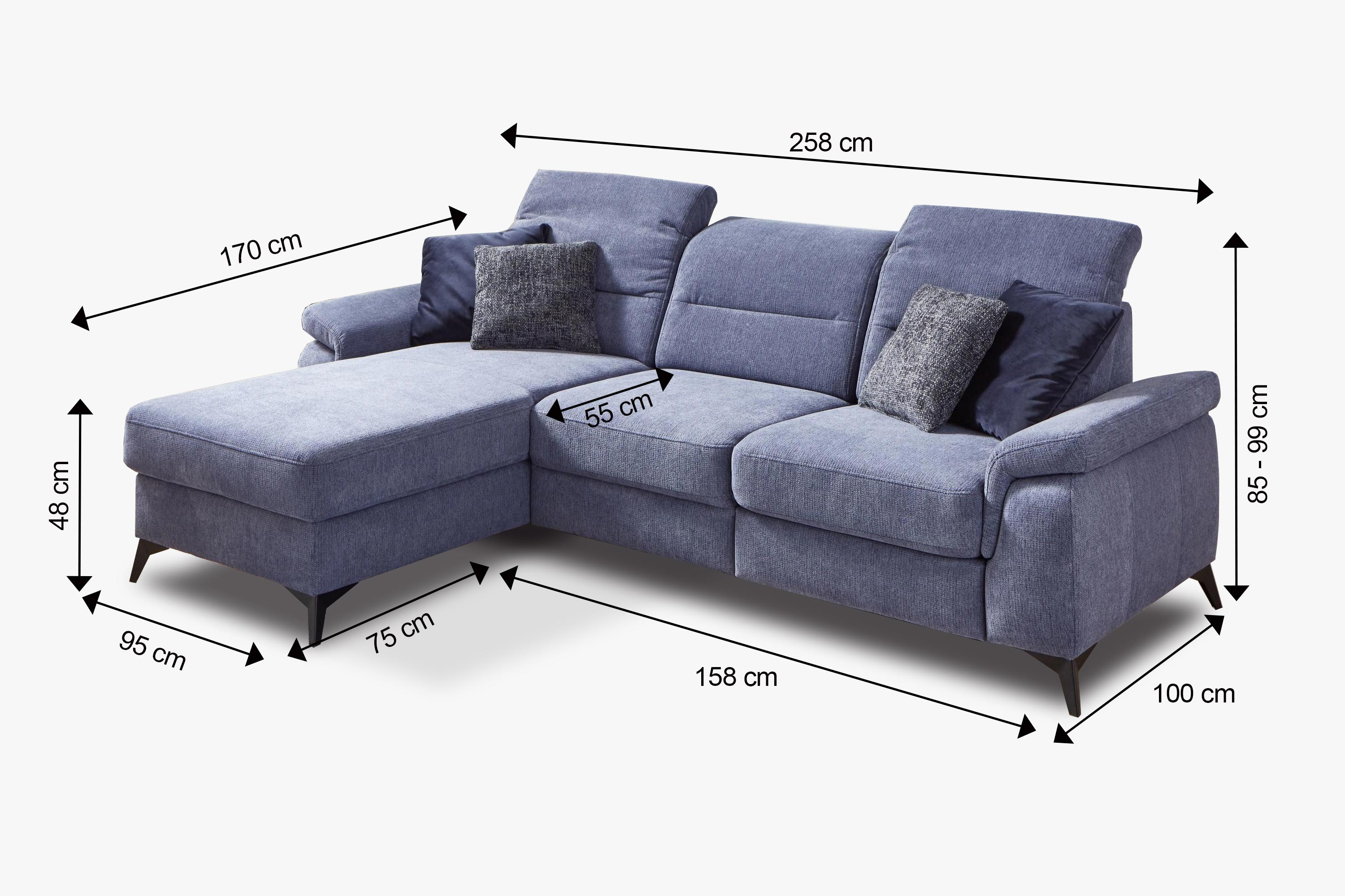 Sedačka s funkciou relaxu roh vľavo v škandinávskom štýle