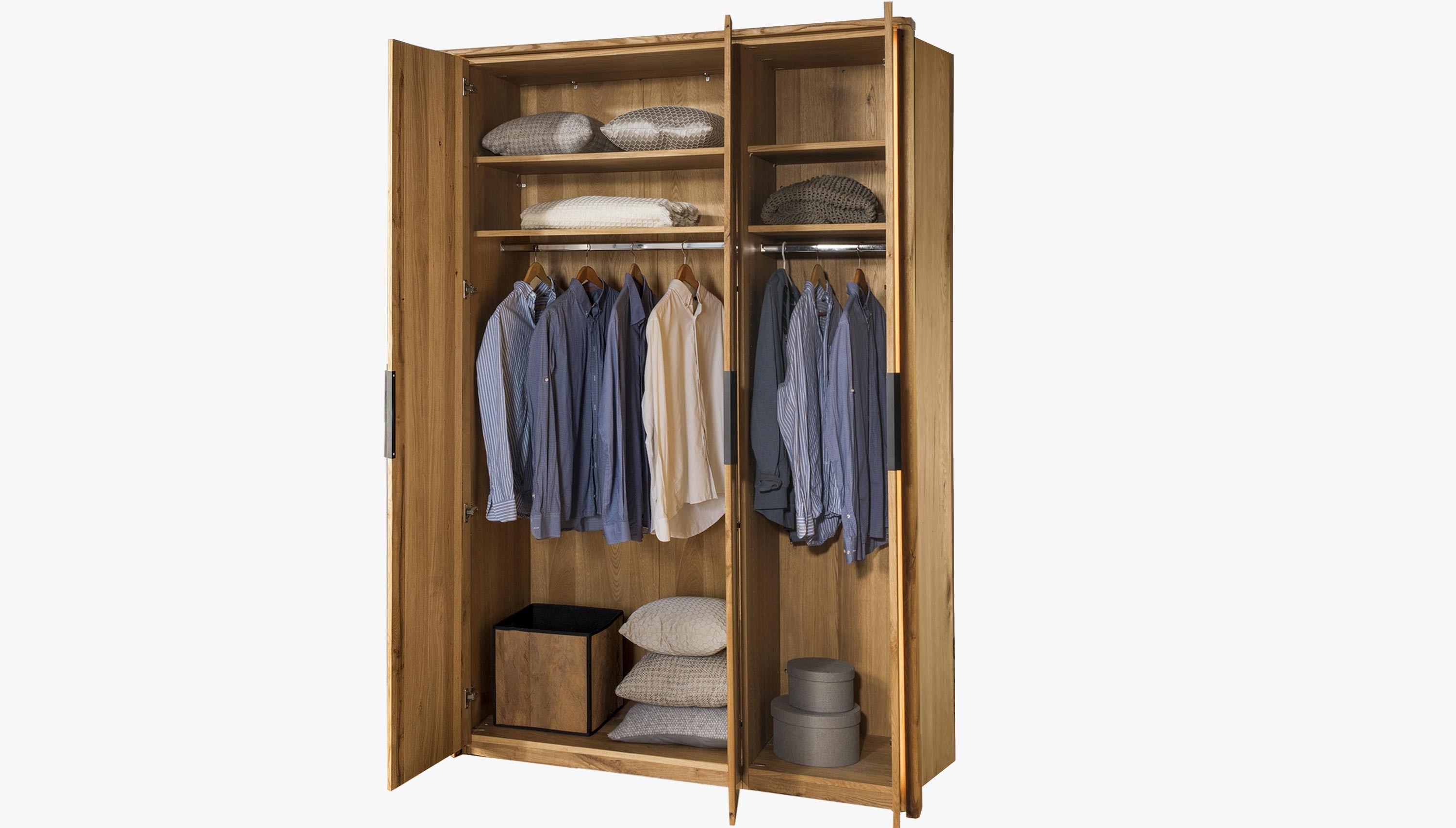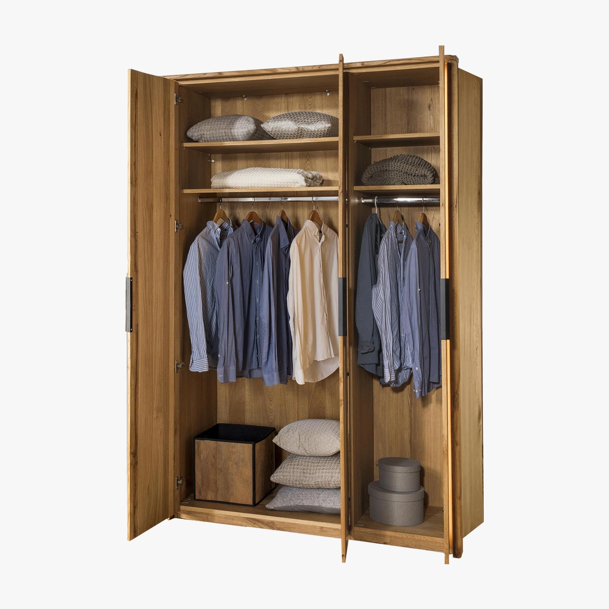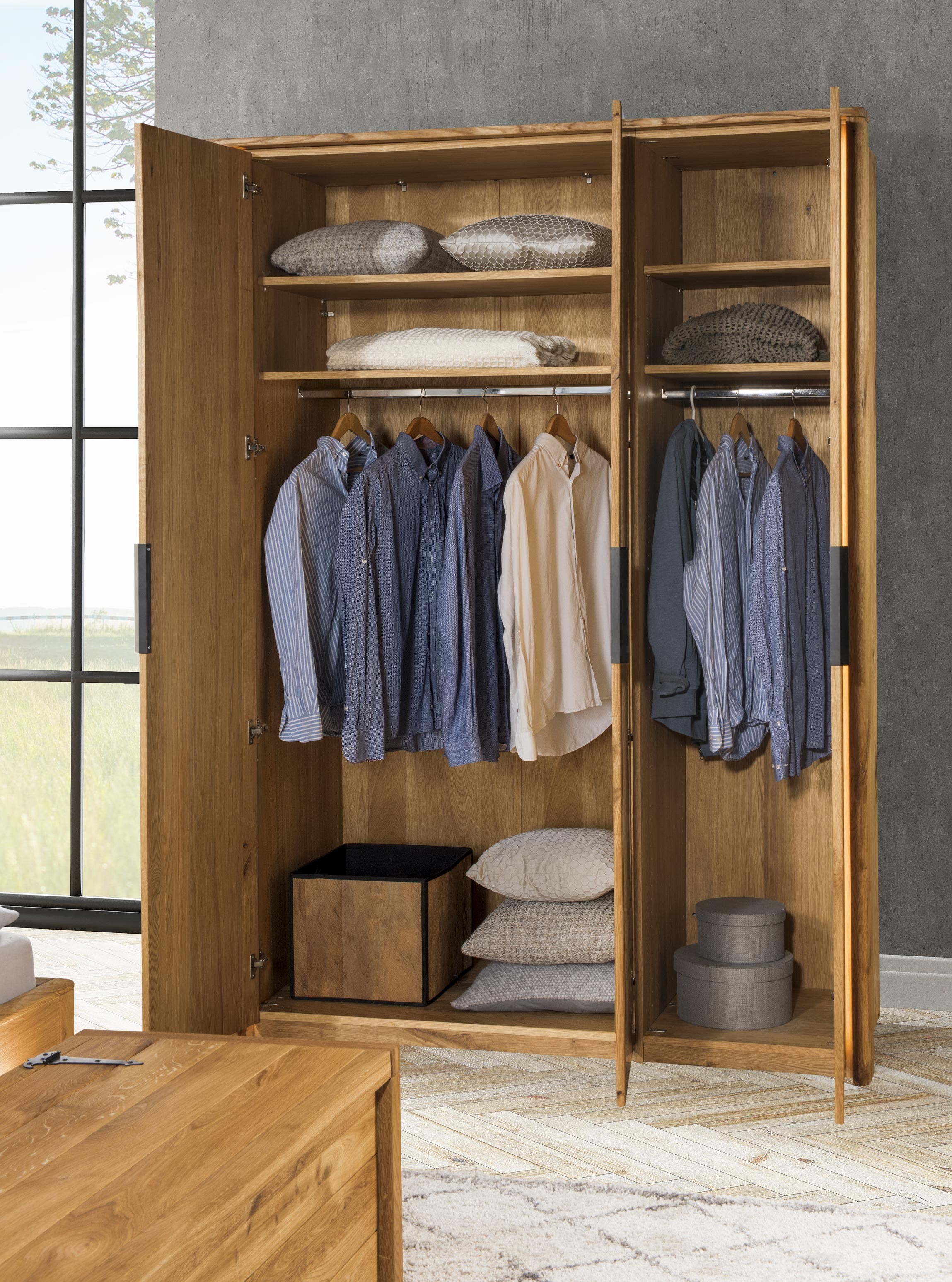 Veľká triedverová skriňa masív dub, Texas 13 skriňa z masívu dub kompozit do spálne z kolekcie nábytku Texas. Skriňa s nádherným dizajnom prírodného nábytku. Pre výrobu sa použilo exkluzívne vyberané dubové drevo, aby nábytok pôsobil autenticky a naturálne. Skriňa sa dodáva v demonte s podrobným návodom na montáž, podmienkou pre kompletnú montáž je uchytenie skrine priamo o stenu. Drevo je v farbe prírodný olej, je teda možné kombinovať aj s iným dubovým nábytkom.
