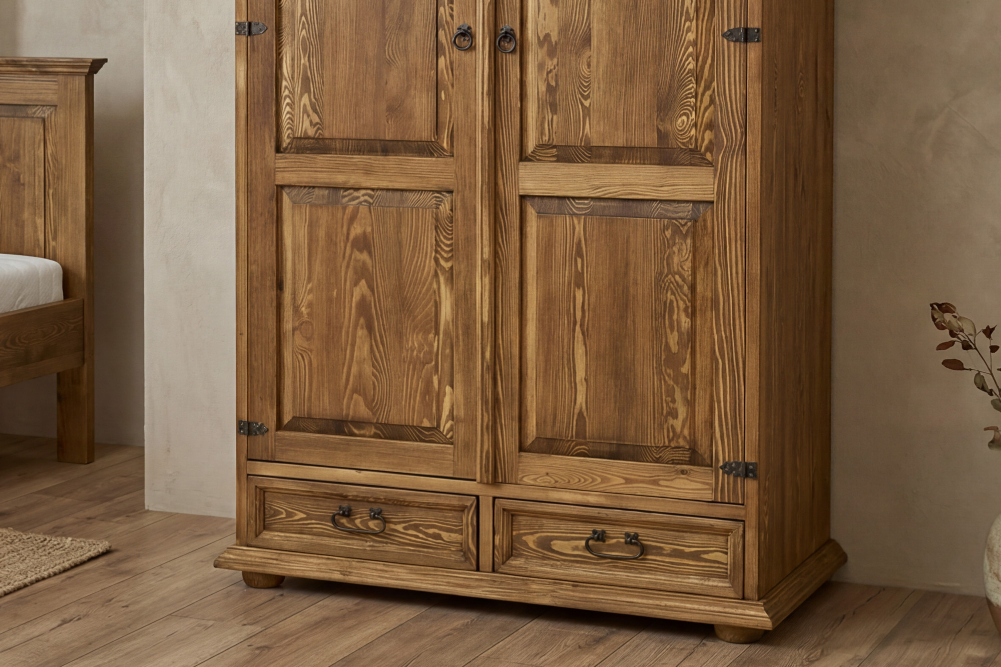 Táto šatníková skriňa z masívu borovice zaujme nielen svojim vzhľadom, ale aj dlhou životnosťou a pevným prevedením. Vďaka kvalitnému materiálu a tradičnému spracovaniu je vhodná do spálne, vidieckeho domu, chalupy aj štýlovo zariadeného interiéru. Je ideálna pre zákazníkov, ktorí hľadajú poctivý drevený nábytok s autentickým vzhľadom a praktickým využitím.