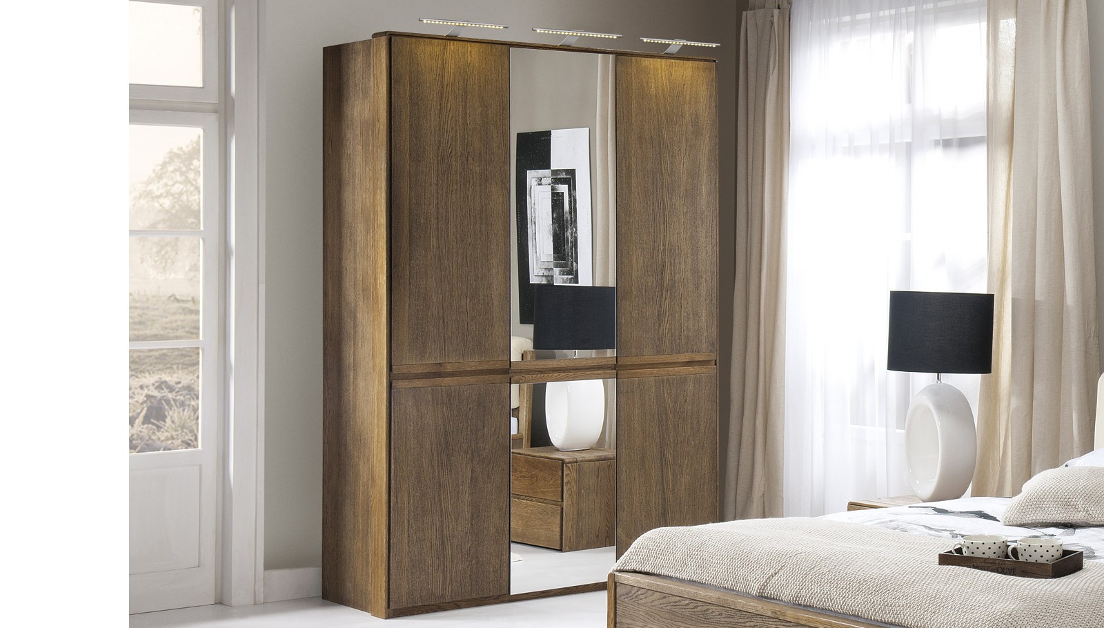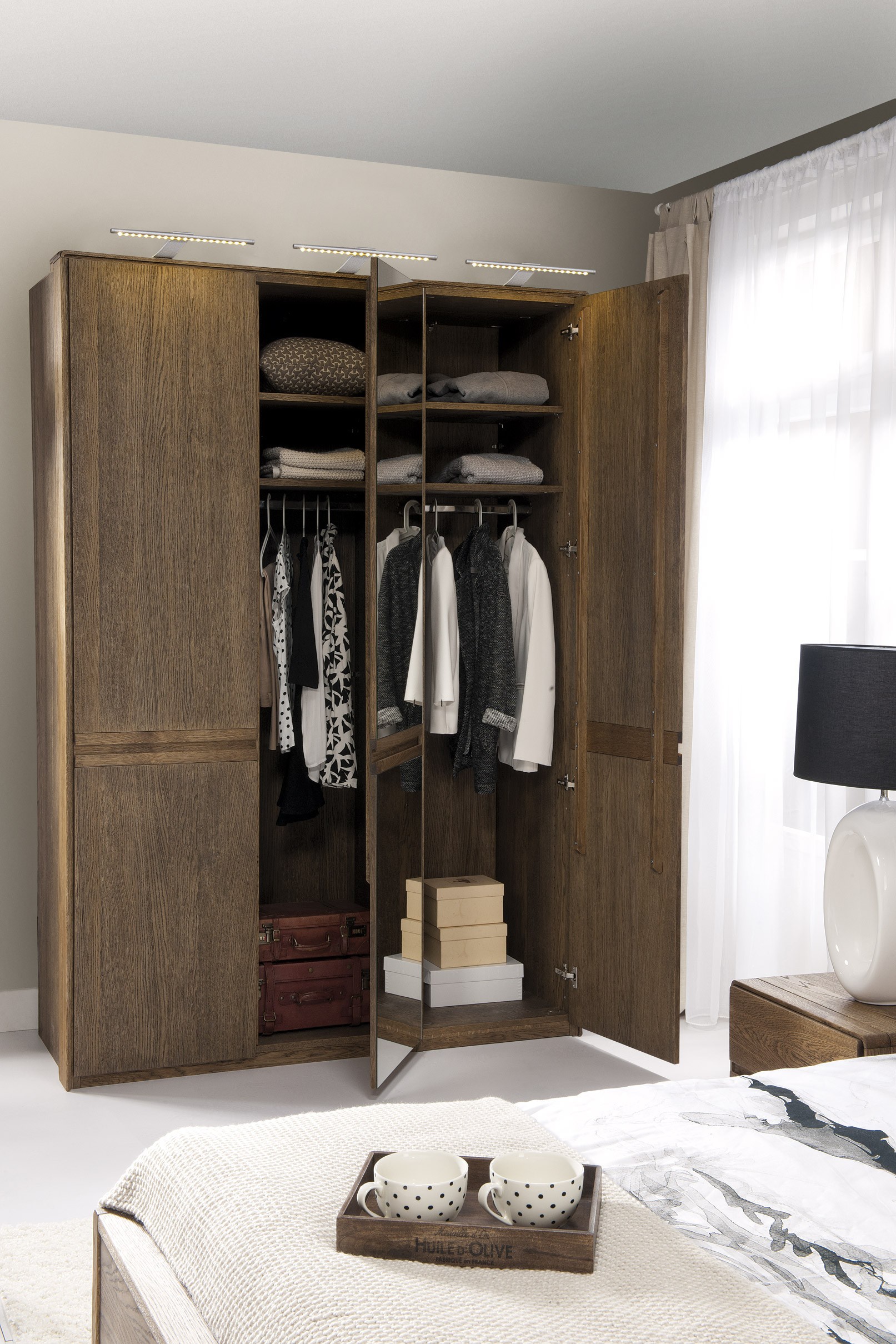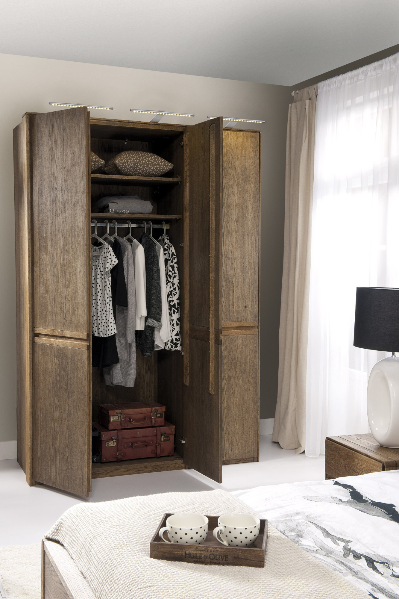 Šatníková skriňa nájde svoje miesto ako v spálni, tak v obývačke či predsieni. Jej vnútorný priestor je rozdelený šatníkovou tyčou a dve vložené police v hornej časti. Vnútorné členeninie skrine teda umožňuje ako zavesenie ramienok, tak uloženie poskladaného oblečenia. Šatníková skriňa je vyrobená z prírodnej drevenej dubovej dyhy. K dispozícii je buď v svetlejšej prírodnej ekologickej verzii dub olej, alebo vo výnimočnej povrchovej úprave dub pálený.