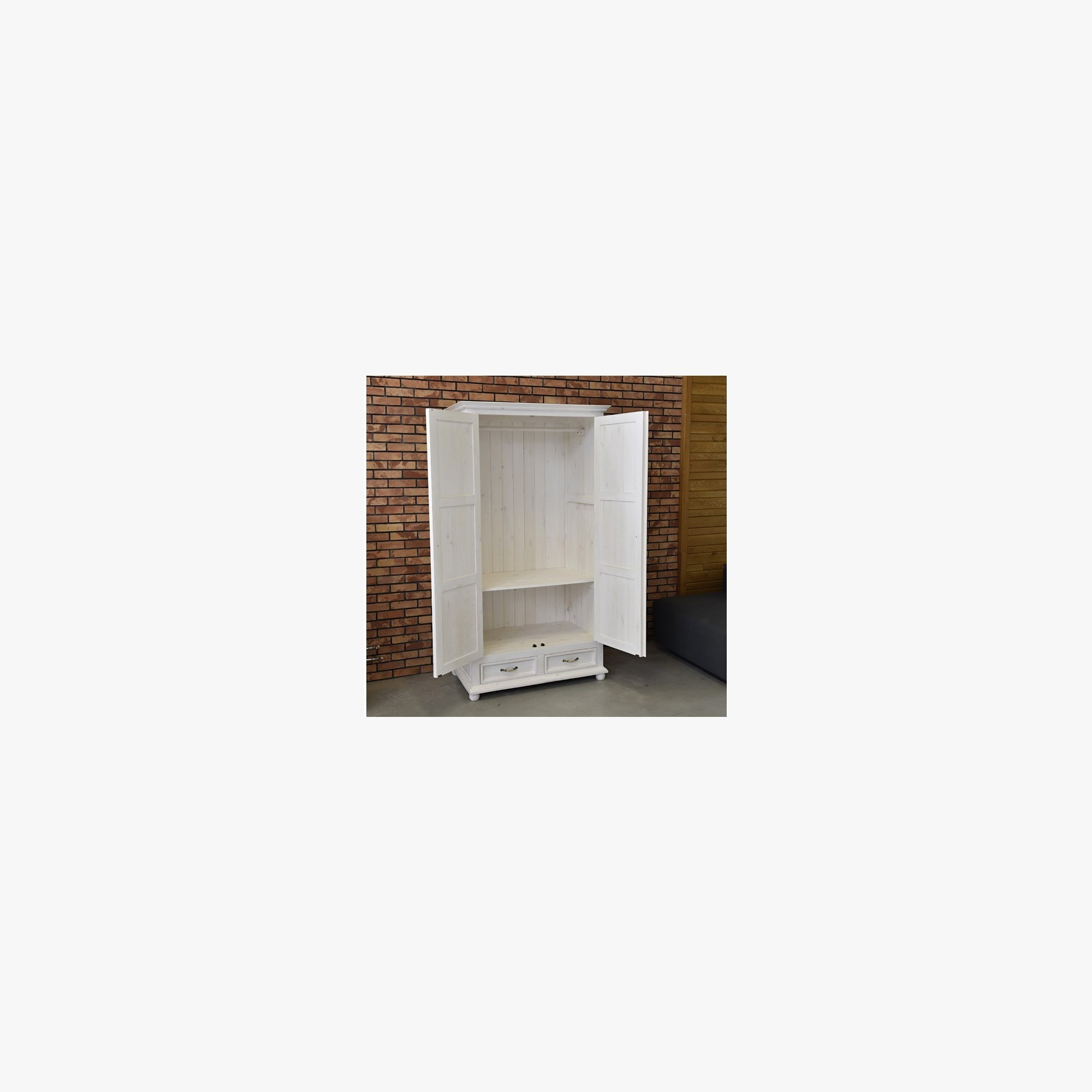 Celá šatníková skriňa je vyrobená z borovicového masívu. Dvierka i čelá zásuviek sú pekne prerobené a celkový dizajn dopĺňajú štýlové úchytky. Borovicové drevo je pružné a veľmi obľúbené pre svoju špecifickú textúru. Robustná konštrukcia skrini dodáva dokonalú pevnosť a stabilitu. Špičkové spracovanie, kvalitný materiál a precízna remeselná práca posúvajú tento kúsok medzi luxusný nábytok, ktorý bude váš interiér zdobiť dlhé roky.