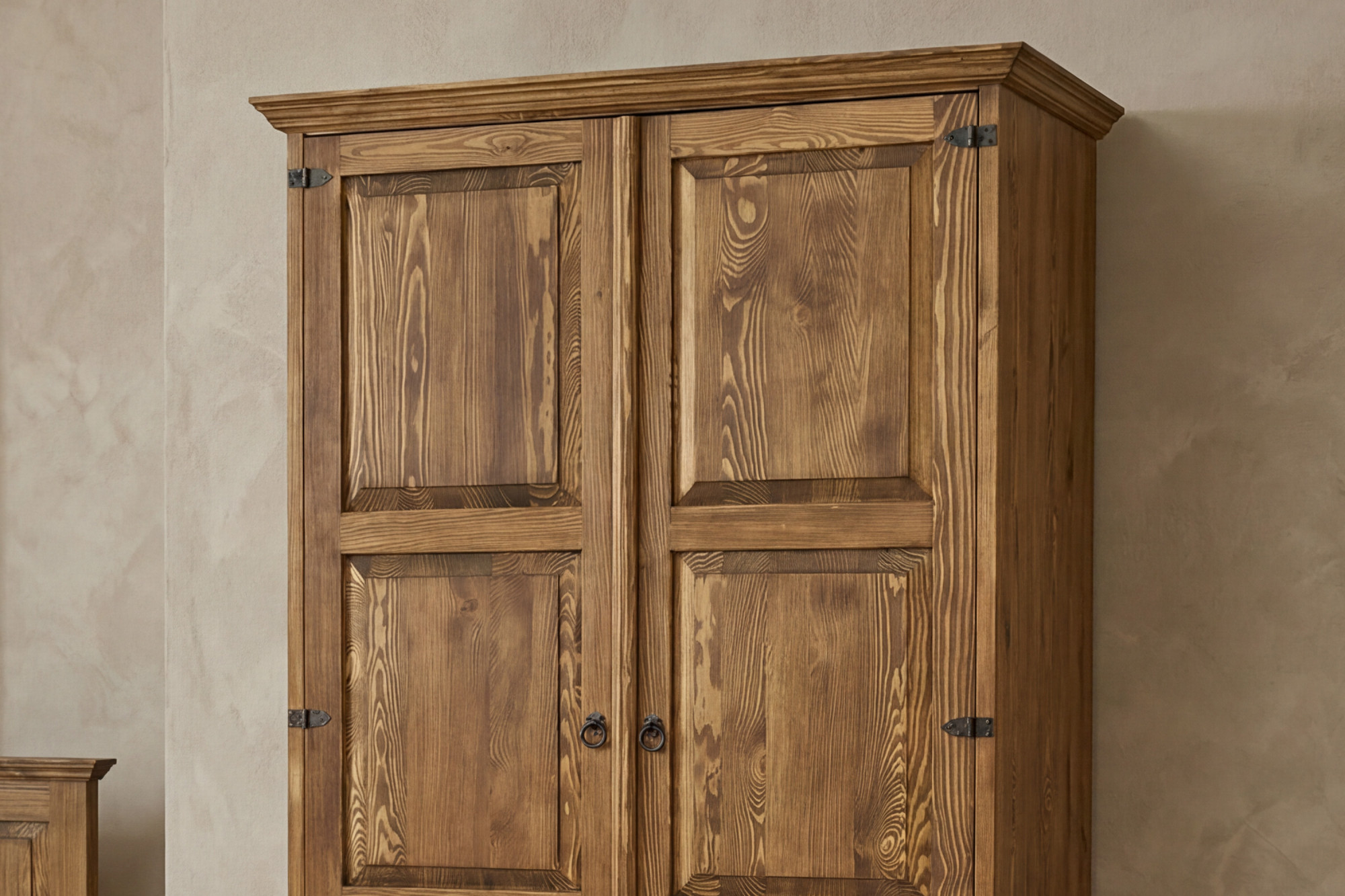 * Na obrázku rustikálna šatníková skriňa z masívneho borovicového dreva vo francúzskom štýle