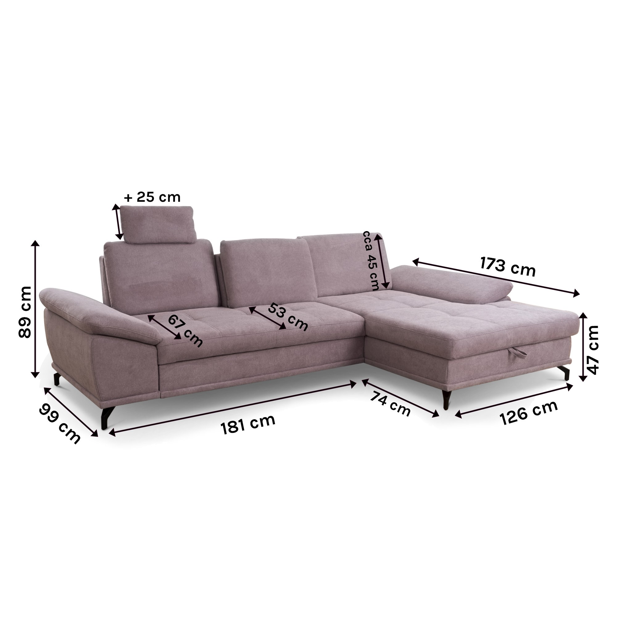 disponuje za príplatok funkciou spania a odkladacím priestorom v rohu sedačky. Veľkou výhodou je už v základnej cene